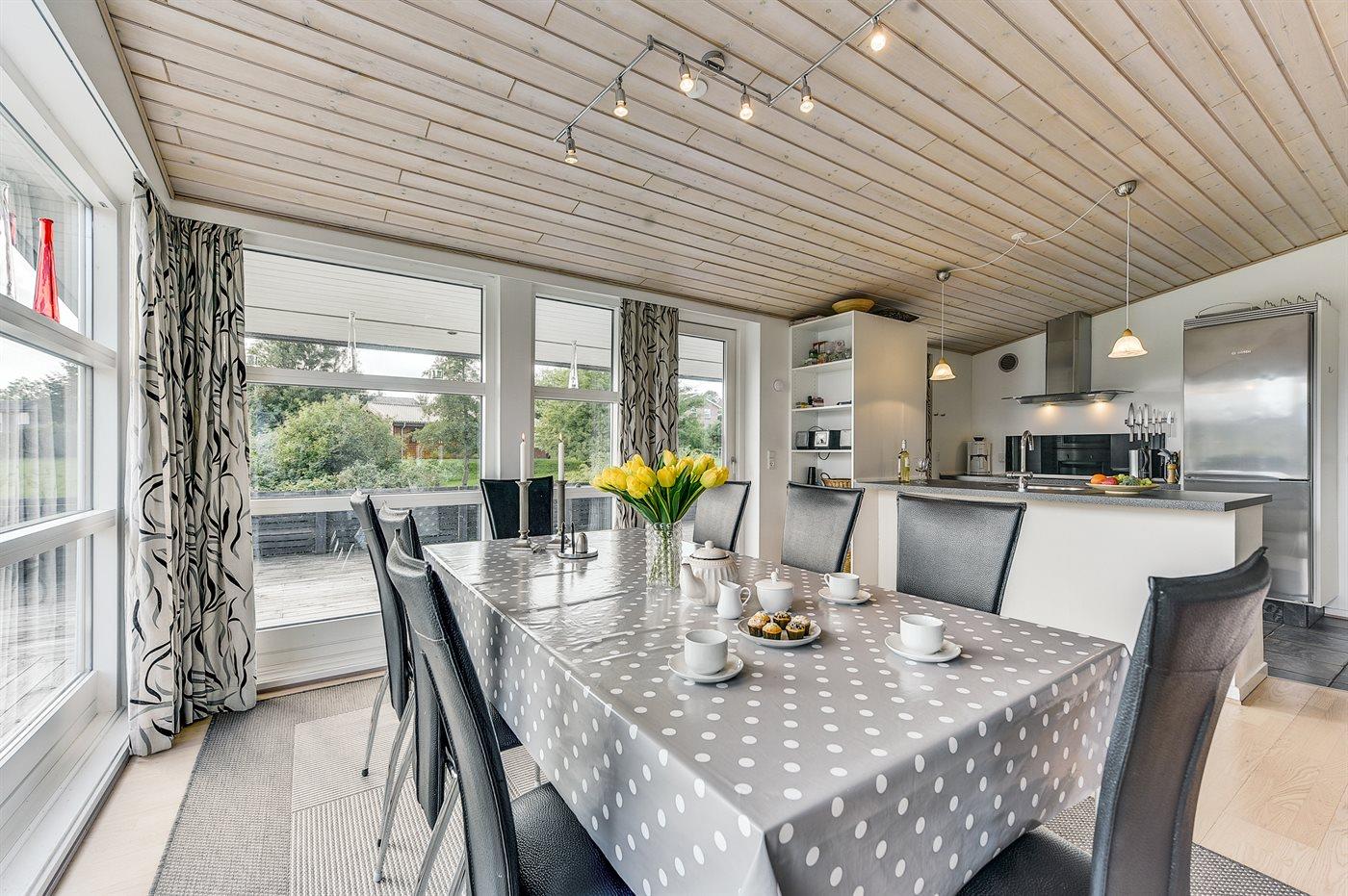 Die Ferienunterkunft liegt auf einem 1348 m² großen Gartengrundstück. Die Entfernung zum Fjord beträgt 400 m. Die nächste Einkaufsmöglichkeit liegt 3000 m entfernt. In einem Abstand von 20000 m gibt es einen Golfplatz. Es steht ein 86 m² Terrassenareal zur Verfügung. Außerdem gibt es 24 m² überdachte Terrasse. Geräteraum. Schaukel. Sandkasten. Parkplatz auf dem Grundstück.