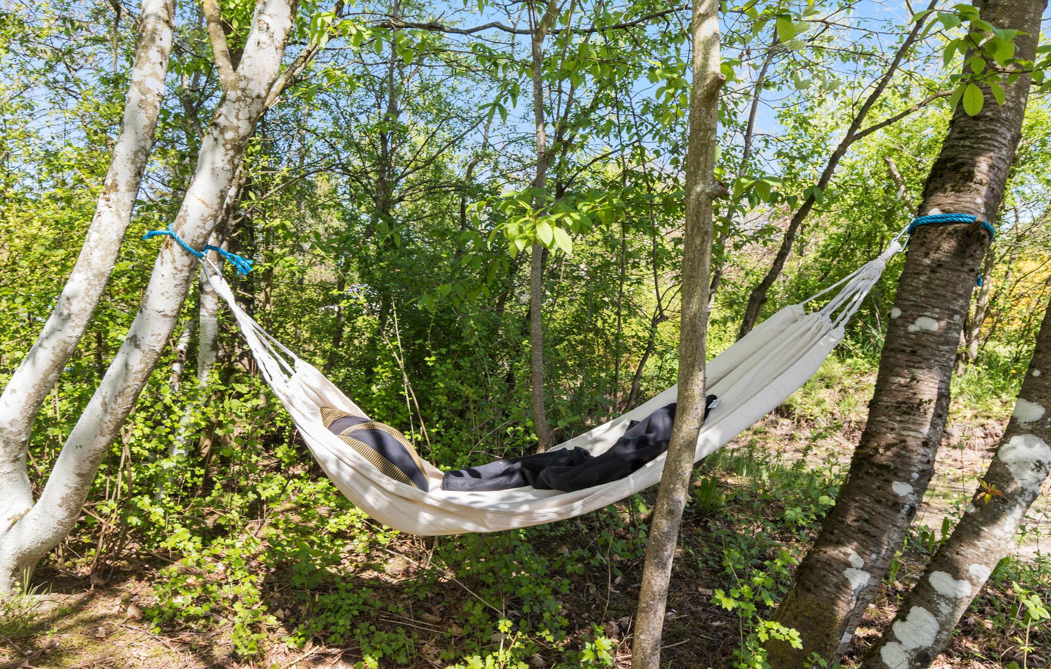 Genießen Sie erholsame Stunden im Whirlpool im Freien. Die große Terrasse bietet ausreichend Platz für gemeinsame Mahlzeiten, während der Grillbereich zu geselligen Abenden einlädt. Unter dem überdachten Bereich können Sie auch bei wechselhaftem Wetter draußen sitzen. Zwischen den Bäumen lädt eine Hängematte zum Abschalten ein, während die naturnahe Umgebung für Ruhe und Privatsphäre sorgt.