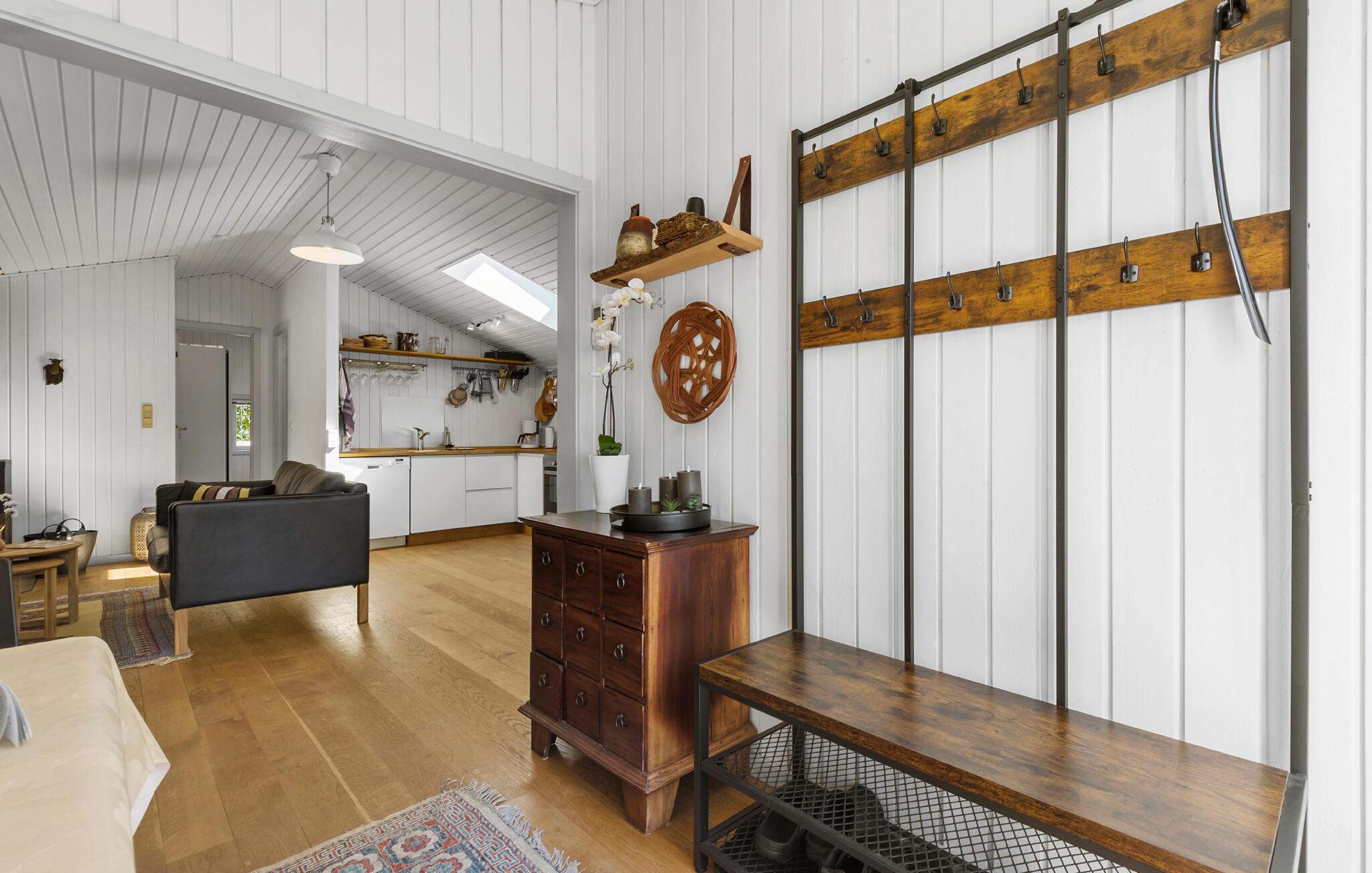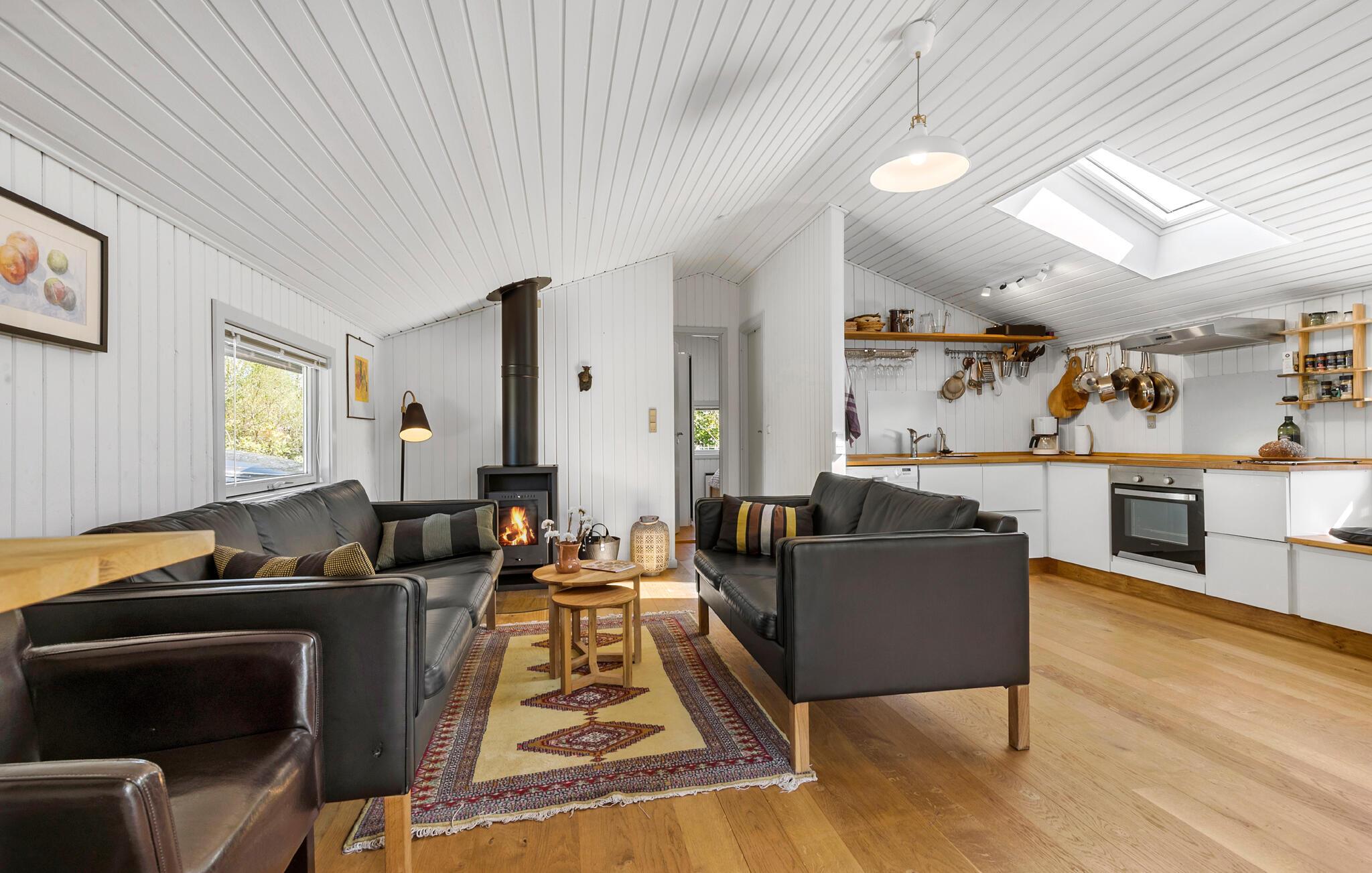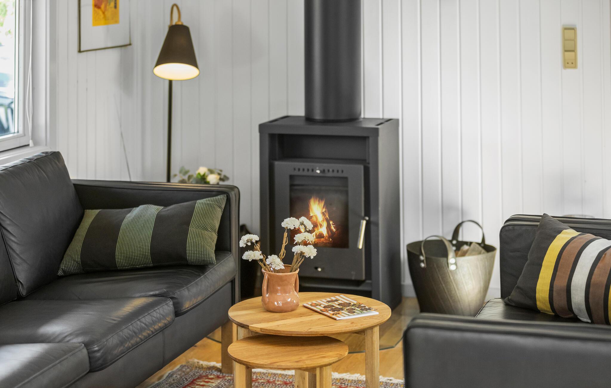 Dieses angenehme Ferienhaus empfängt Sie mit einer hellen und liebevoll gestalteten Einrichtung, die sofort ein Wohlfühlklima schafft. Der Wohnbereich bietet Ihnen genügend Platz für entspannte Stunden vor dem Kaminofen, während die gut ausgestattete Küche zu gemeinsamen Kochabenden einlädt. Verbringen Sie Ihre Abende auf den komfortablen Sofas bei einem guten Film oder mit lustigen Gesellschaftsspielen.