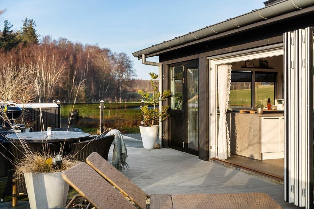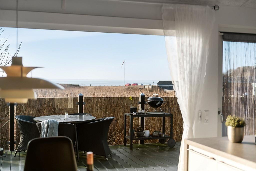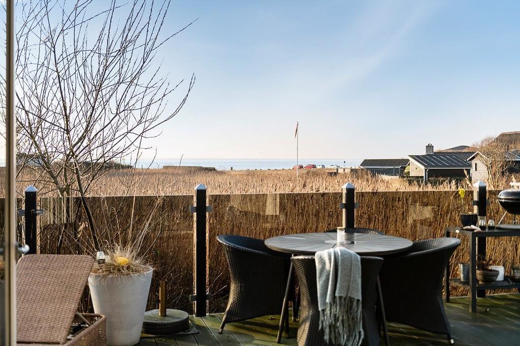 Der Blick auf sowohl Wasser als auch See vermittelt eine besondere Ruhe, die es leicht macht, im Moment anzukommen. Du kannst lange sitzen, den Geräuschen der Natur lauschen und die salzige Luft auf der Haut spüren. An warmen Sommertagen kann die Terrasse zum natürlichen Treffpunkt der Familie werden – ein Ort für Lachen, Gespräche und stille Momente in der Sonne. Wenn der Wind auffrischt, ist es herrlich, etwas geschützter zu sitzen und dennoch das Gefühl der offenen Landschaft um dich herum zu bewahren.
