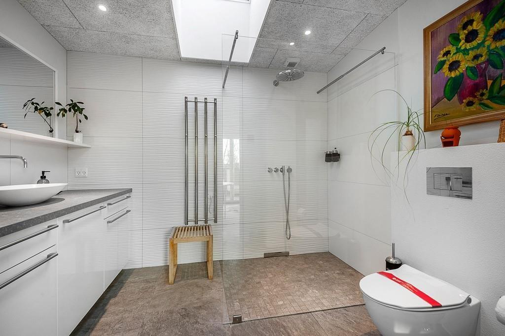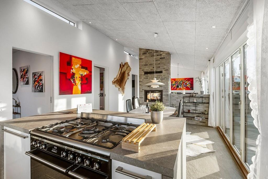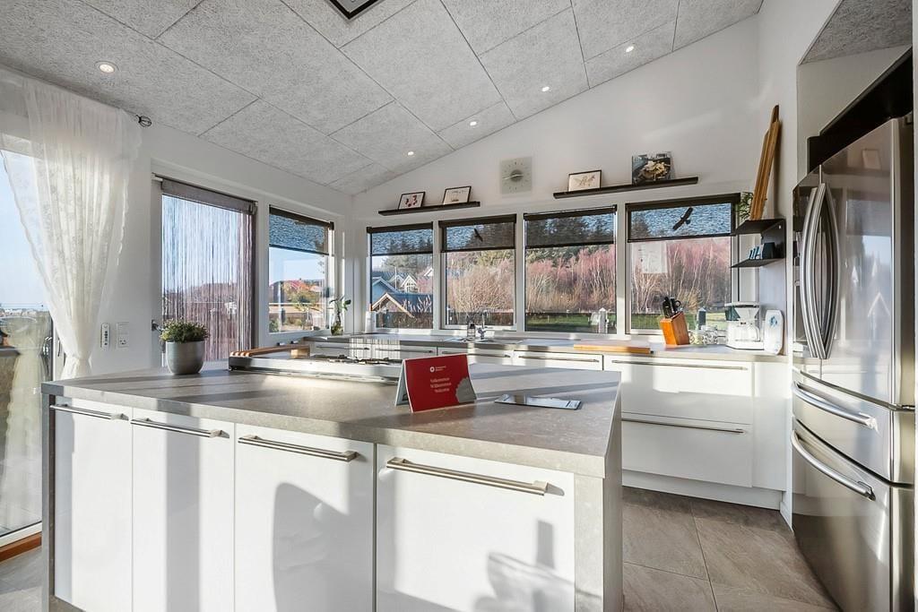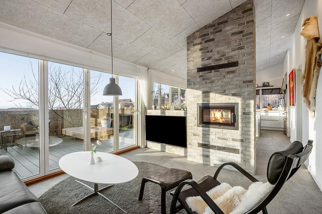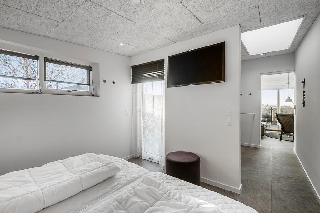 Schon beim Betreten des Ferienhauses spürst du die warme und einladende Atmosphäre, die es leicht macht, sich vom ersten Moment an wie zu Hause zu fühlen. Die hellen Oberflächen und das durchströmende Tageslicht, das durch die großen Fensterfronten einfällt, schaffen eine angenehme und luftige Stimmung, die sowohl zu Nähe als auch zur Entspannung einlädt. Der Wohnbereich strahlt Gemütlichkeit aus, und hier lässt sich leicht vorstellen, wie ruhige Morgen mit einer Tasse Kaffee in der Hand beginnen, während der Blick über das Wasser und den See am Horizont schweift. Wenn der Abend hereinbricht, kannst du dich mit einer Decke über den Schultern aufs Sofa sinken lassen und die Stille und die Aussicht beruhigend auf dich wirken lassen.