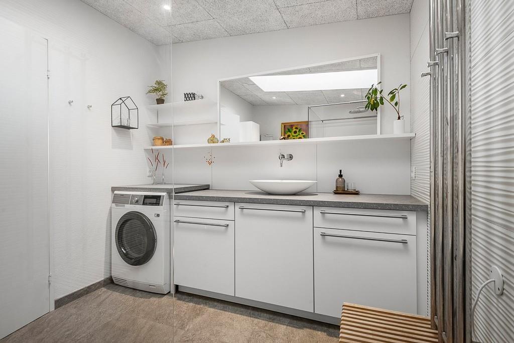 Die Küche ist gut ausgestattet und einladend mit einem amerikanischen Kühlschrank und einem Gasherd, die das Kochen zu einem Vergnügen statt zu einer Pflicht machen. Hier kannst du dich ganz dem Zubereiten von Urlaubsmahlzeiten widmen und bist dennoch Teil der Gemeinschaft im offenen Raum. Das Badezimmer erscheint hell und praktisch eingerichtet, und die Ergänzung durch eine Waschmaschine sorgt für zusätzlichen Komfort, wenn du einen längeren oder aktiveren Urlaub an der Küste planst.