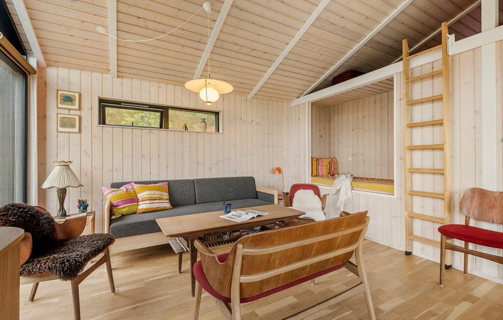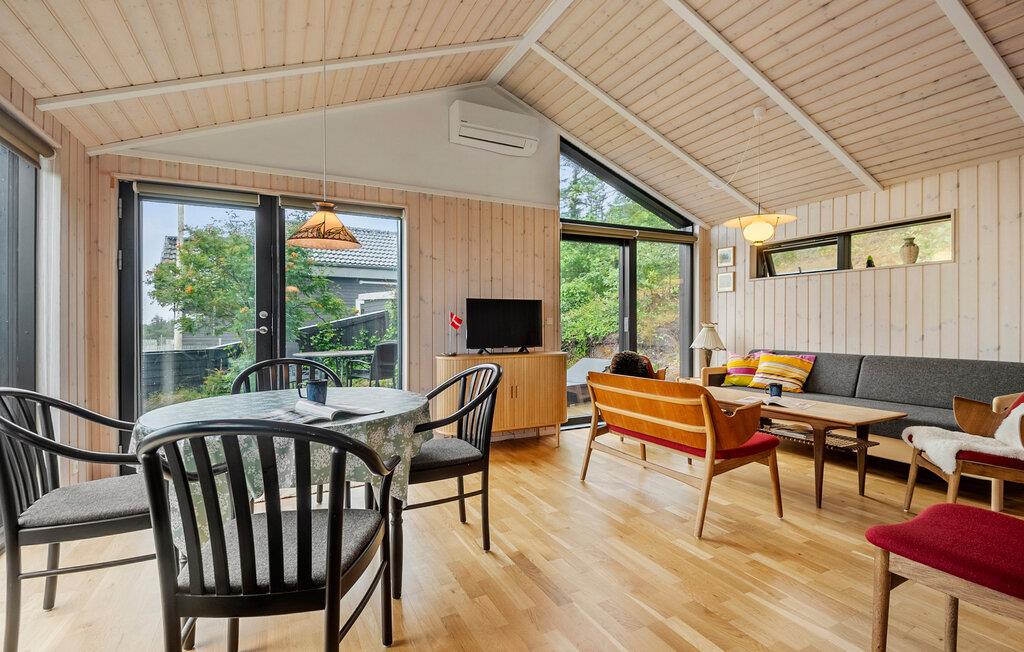Das Innere dieses einladenden Hauses zeichnet sich durch Rustikalität und Wärme aus. Eine naturfarbene Holzvertäfelung, gemütliche Sofas und große Fenster sorgen für eine Atmosphäre, in der Sie sich wohlfühlen und schnell entspannen können. Hören Sie Ihre Lieblingsmusik, einen interessanten Podcast oder genießen Sie einfach nur das Nichtstun. Die moderne Küche lädt dazu ein, gemeinsam zu kochen und ausgiebig bei einem Glas Wein zu tafeln.