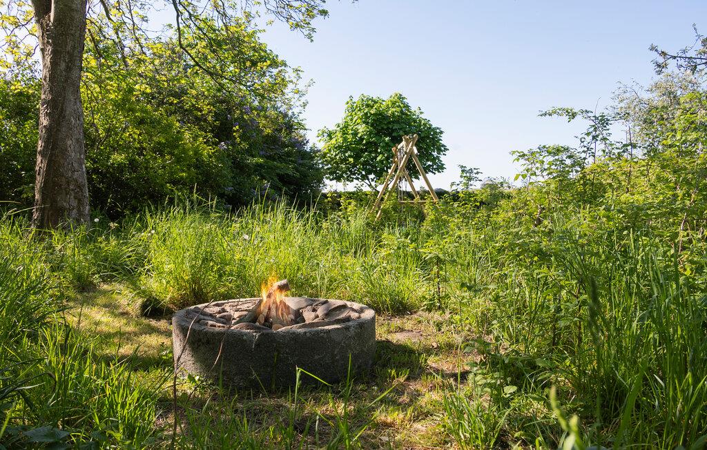 Nutzen Sie den weitläufigen Außenbereich für entspannte Tage im Grünen. Essen Sie gemeinsam auf der gepflasterten Terrasse, während Kinder auf dem Rasen spielen oder die Schaukel und den Sandkasten entdecken. Entzünden Sie am Abend ein Lagerfeuer in der Feuerstelle oder ziehen Sie sich in den charmanten überdachten Holzunterstand zurück. Umgeben von alten Bäumen und Wildwiese finden Sie hier Erholung pur.