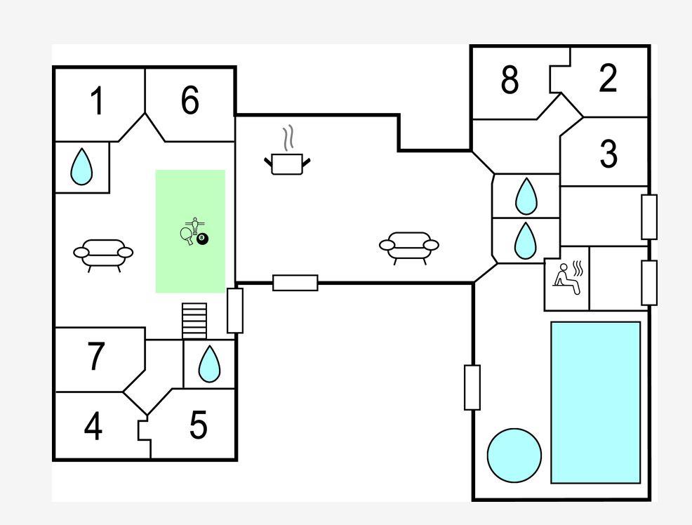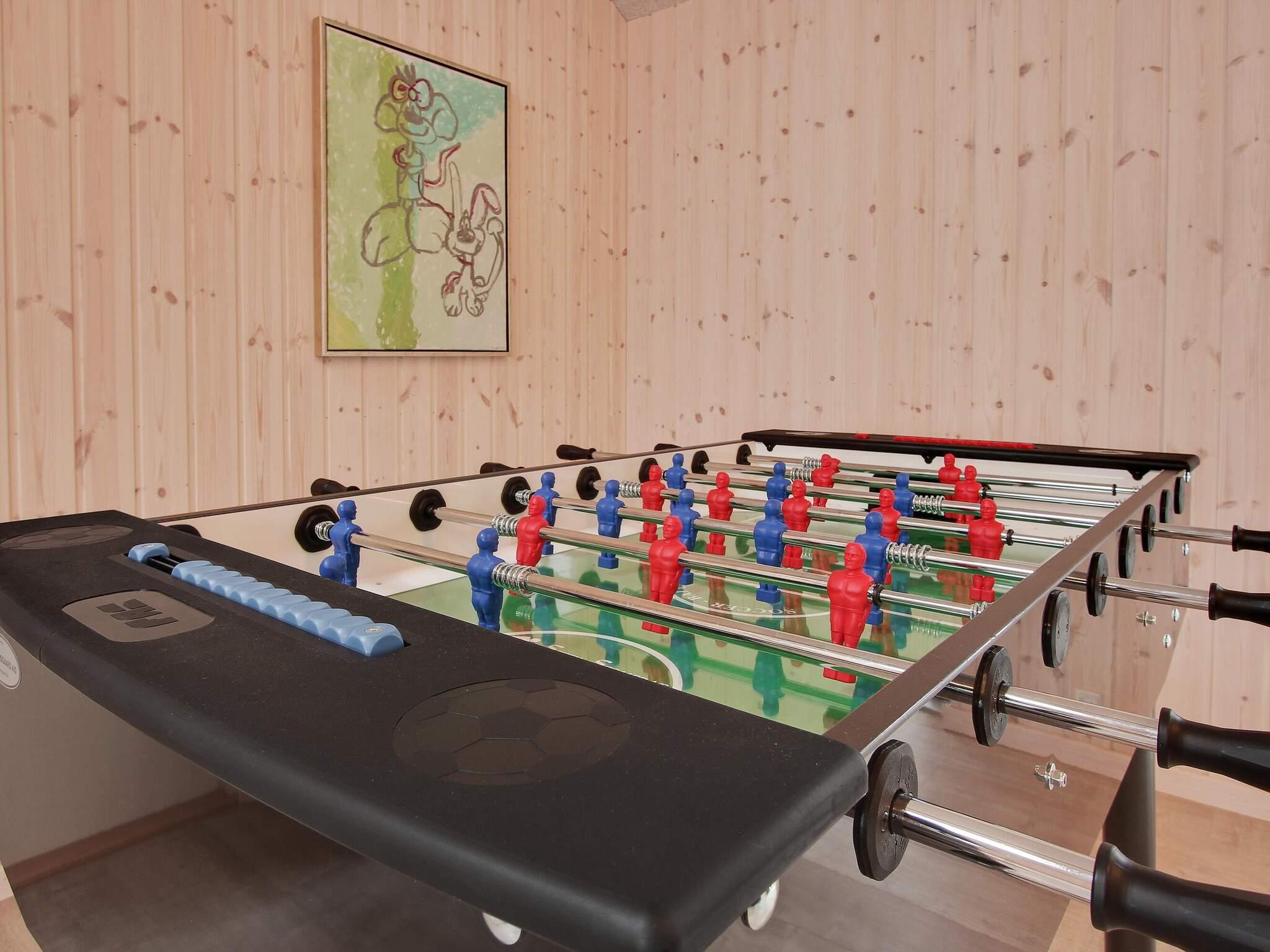 Ein wirklich schönes Ferienhaus mit attraktiver Lage in der Nähe eines herrlichen Badestrandes auf Nordfyn. Das Haus bietet insgesamt acht gute Schlafzimmer sowie zwei Dachböden, die zusätzlichen Platz zum Übernachten bieten. Darüber hinaus gibt es einen Aktivitätsraum, der mit Unterhaltungsmöglichkeiten wie Tischfußball, Billard, Tischtennis und Dart ausgestattet ist – perfekt für gemütliche Stunden gemeinsam.