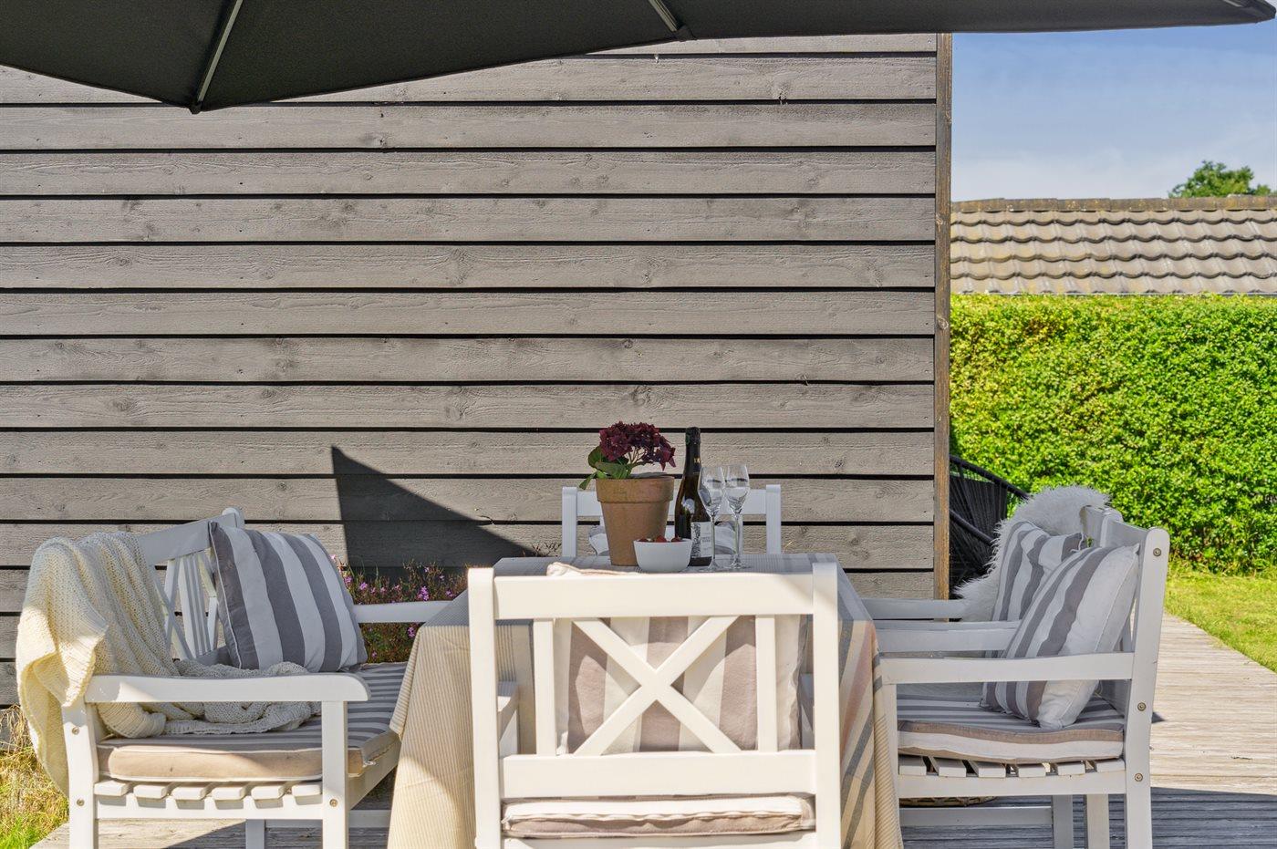 Schönes Sommerhaus mit einer herrlich großen Terrasse rund um das ganze Haus. Im Jahr 2022 wurde ein neues Nebengebäude zugefügt, in dem sich einen separaten Hobbyraum und ein Zimmer mit eigenem Eingang befinden. Darüber hinaus wurde das Haus im Jahr 2024 modernisiert, u.a. mit mehreren neuen Möbeln und gestrichen, sodass es innen hell und attraktiv erscheint.