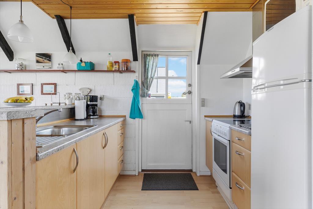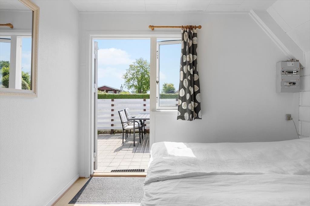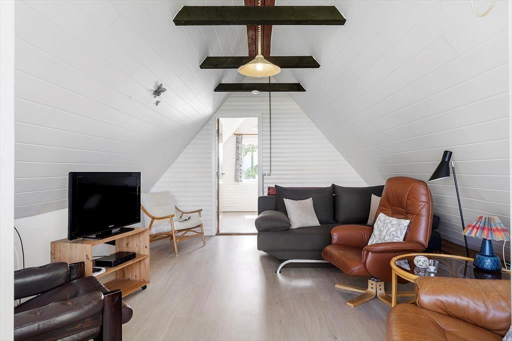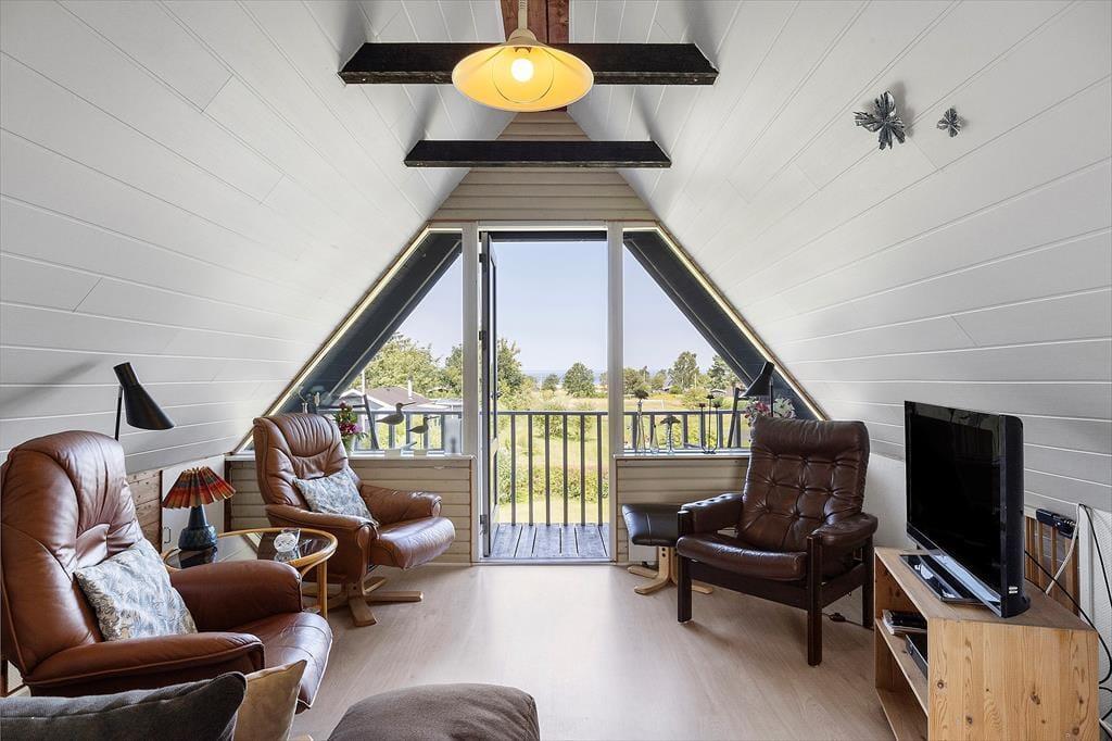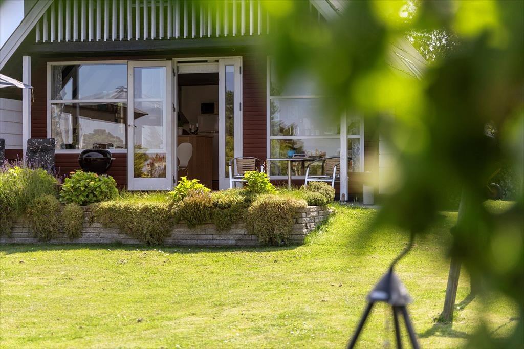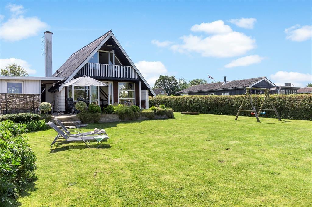 Beim Betreten des Ferienhauses werden Sie sofort von einer warmen und einladenden Atmosphäre empfangen. Das gemütliche Wohnzimmer und die offene Küche/Essbereich sind so gestaltet, dass sie die Familie zusammenbringen. Hier können Sie leckere Mahlzeiten zubereiten und die gemeinsame Zeit am Esstisch genießen, während der Kaminofen an kühleren Abenden für eine gemütliche Stimmung sorgt. Vom Wohnzimmer aus haben Sie direkten Zugang zur schönen Terrasse, wo Sie den Morgenkaffee in den Sonnenstrahlen genießen oder die Familie zum Grillen am Abend einladen können. Das Ferienhaus verfügt über zwei schöne Schlafzimmer, die Platz für eine erholsame Nachtruhe bieten, sowie ein Schlafsofa im Wohnzimmer für zusätzliche Gäste. Im Obergeschoss finden Sie ein weiteres Wohnzimmer mit Zugang zum Balkon, der einen fantastischen Blick auf das Wasser bietet – der perfekte Ort zum Entspannen und für schöne Momente.