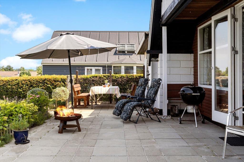Draußen erwartet Sie ein schöner Garten, der zum Spielen und Entspannen einlädt. Hier können die Kinder frei spielen, während die Erwachsenen sich mit einem guten Buch entspannen oder einen erfrischenden Drink auf der Terrasse genießen. Die teilweise überdachte Terrasse ermöglicht es, das Leben im Freien bei jedem Wetter zu genießen, und es gibt genug Platz für Grill und Gartenmöbel. Nur einen kurzen Spaziergang vom Ferienhaus entfernt liegt der sanfte Badestrand, an dem Sie schwimmen, sich sonnen oder Sandburgen bauen können. Der nahegelegene Strand ist kinderfreundlich mit flachem Wasser, was ihn zu einem idealen Ort für Familien macht. Egal, ob Sie einen aktiven Tag am Strand verbringen oder einfach die frische Meeresluft genießen möchten, dieses Ferienhaus bietet die perfekten Voraussetzungen für einen entspannten Urlaub.