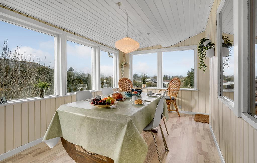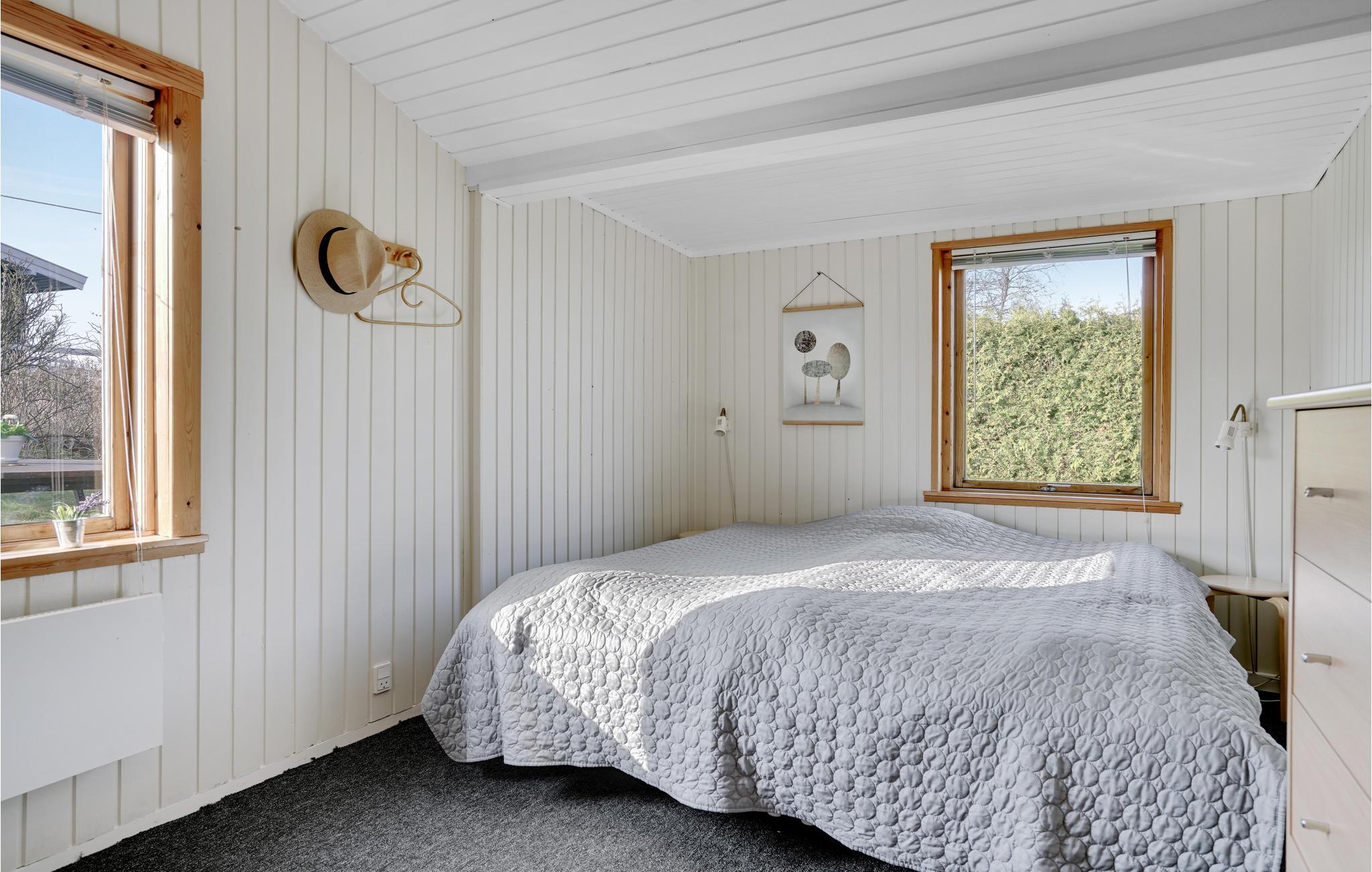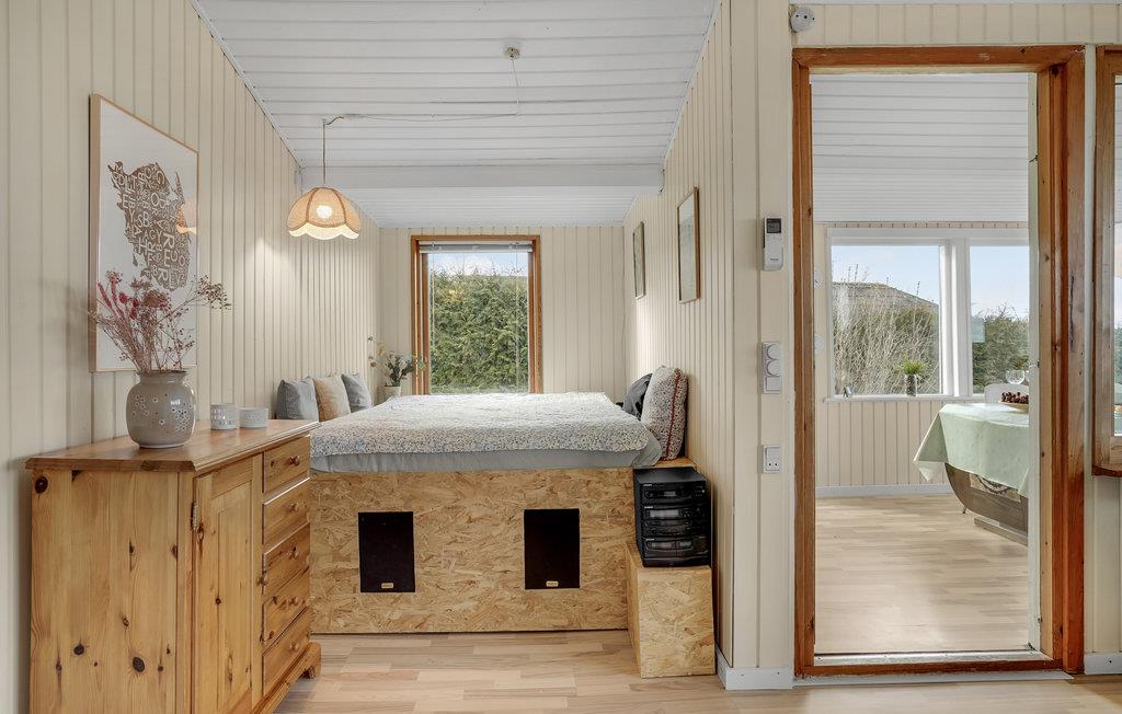 Dieses hochgelegene Ferienhaus mit schöner Aussicht erwartet seine Gäste in Bogense. Die 3 Schlafzimmer, 2 mit bequemen Doppelbetten und eines mit Etagenbett, sind nebeneinander angeordnet. Die Einrichtung ist hell und freundlich, große Fenster lassen viel Licht in das Innere des Hauses und ermöglichen einen schönen Blick ins Freie.