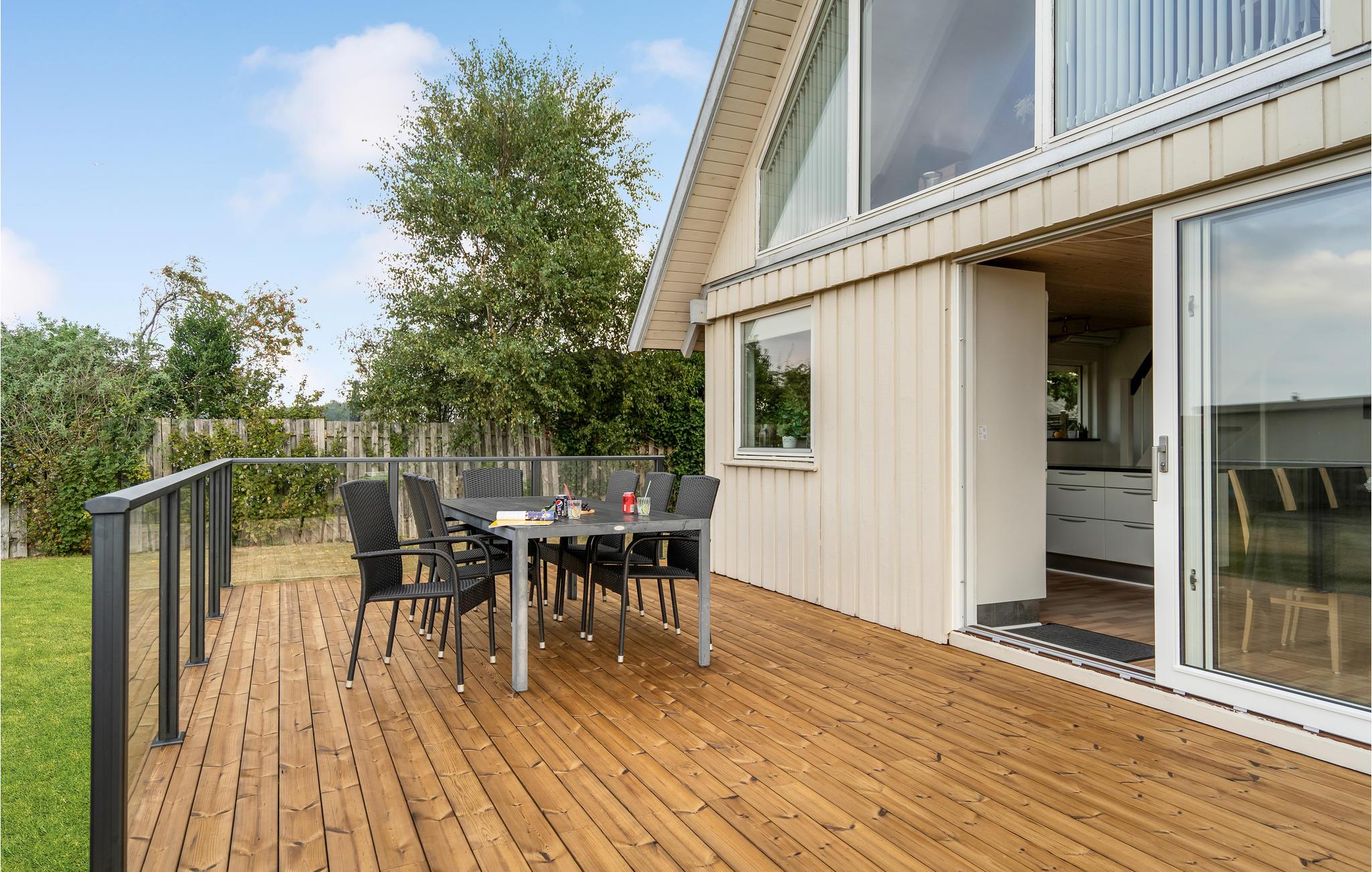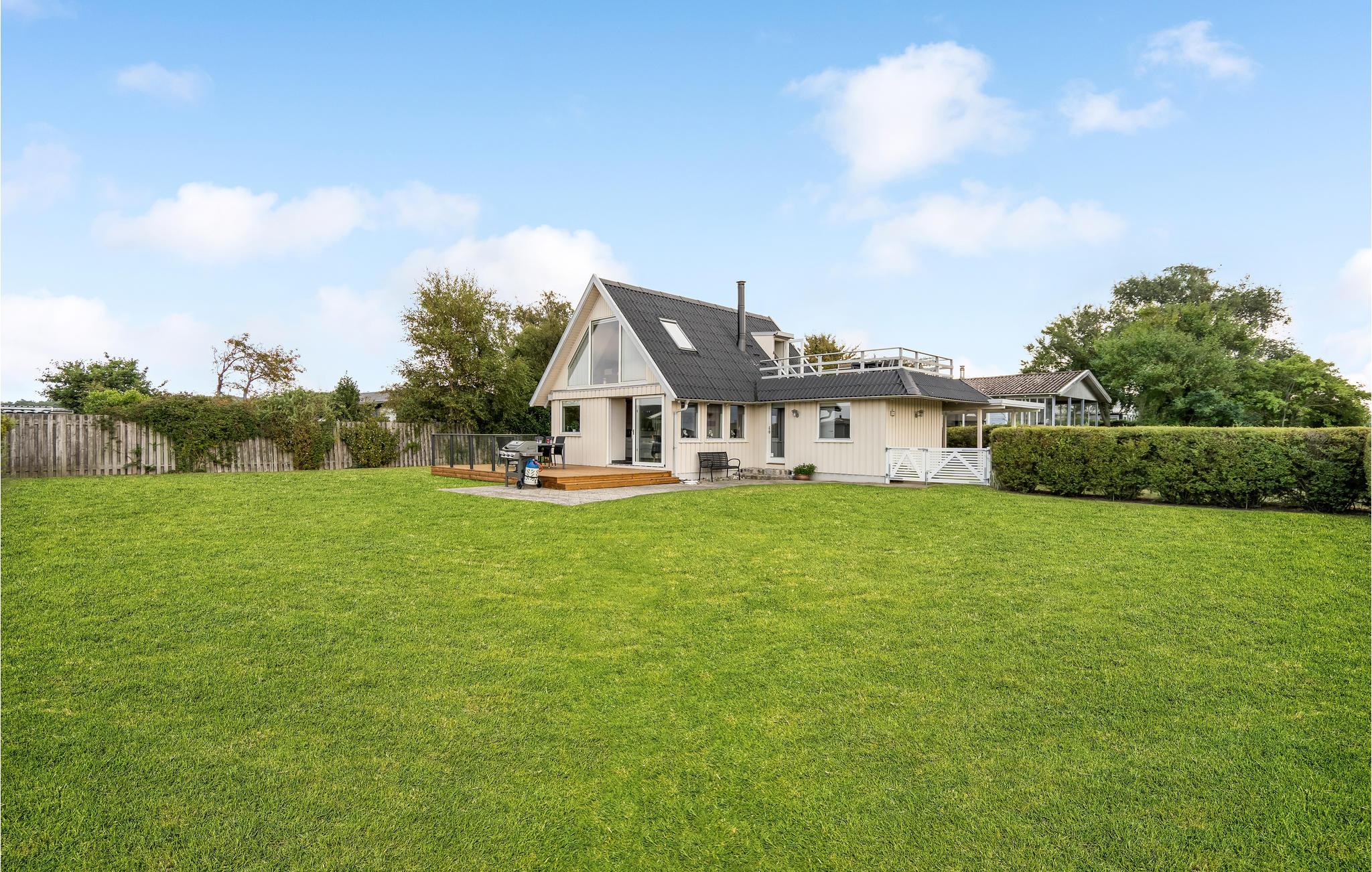 An der Nordküste Fünens empfängt Sie dieses schöne Ferienhaus, das Ihre Familie, Ihren Hund und Sie willkommen heißt. Das lichtdurchflutete Haus bietet Ihnen einen hohen Komfort und gemütliche Räume. Für Entspannung sorgen die Sauna und ein Whirlpool, für zwei, im Badezimmer. Genießen Sie Ihre Mahlzeiten in der großen Wohnküche oder auf der geräumigen Holzterrasse von der Sie Ihre Kinder und Ihren Vierbeiner im Garten spielend beobachten können. Eine weitere Dachterrasse bietet Ihnen einen tollen Blick auf das Meer und lässt Sie bei einem guten Buch entspannen.