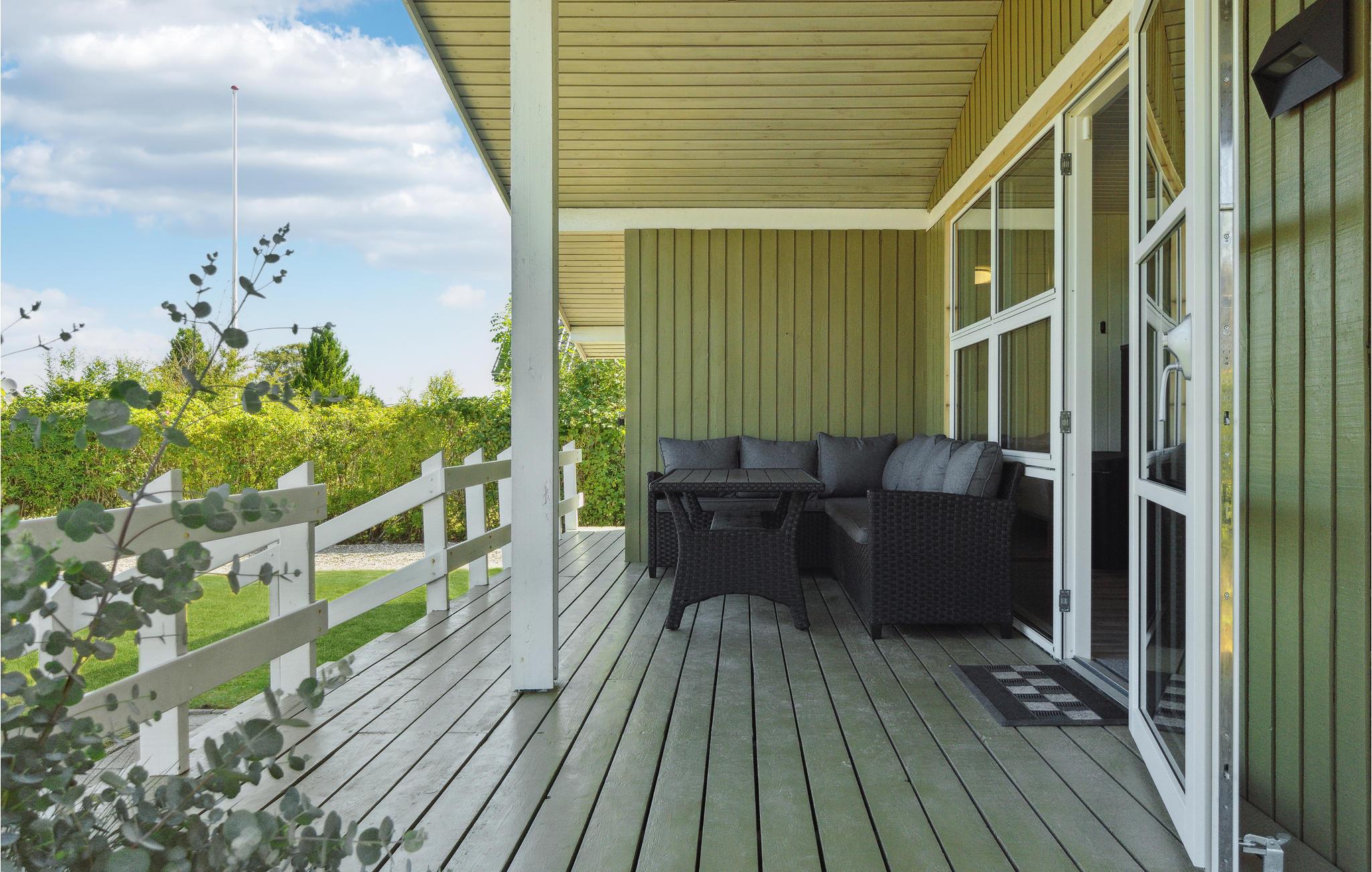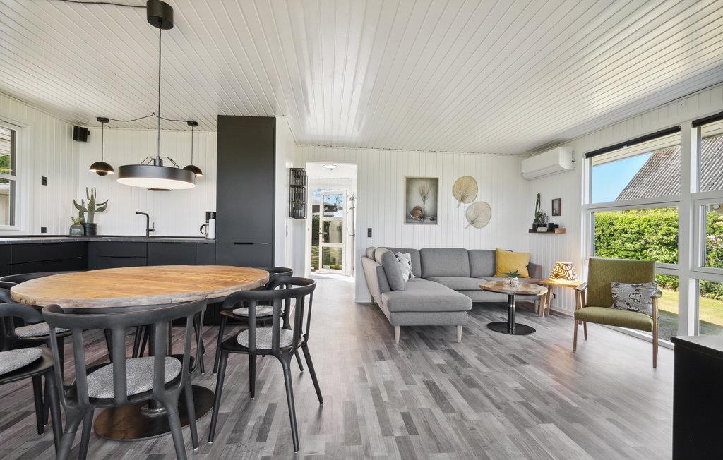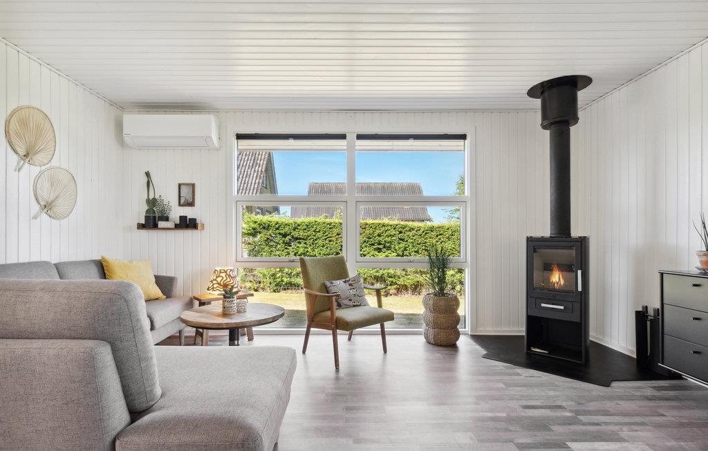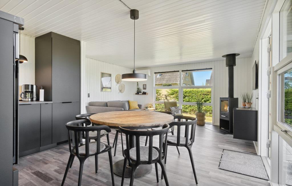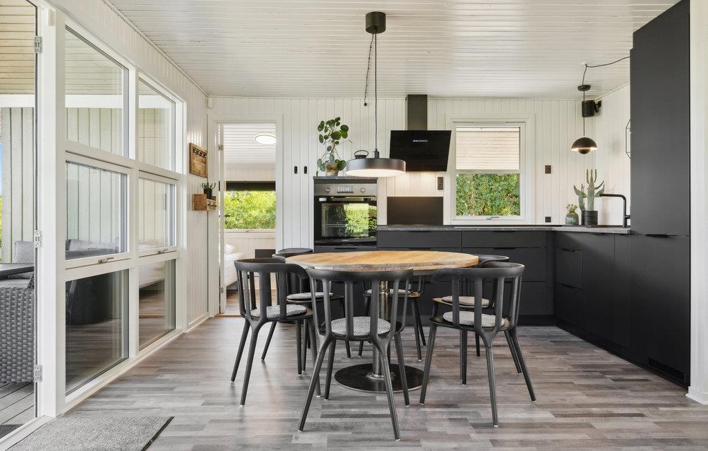 Dieses gepflegte und geschmackvoll eingerichtete Ferienhaus überzeugt im Innenbereich mit einer hellen, modernen Atmosphäre. Der offene Wohn- und Essbereich ist lichtdurchflutet und lädt mit gemütlicher Sofaecke und Kaminofen zu entspannten Stunden ein – ideal für ruhige Abende nach einem Tag am Meer. Die stilvolle, offene Küche ist harmonisch integriert und bietet Ihnen alles, was Sie für die gemeinsame Zubereitung Ihrer Mahlzeiten benötigen. Große Fensterfronten und der direkte Zugang zur Terrasse verbinden den Innenraum angenehm mit dem Außenbereich.