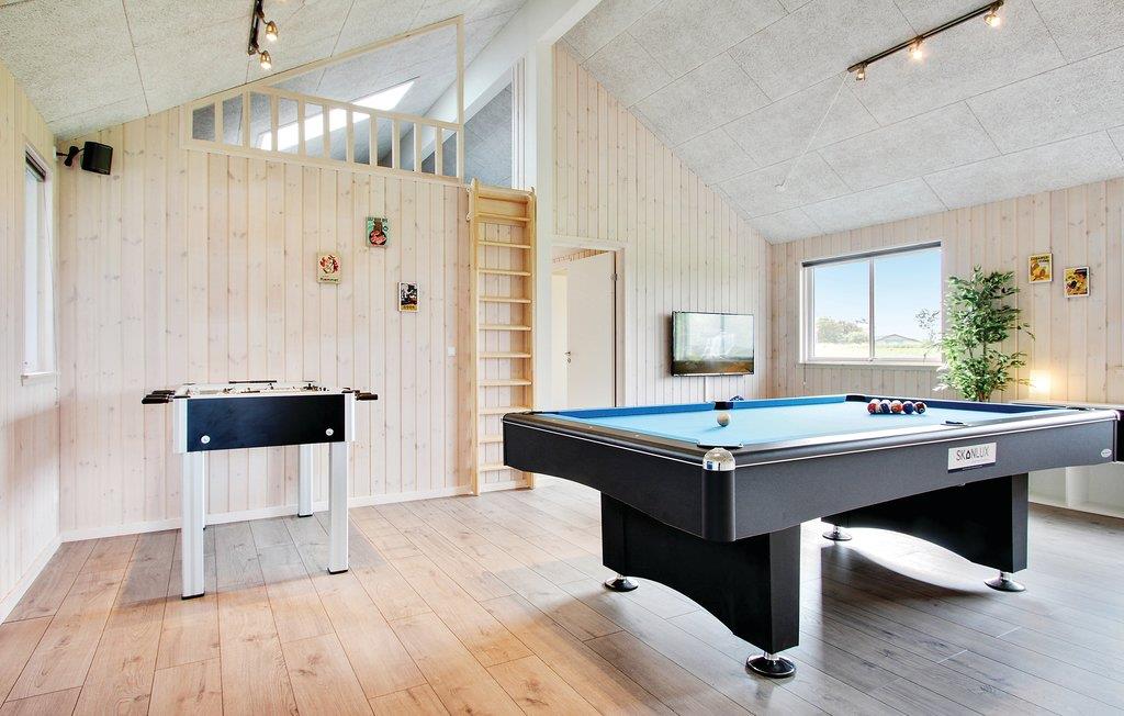 Der Aktivitätsraum des Hauses mit Billard / Tischtennis, Darts und Fußballspielen lädt zu vielen gemütlichen gemeinsamen Stunden für Groß und Klein ein. Brauchen Sie kalte Getränke und entspannendeere Aktivitäten, stehen ein Kühlschrank, TV-Ecke und Playstation4 bereit. Darüber hinaus ist das Haus mit Sonos Soundsystem ausgestattet, so dass Sie die Möglichkeit haben, nur die Musik zu spielen, die Sie mögen.
