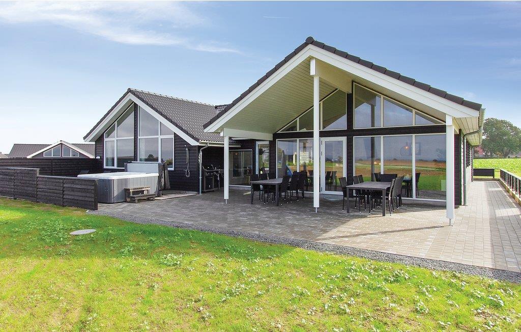 Dieses exklusive Ferienhaus in Bogense bietet Wellness, Pool und spektakuläre Aussicht am Skåstrup Strand.