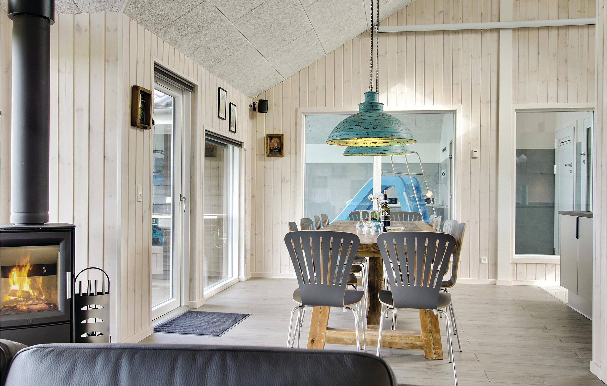 Mit Innen-Swimmingpool mit Gegenstromanlage, Wasserrutsche und Römertreppe, Sauna und Whirlpool sowie integriertem Volleyballnetz bietet das Haus zahlreiche Möglichkeiten für Badespaß und Wellness - unabhängig von Wetter und Jahreszeit. Darüber hinaus finden Sie auf der Terrasse einen 5-Personen-Außenwhirlpool mit herrlicher Aussicht - wie geschaffen für ein Glas Sekt bei Sonnenuntergang über dem Kleinen Belt. In Verbindung mit dem Außenwhirlpool gibt es eine Außendusche (saisonabhängig).