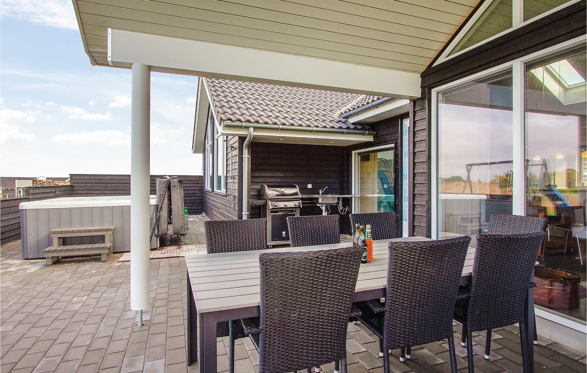 Der dänische Sommer kann auf der großen und teilweise überdachten Terrasse des Hauses mit guten Gartenmöbeln genossen werden, und mit Gasgrill und Außenküche mit Spüle / Fischreinigungsstelle kann das Urlaubsmenü auch im Freien zubereitet werden. Im Garten können Sie auf dem Trampolin springen, Fußball spielen oder sich sonnen, und für die jüngsten Gäste gibt es eine Schaukel und einen Sandkasten. Am Haus gibt es zahlreiche Parkplätze sowie einen Außenstecker zum Aufladen von Elektroautos.
