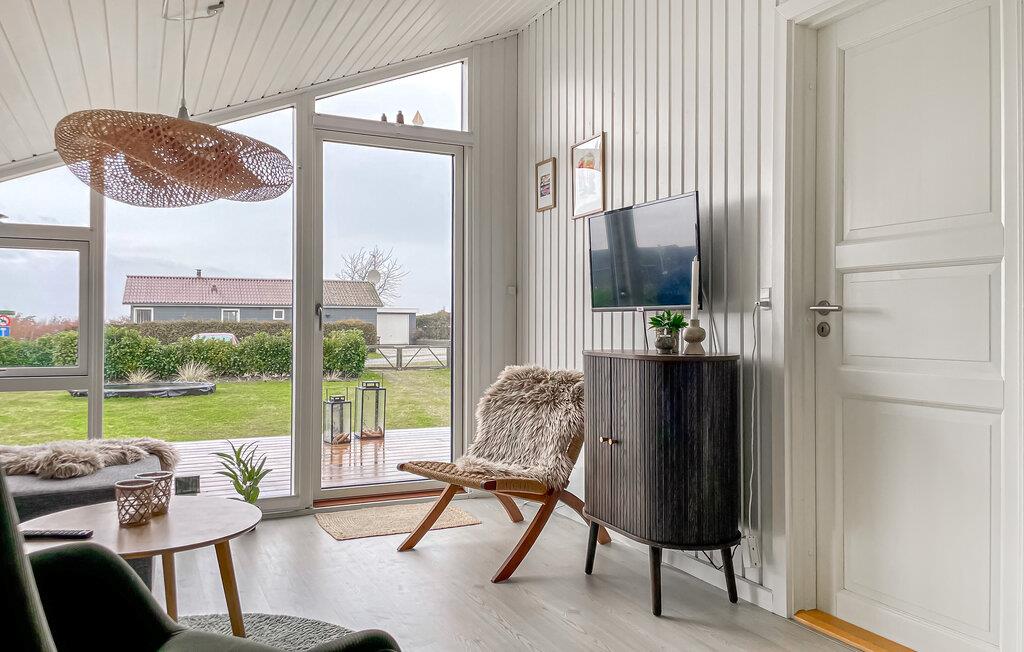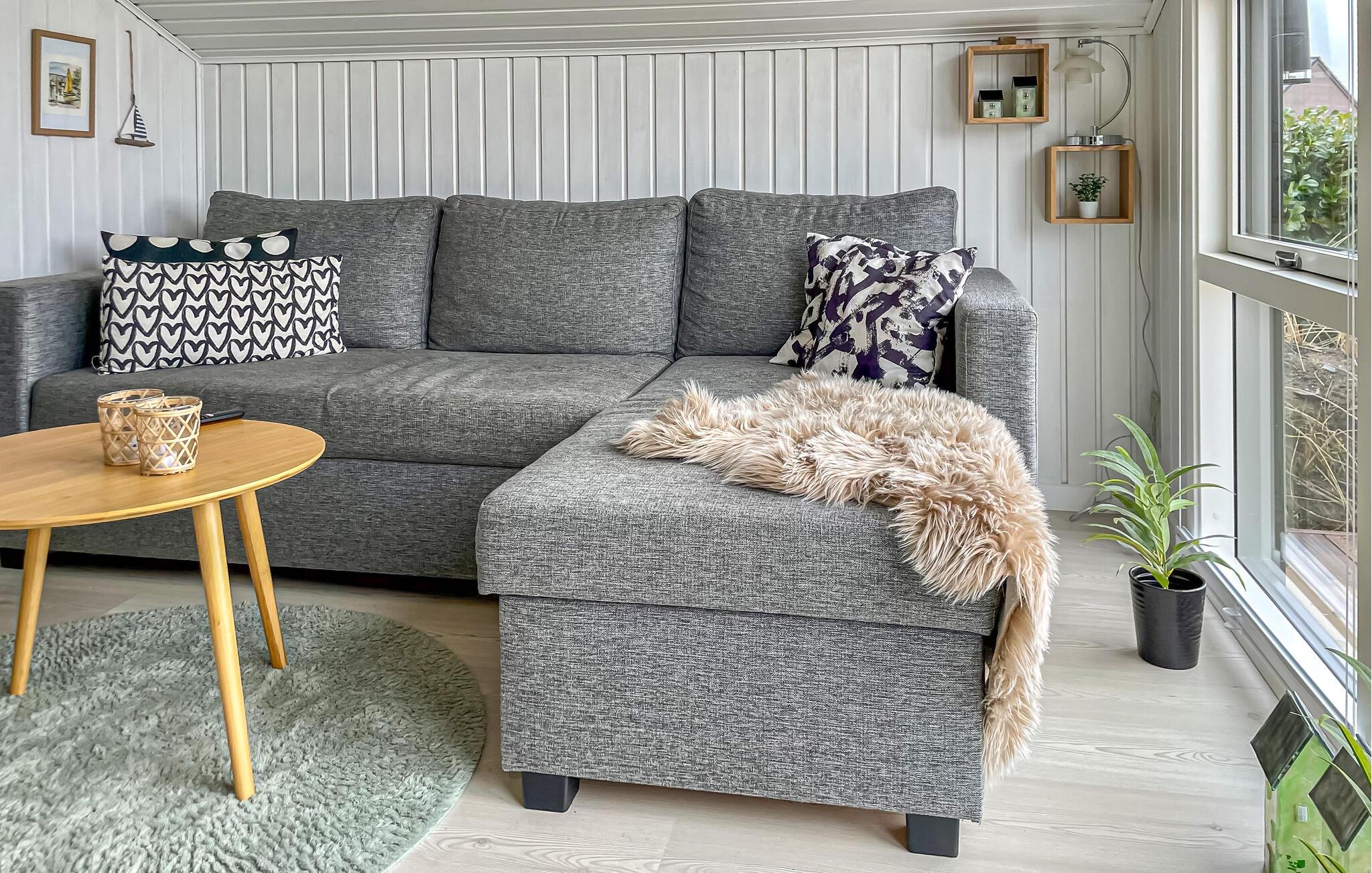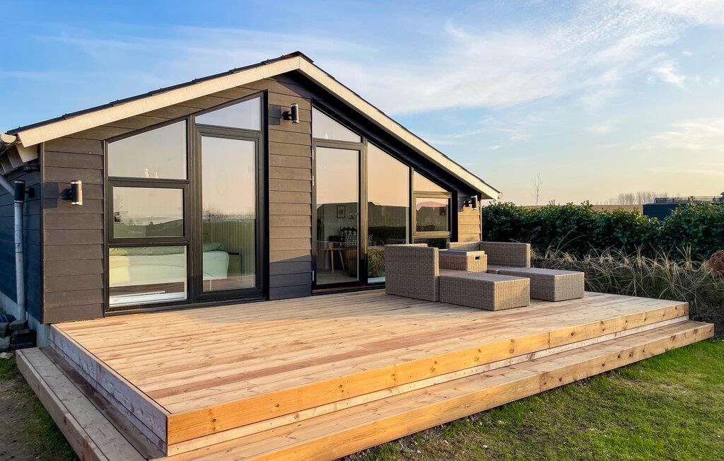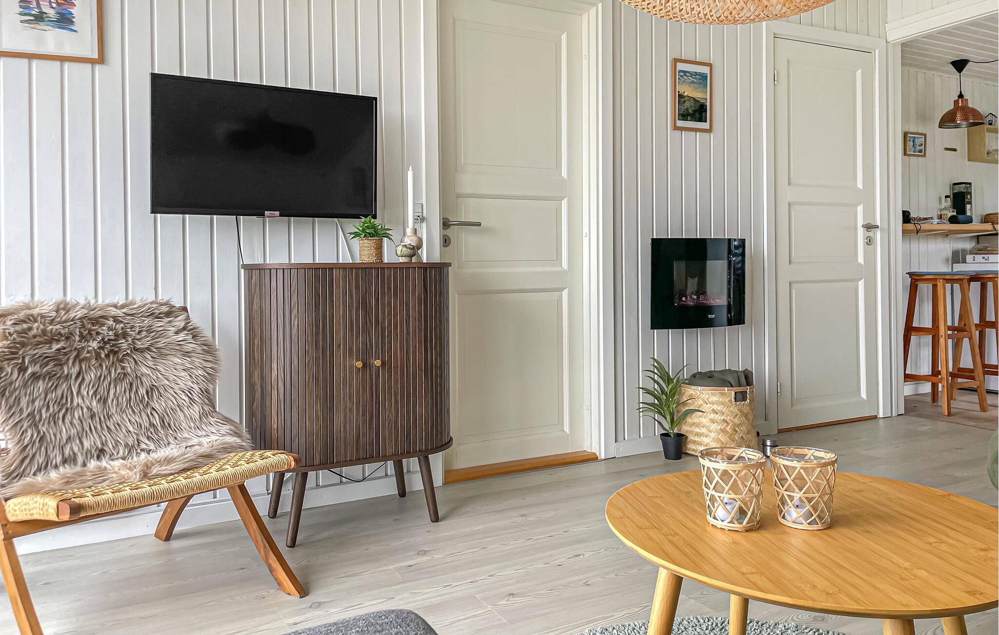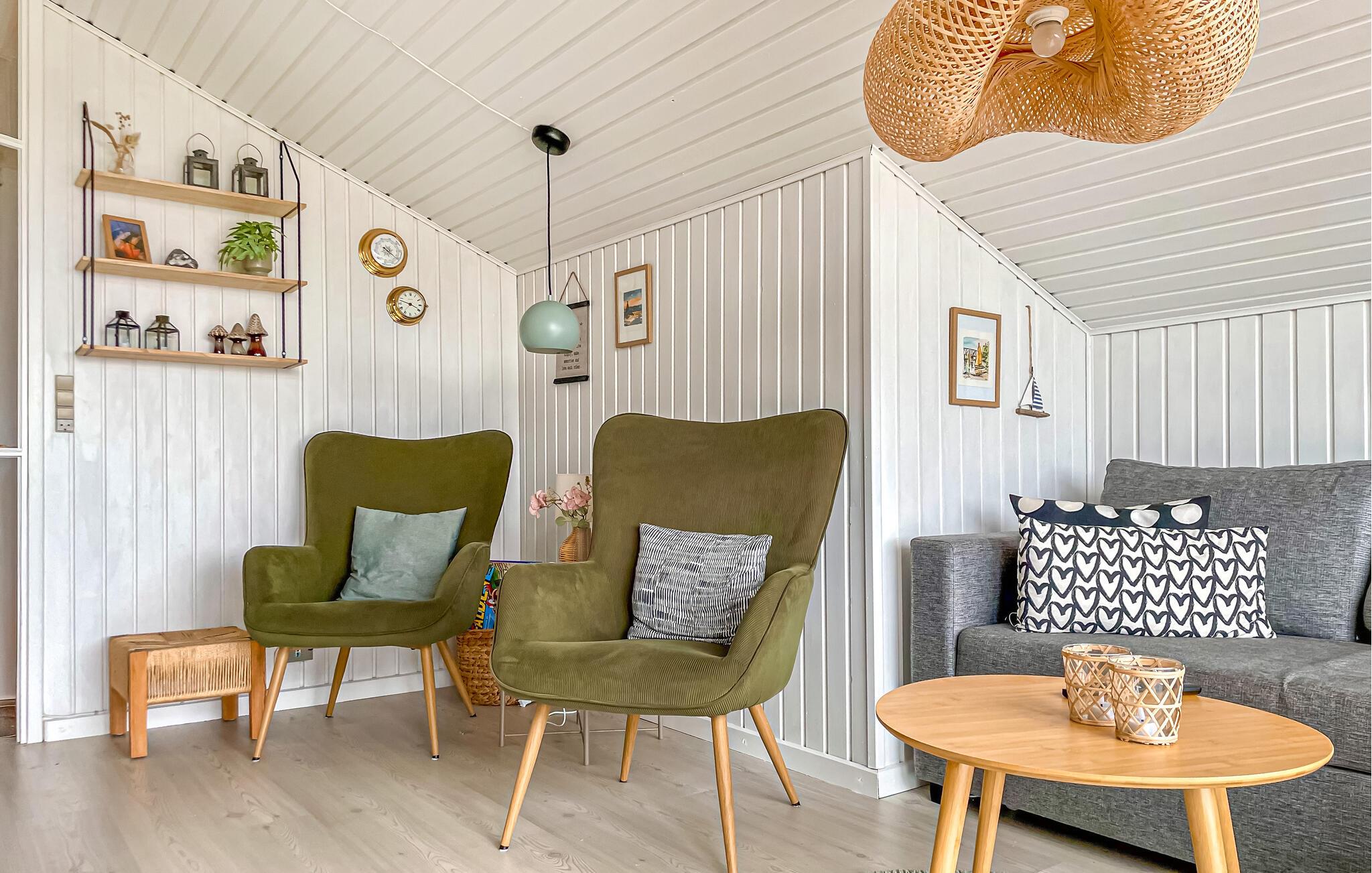 Ihr einladendes Holzhaus ist offen gestaltet, mit Holzvertäfelung und großen Fenstern, die das Tageslicht hereinlassen und eine fantastische Aussicht über die Felder und bis zum Wasser bieten. Kochen Sie in der gut ausgestatteten Küche, decken Sie den Esstisch und genießen Sie Ihre Mahlzeiten, während Sie die schöne Umgebung betrachten. Machen Sie es sich auf dem Sofa gemütlich und lassen Sie den Abend mit einem guten Film ausklingen: