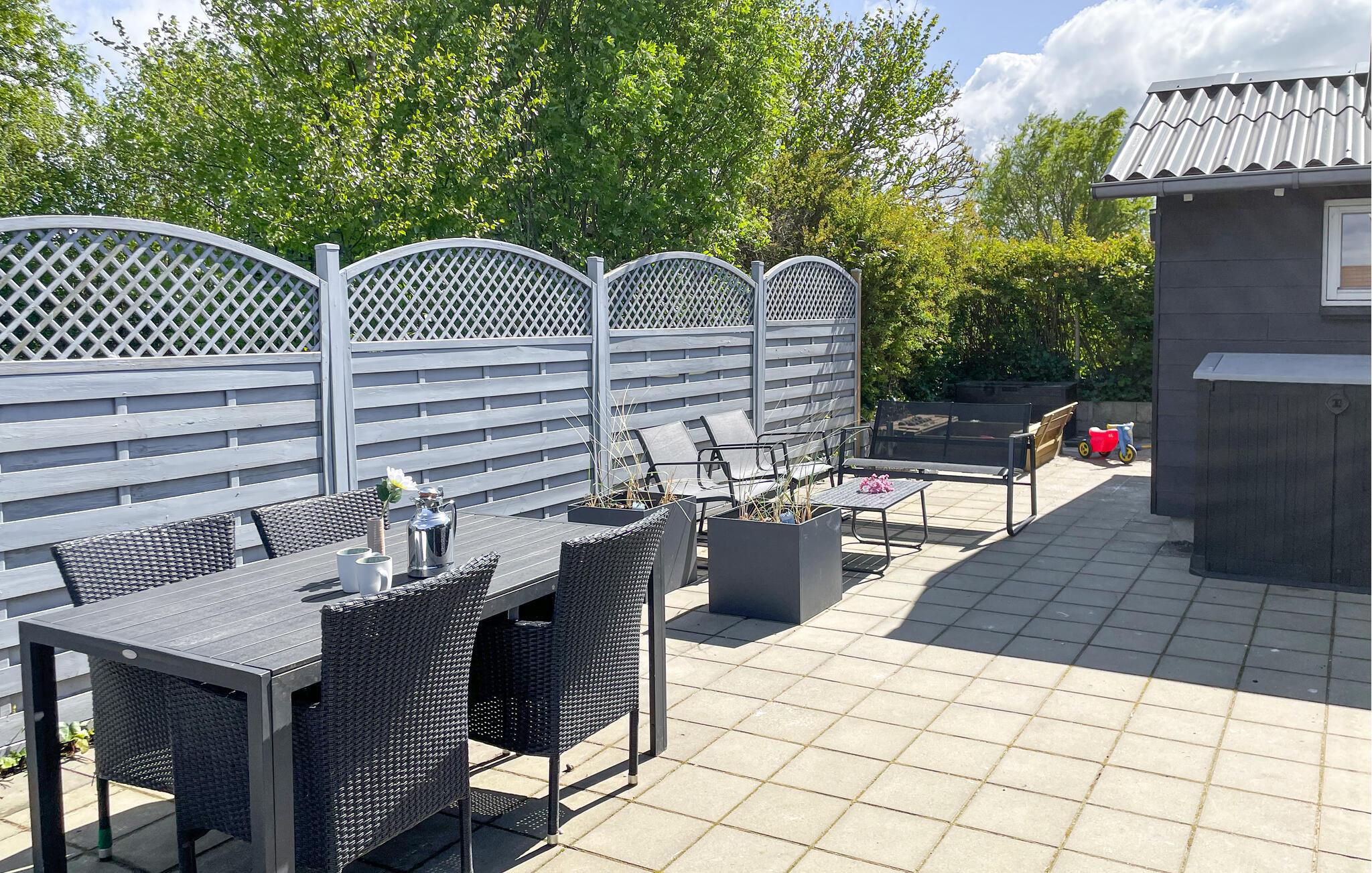 Das Haus verfügt über einen schönen eingezäunten Garten und drei Terrassen mit bequemen Möbeln, auf denen Sie bei einer Tasse Kaffee die Aussicht von morgens bis abends genießen können. Spielen Sie Ballspiele mit den Kindern oder lassen Sie sie auf dem Trampolin hüpfen. Grillen Sie abends auf dem Außenkamin, während ein Lagerfeuer im Garten für gemütliche Stimmung sorgt.