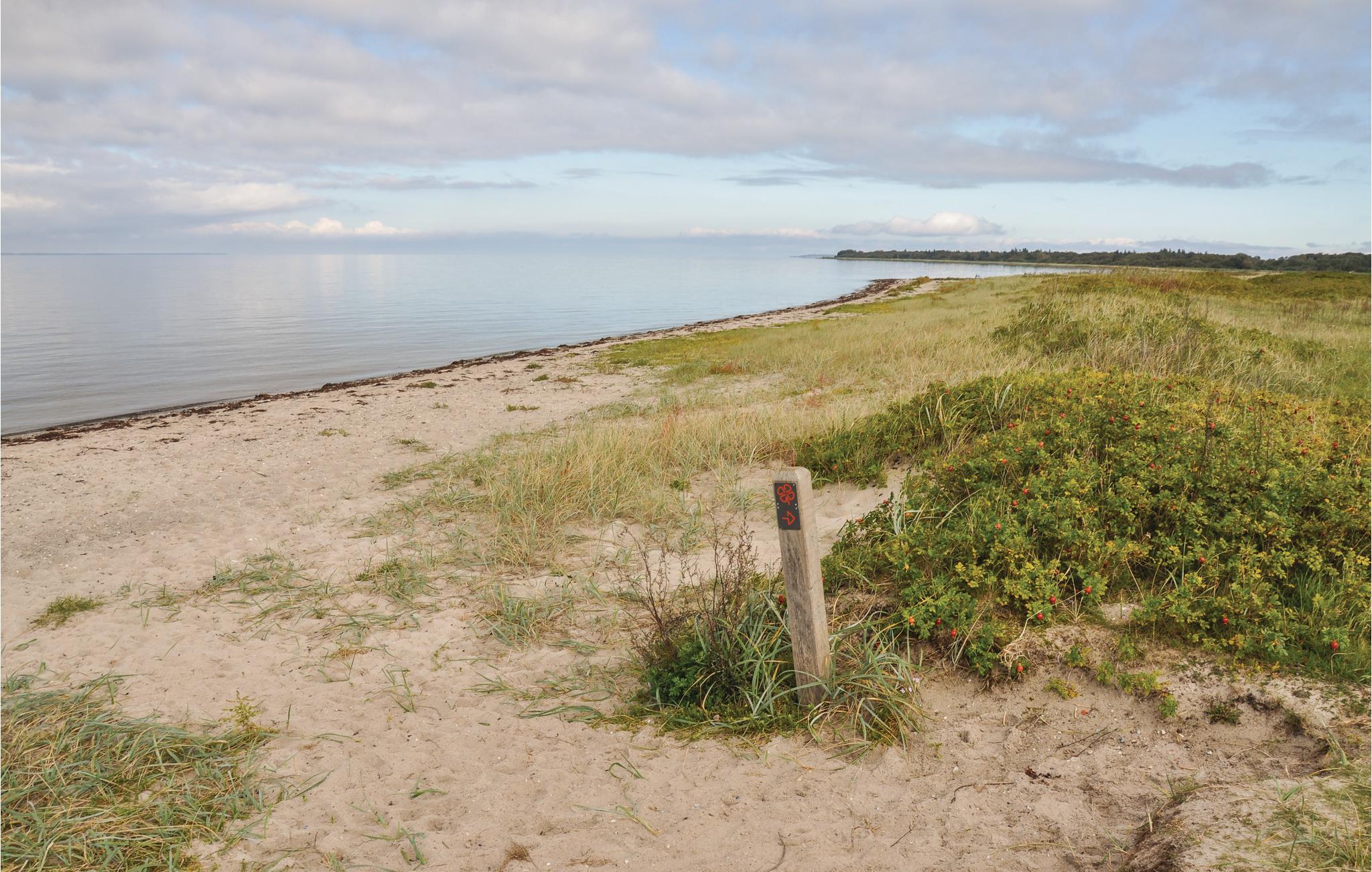 Ganz ungestört, in ruhiger Umgebung und mit einer schönen Aussicht auf die Landschaft finden Sie dieses Ferienhaus. Die Zufahrt zum Sommerhaus erfolgt über einen kleinen Weg mit alten Bäumen, der hinunter zu einem ungestörten Strand führt. Der Strand ist kinderfreundlich und auch bei Anglern und Kitesurfern beliebt.
