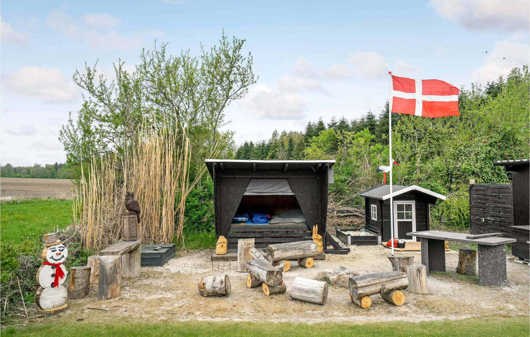 Der Eigentümer hat einen abschließbaren Schuppen, der als Aktivitätsraum eingerichtet ist und sich gut als Aufbewahrungsraum eignet. Wenn Sie gerne außer Haus schlafen wollen, ist auf dem Grund auch ein Shelter vorhanden. Gleich neben dem Haus liegt die Bushaltestelle mit einer Verbindung nach Bogense. Vom Haus ist es nicht weit nach Bogense, einer Hafenstadt mit Hallenbad, und es ist auch nicht weit nach Middelfart, wo Sie ebenso alles finden, was eine Großstadt zu bieten hat. Eine Slipstelle liegt am Skåstrup Strand, wo