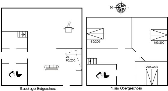 Die Schlafplätze verteilen sich auf 3 Schlafräume. 6 Schlafplätze in Doppelbetten. 2 Schlafplätze auf einer Doppelschlafcouch. Ferner steht ein Kinderbett zur Verfügung.