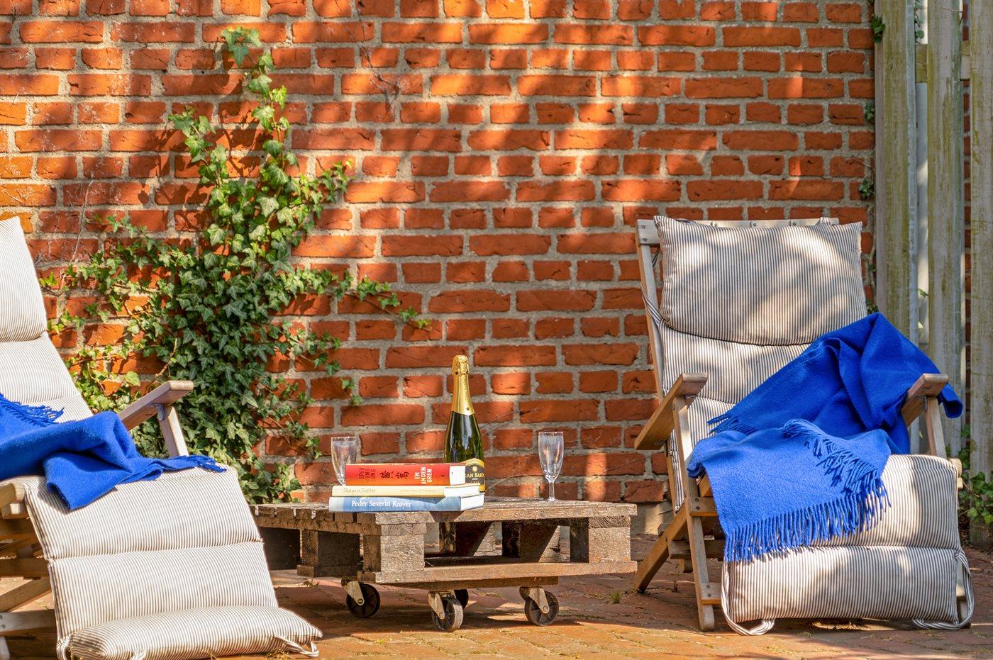 Charmantes Skagenhaus aus Stein mit großem Garten, nahe Zentrum und Meer, ideal für entspannte Ferien.
