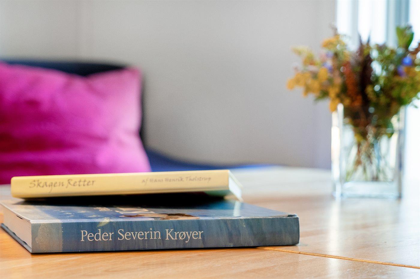 Nettes Skagenhaus aus Stein, dicht am Zentrum und Hafen gelegen. Zum Haus gehören ein großer, abgeschirmter Garten mit Gartenmöbeln, Pavillon sowie Basketballkorb. Innen gibt es Klinker- und Holzböden. Eingebauter Kamin im Wohnzimmer. 2 Schlafplätze im Wohnzimmer.