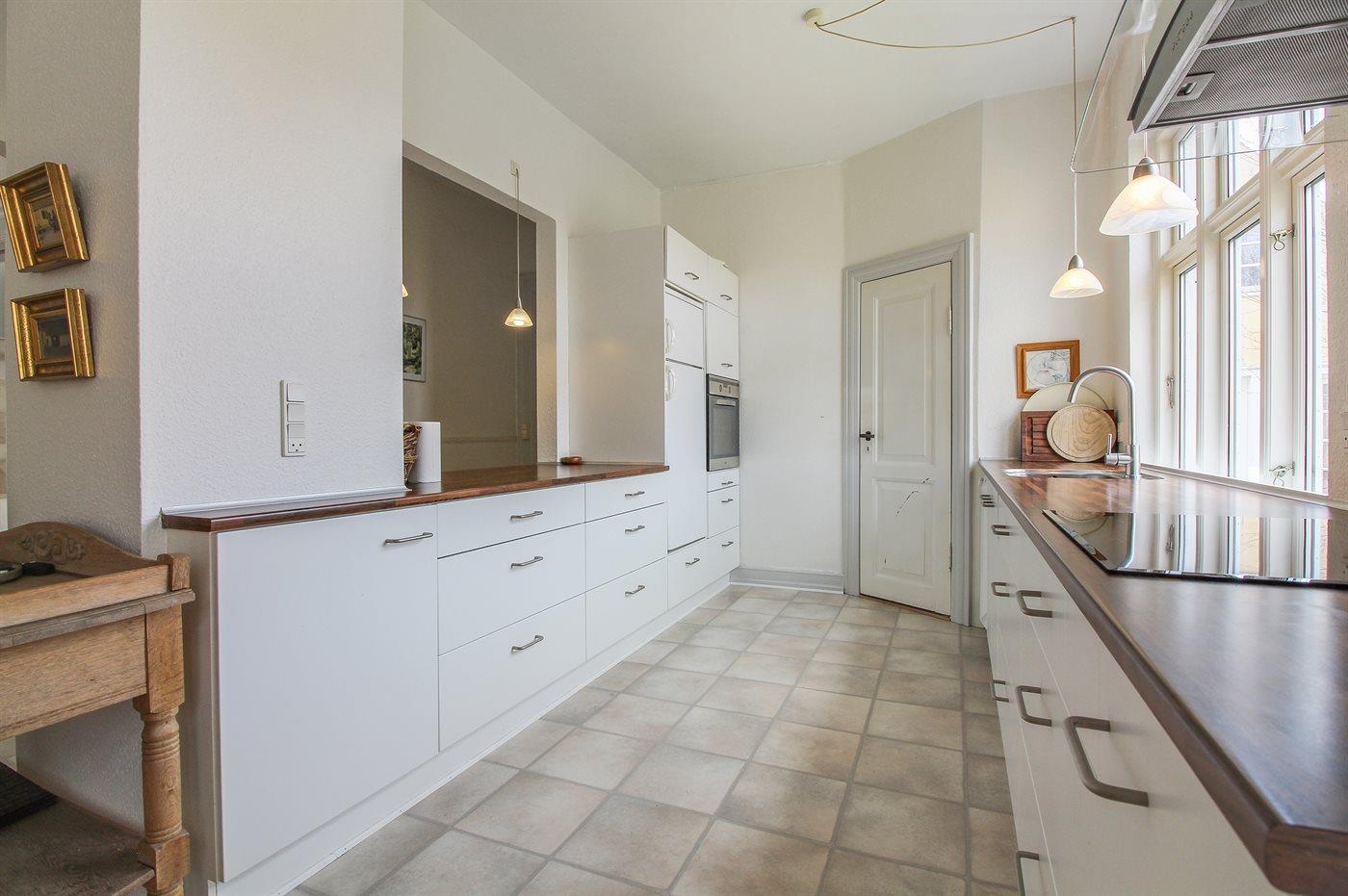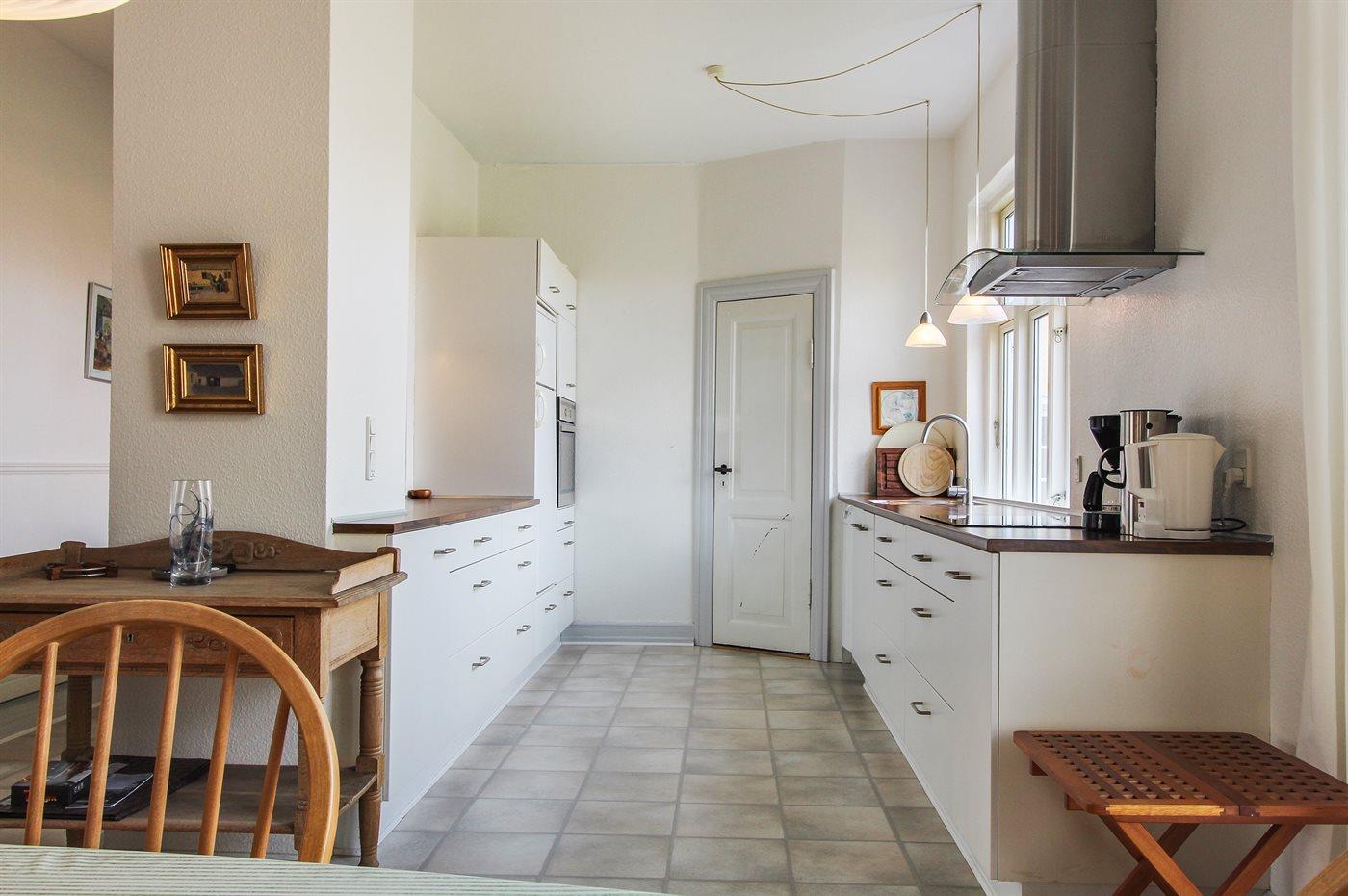 Die Küche ist mit Kühlschrank ausgestattet. Außerdem gibt es 4 Induktions-Kochzonen, Umluftofen sowie Geschirrspüler.
