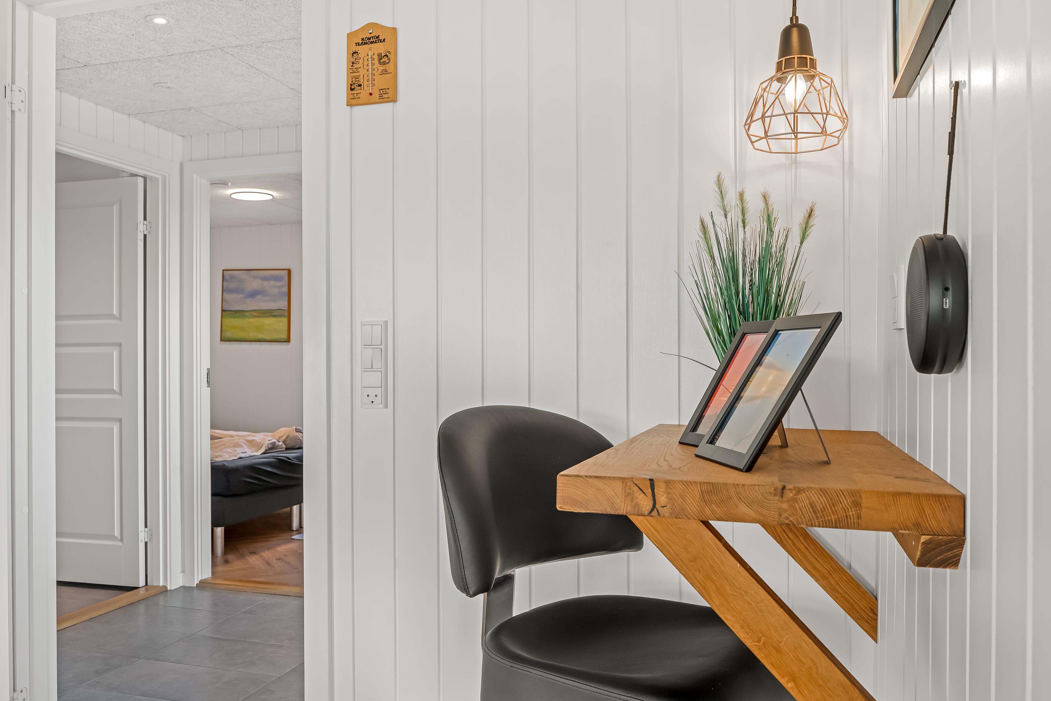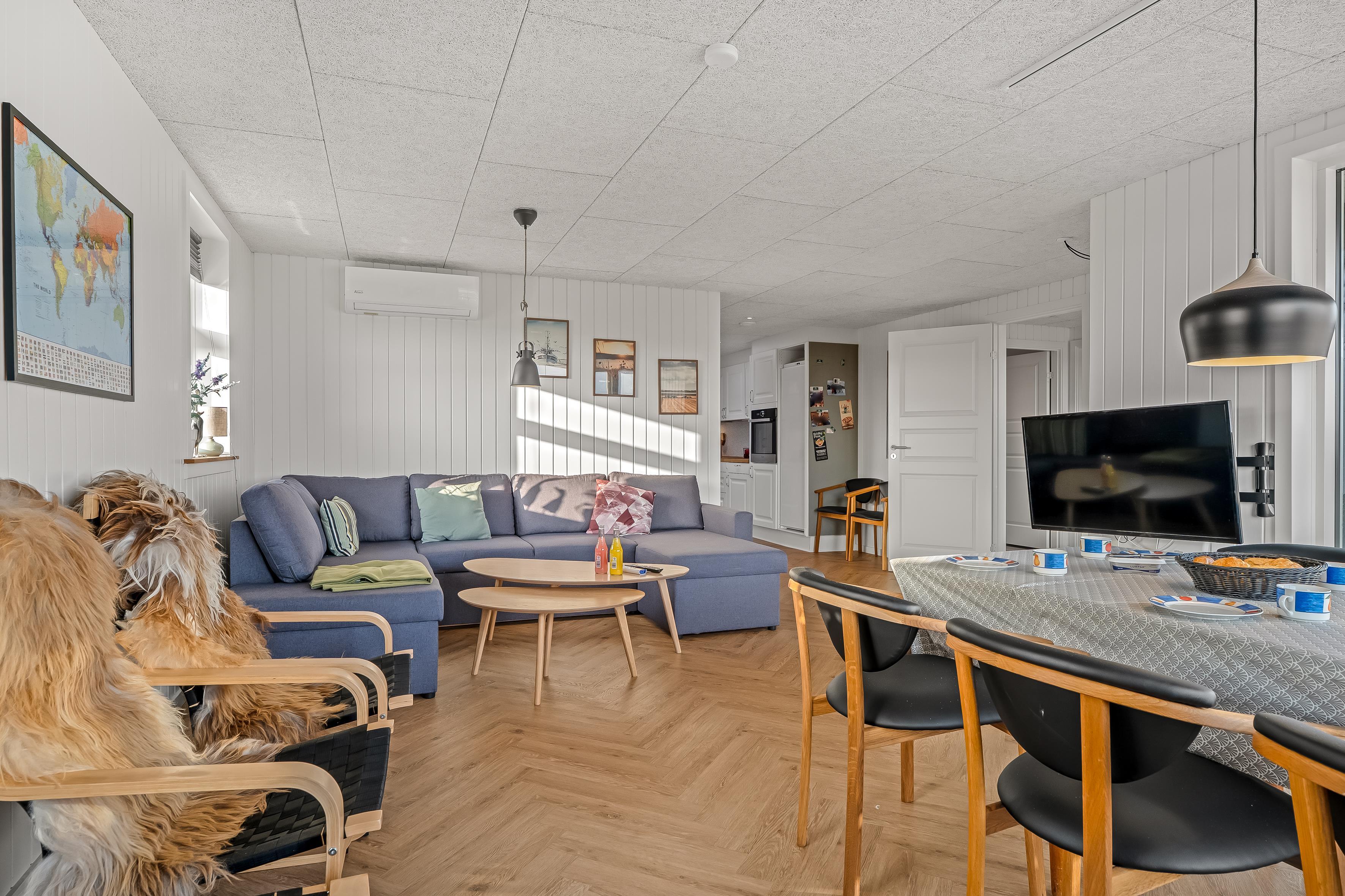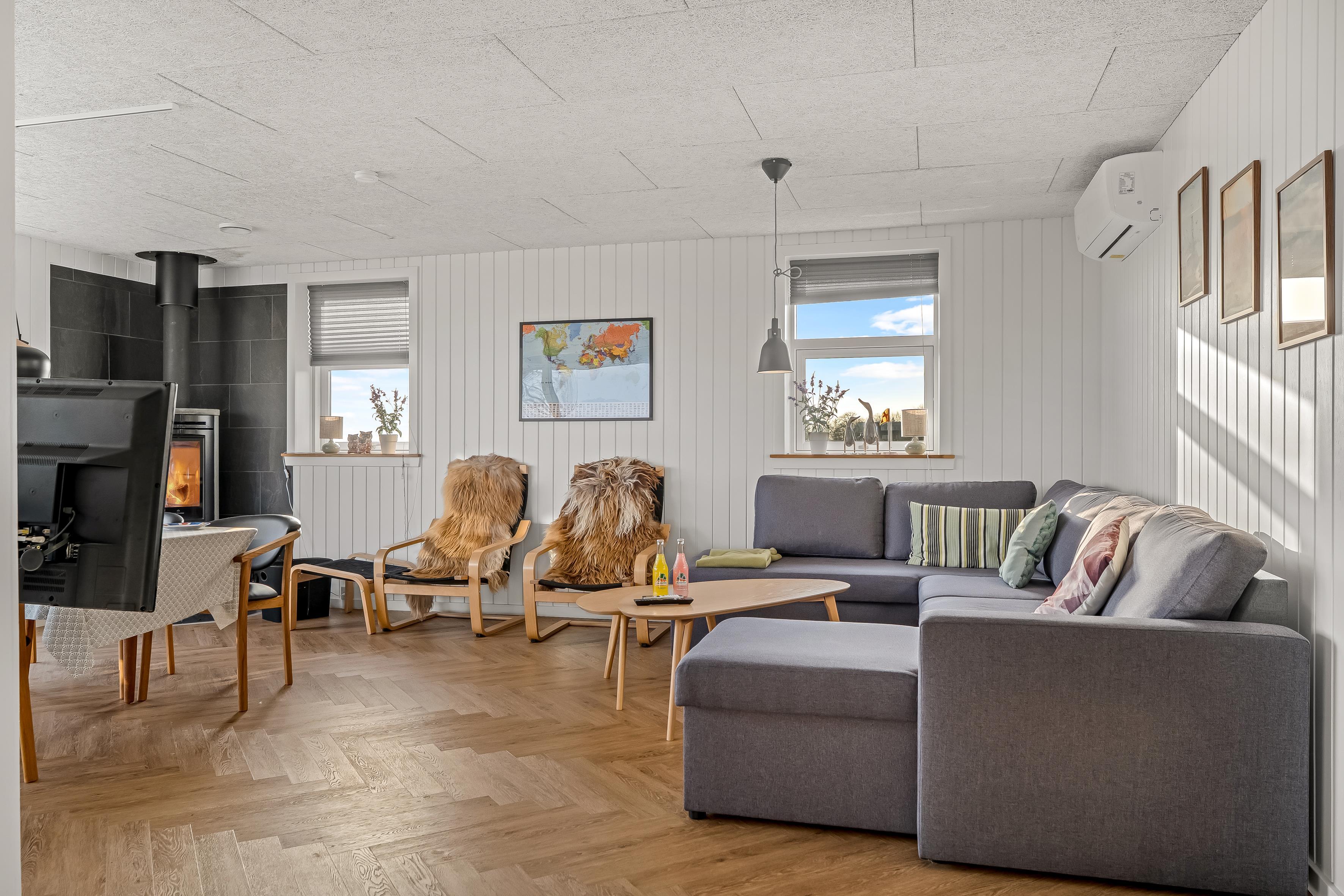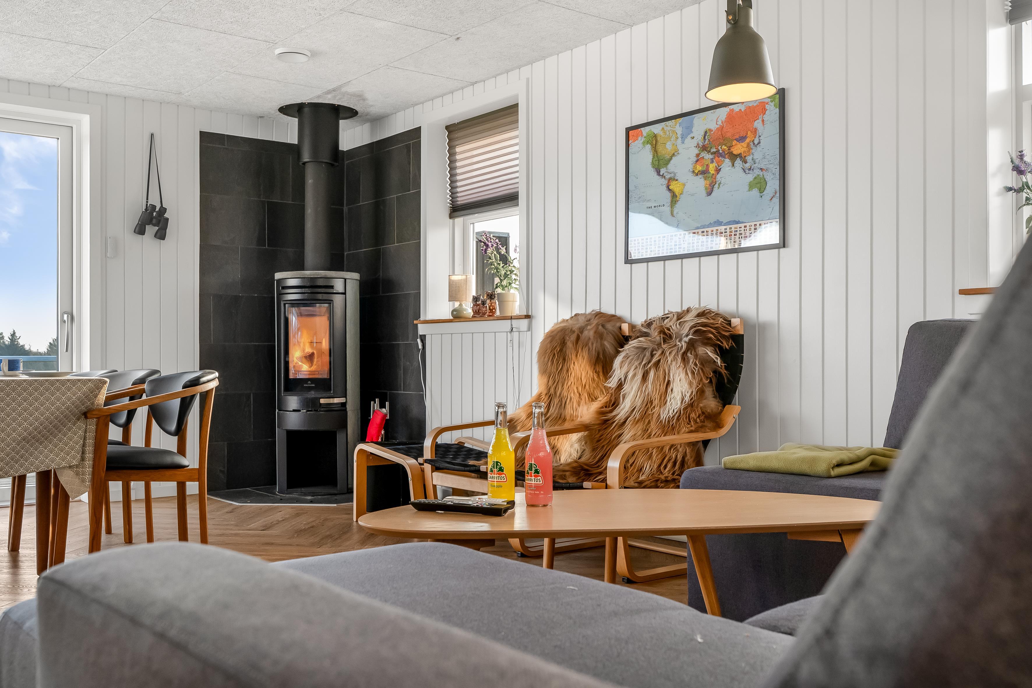 Der zentrale Wohnbereich umfasst ein gemütliches Wohnzimmer mit Kaminofen, in dem Sie sich bei Wärme und angeregten Gesprächen versammeln können. Für alle, die nach einem Tag am Wasser entspannen möchten, gibt es einen Fernseher mit dänischem und deutschem Programm sowie Chromecast zum Streamen Ihrer Lieblingssendungen. WLAN ist ebenfalls verfügbar, sodass Sie bei Bedarf in Verbindung bleiben können.