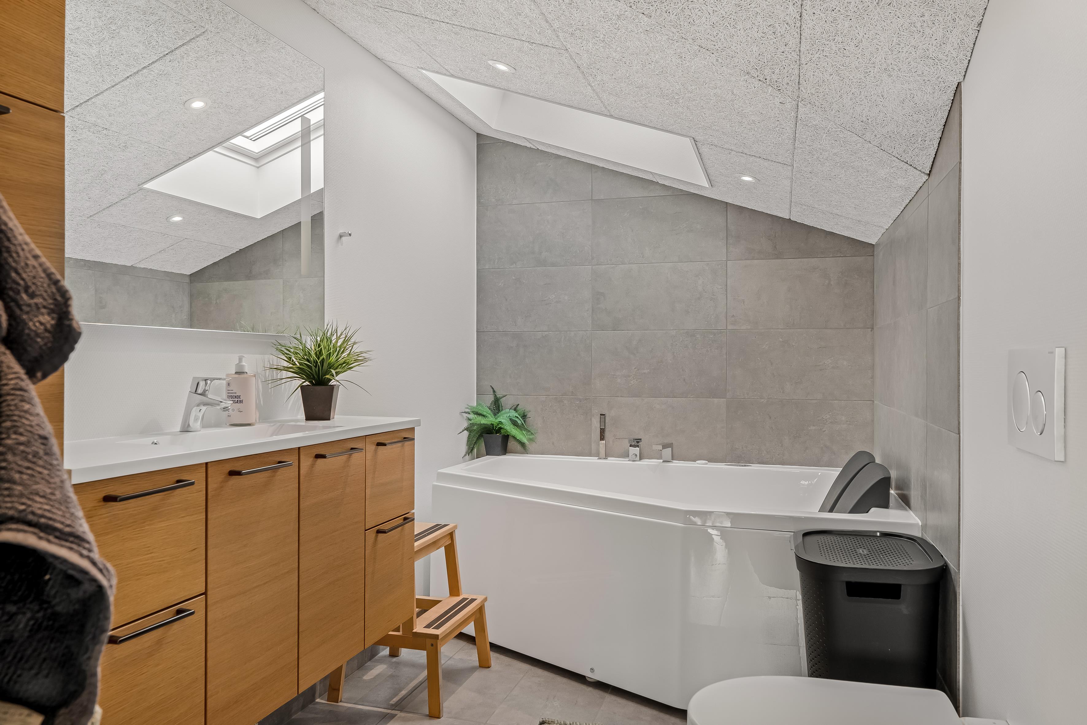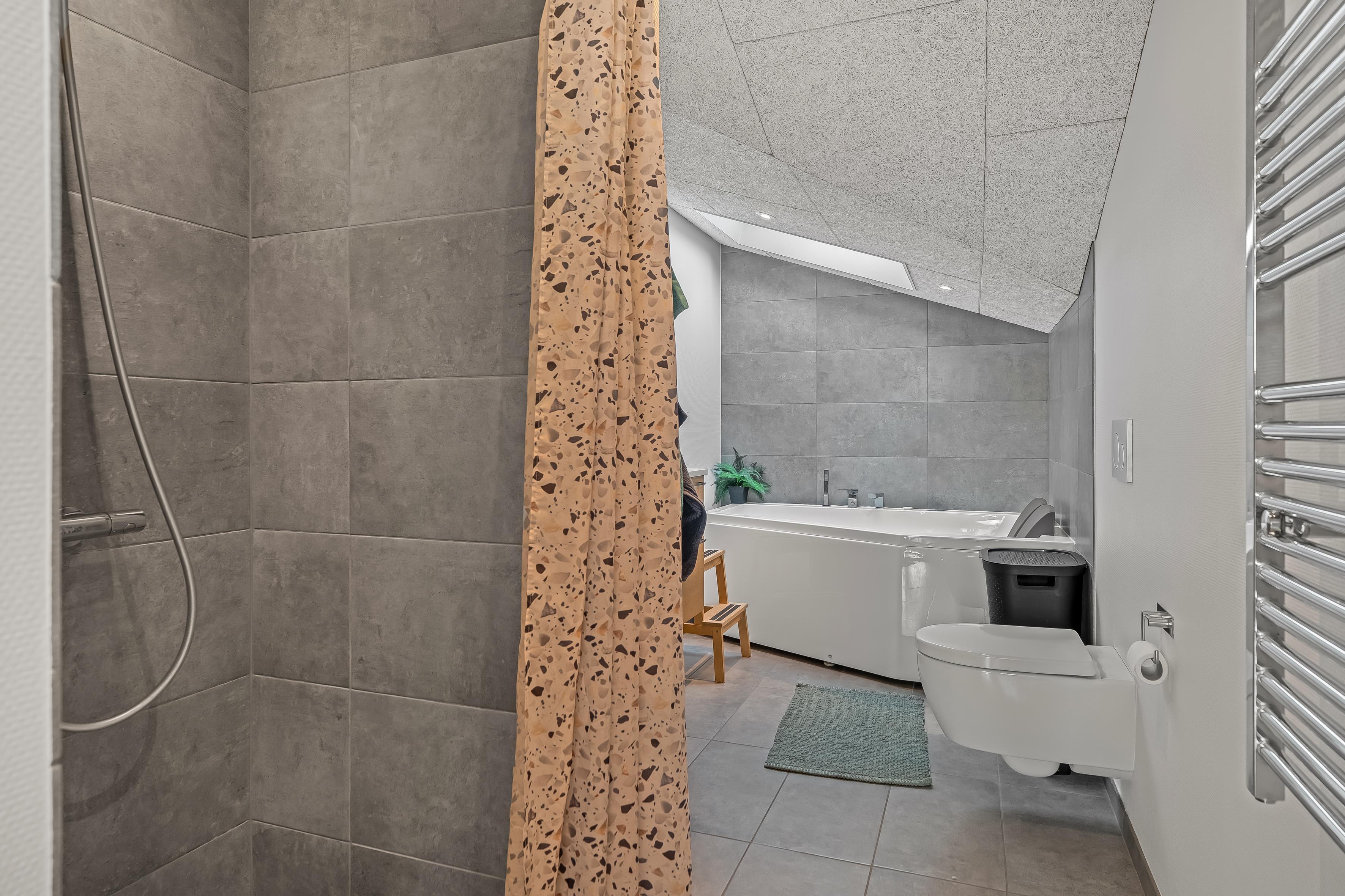 Das moderne Badezimmer ist mit Fußbodenheizung ausgestattet, sodass Sie sich auch an kälteren Tagen wohlfühlen. Hier finden Sie außerdem eine Dusche und eine Toilette, was das Haus sowohl für Familien als auch für Gruppen praktisch macht. Es verfügt zudem über eine energiesparende Wärmepumpe, die auch als Klimaanlage genutzt werden kann, sodass Sie die Temperatur unabhängig von der Jahreszeit Ihren Bedürfnissen anpassen können.