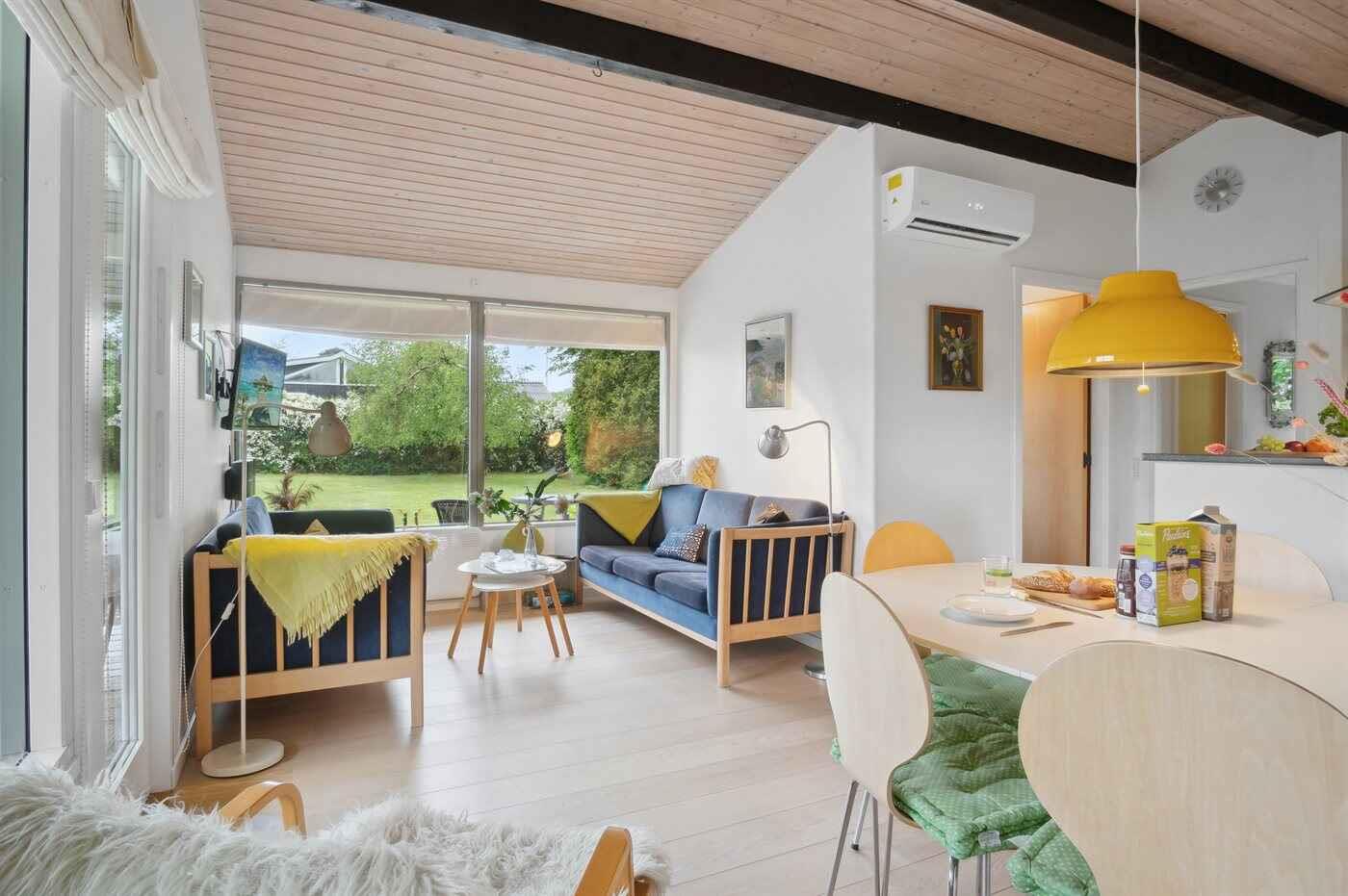 Dieses gemütliche Ferienhaus liegt in einer ruhigen Ferienhaussiedlung, nur 250 Meter vom Strand entfernt. Das Haus ist ideal für Familienurlaube mit seinen 3 Schlafzimmern und 6 Schlafplätzen. Die Küche, der Essbereich und das Wohnzimmer sind in einem Raum zusammengefasst und schaffen eine offene und geräumige Atmosphäre. Von hier aus gibt es direkten Zugang zu einer großen Holzterrasse, von der ein Teil überdacht ist. Die Terrasse ist nach Westen und Süden ausgerichtet, sodass man den ganzen Tag die Sonne genießen kann. Perfekt, um sich zu entspannen, zu grillen und im Freien zu essen. Die Umgebung bietet schöne Strände, darunter der kinderfreundliche Stillinge Strand. Im Sommer gibt es hier viel Leben mit Eisdielen und Restaurants. Entdecken Sie auch die nahegelegenen Orte wie Mullerup, Reersø und Røsnæs, die alle wunderschöne Naturerlebnisse bieten. Für historisch Interessierte lohnt sich ein Besuch der Wikingerburg Trelleborg, und für Kinder ist BonBon-Land ein Highlight. Das Ferienhaus ist mit einer energiesparenden Wärmepumpe, einem Hochstuhl und einem Kinderbett ausgestattet. Es besteht auch die Möglichkeit, ein Haustier mitzubringen, sodass die ganze Familie zusammenkommen kann. Mit einem großen Garten und einem Sandkasten gibt es viel Platz für die Kleinen zum Spielen, während die Erwachsenen auf einem nahegelegenen Golfplatz spielen oder einen Tagesausflug nach Kopenhagen unternehmen können. Das Ferienhaus befindet sich auf einem 815 m² großen Grundstück.