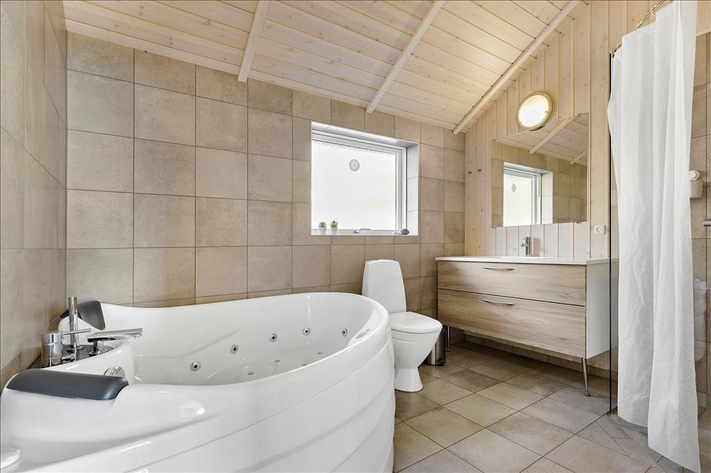 An dein Urlaubsdomizil schließen offene und überdachte Terrassen, auf denen du das Leben im Freien von morgens bis abends genießt. Ganz gleich, ob du dich mit einem guten Buch in der Sonne entspannen, den Grill für das Abendessen anheizen oder dein E-Auto laden möchtest, alles ist möglich. Lediglich 250 Meter trennen dein Mietobjekt vom Strand, der eine schöne Kombination aus Stein- und Sandstrand darstellt. Am Strand kannst du mit deinen Lieben nach Herzenslust baden, lange Strandspaziergänge unternehmen oder einfach verträumt auf das Meer blicken und die Seele baumeln lassen.