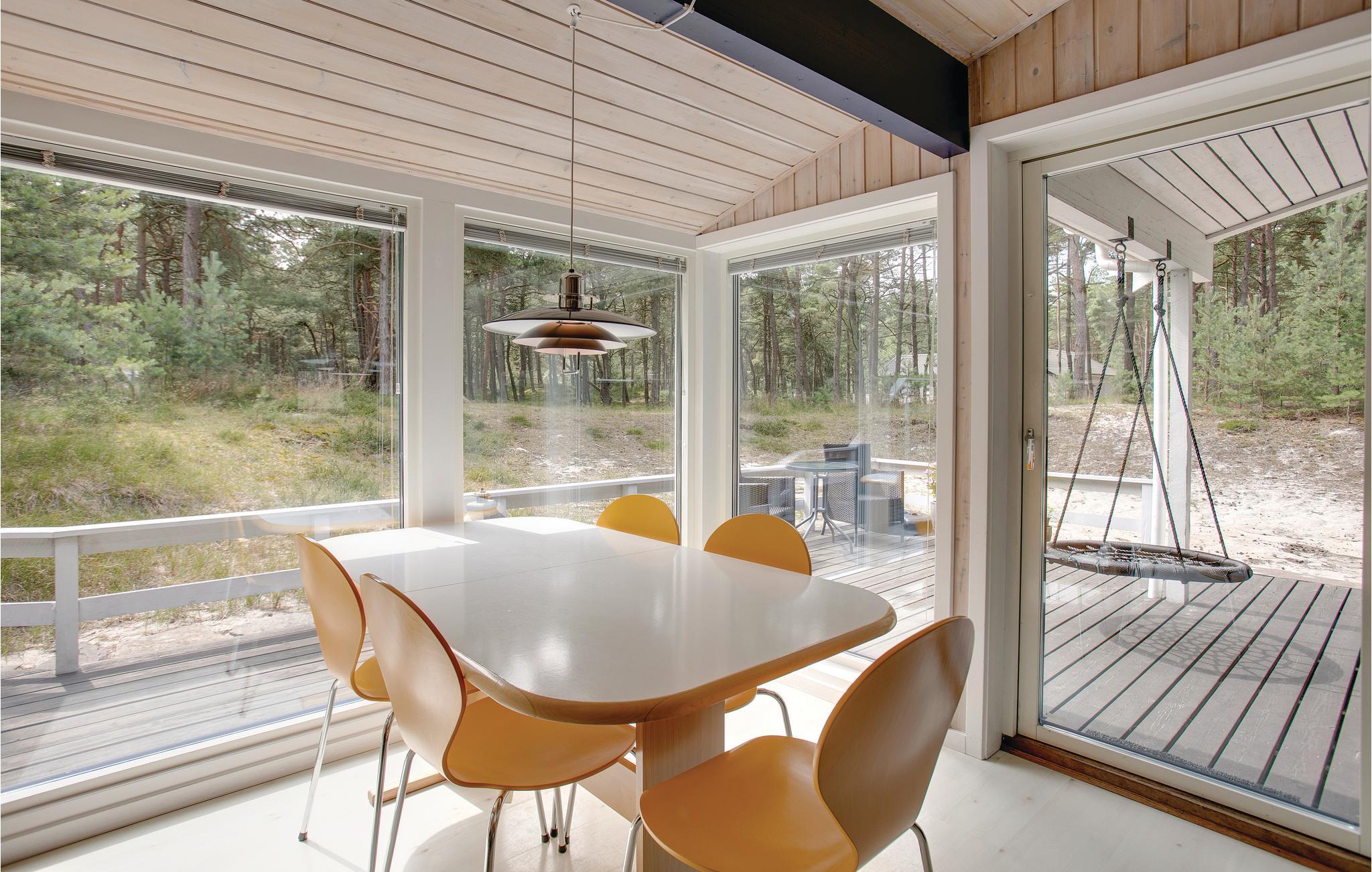 Auf einem großen Naturgrundstück, in der Nähe eines schönen Sandstrands, steht dieses gepflegte und geräumige Ferienhaus. Es wirkt insgesamt hell und modern eingerichtet, und von guter Atmosphäre geprägt. Ihre Urlaubsmahlzeiten können Sie einfach in der komplett ausgestatteten, offenen Küche zubereiten, und inzwischen kann die Familie sich im kombinierten Wohn- und Esszimmer in den komfortablen Möbeln entspannen. Der Kaminofen und die Wärmepumpe sorgen für eine angenehme Temperatur im Haus, zu jeder Jahreszeit, und im ganzen Haus haben sie gratis Internet zur Verfügung. Auf der großen Terrasse aus Holz mit schönen Gartenmöbeln, Schaukel und Grill können Sie Ihren Urlaub in vollen Zügen genießen. Ganz einfach ein herrliches Ferienhaus für einen ebenso herrlichen Urlaub.