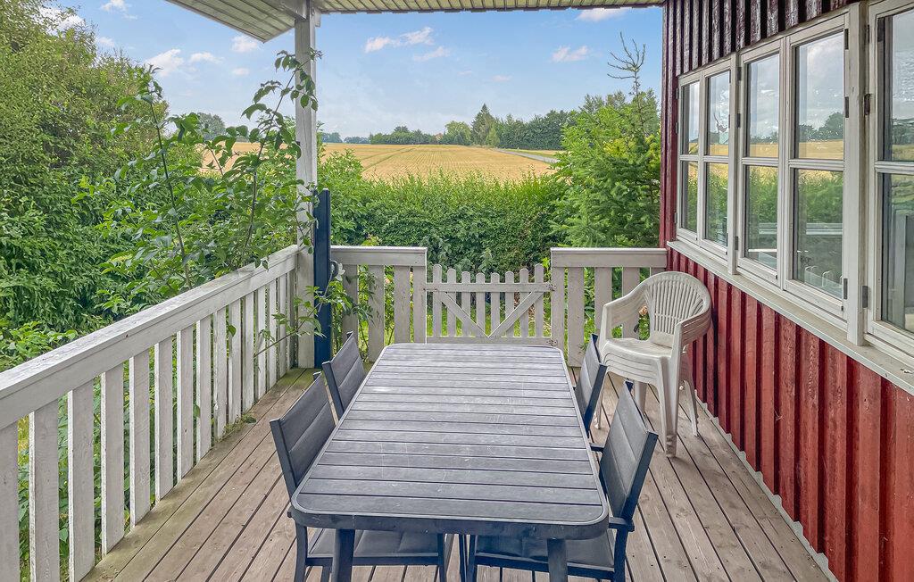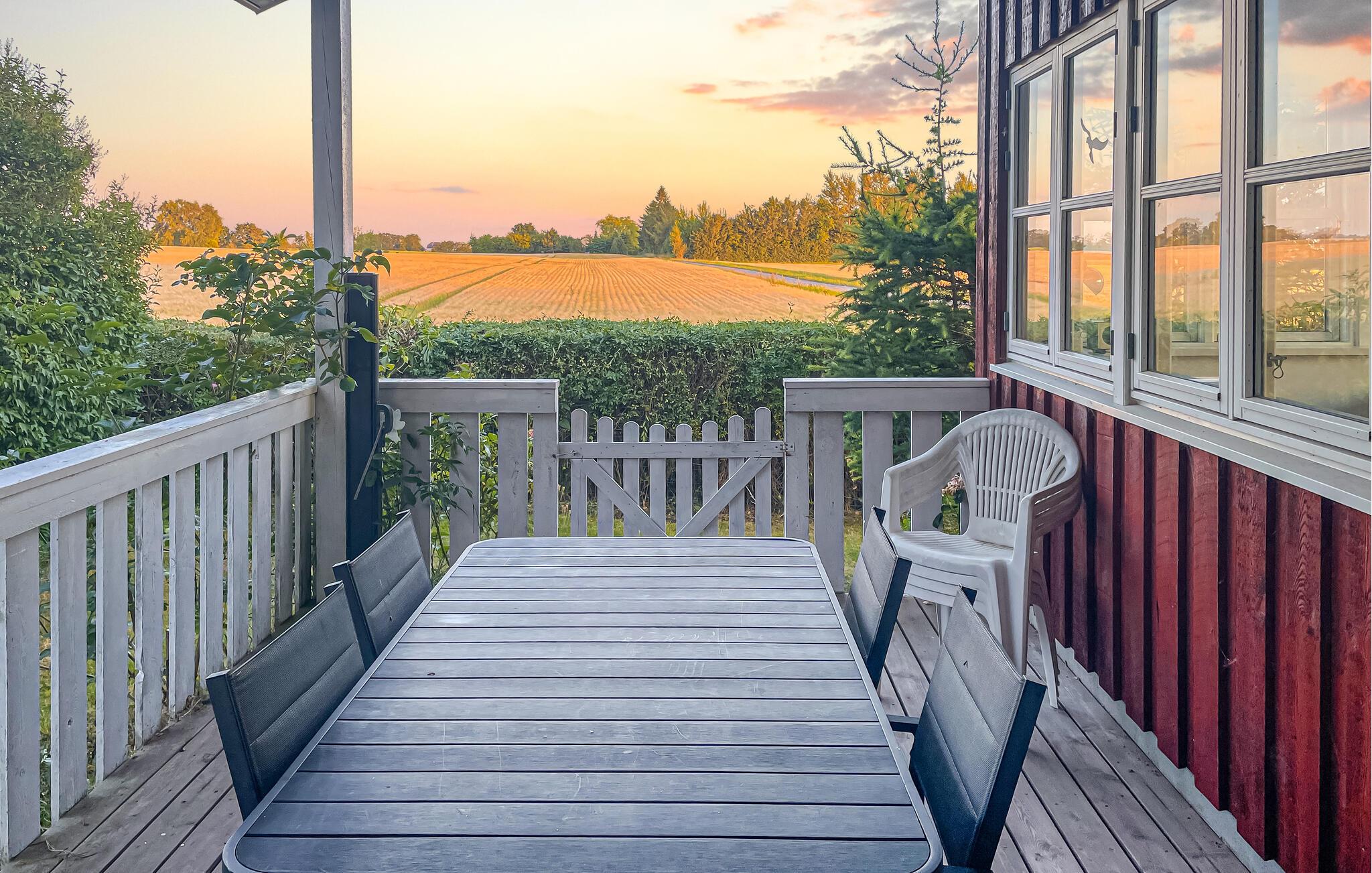 Ruhiges Ferienhaus mit Panoramablick, Terrasse und großem Garten für entspannte Urlaubstage in Dänemark.