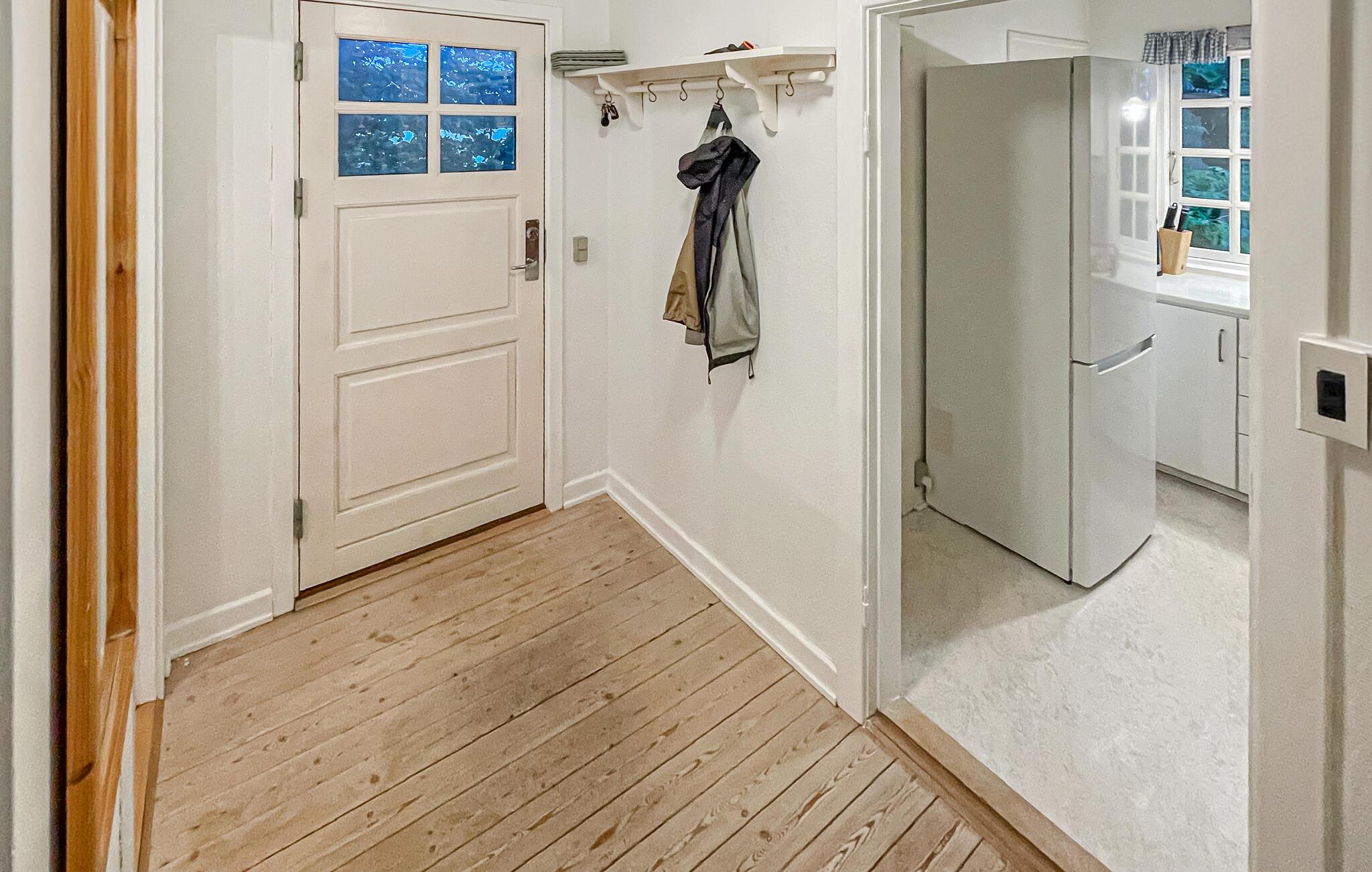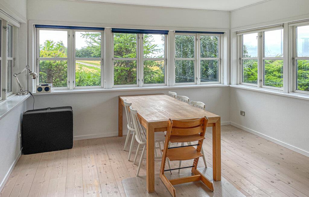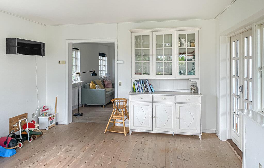 Dieses Ferienhaus ist wie geschaffen für eine ruhige Auszeit vom Alltag. Durch die großen Sprossenfenster gelangt viel Tageslicht ins Innere, während Sie aus den hellen Wohnräumen eine wunderschöne Panoramasicht auf die sanfte Landschaft genießen. Entspannen Sie sich auf dem gemütlichen Sofa beim Plaudern oder bereiten Sie in der praktischen Küche frische Mahlzeiten zu und servieren Sie sie mit einem Glas Wein.