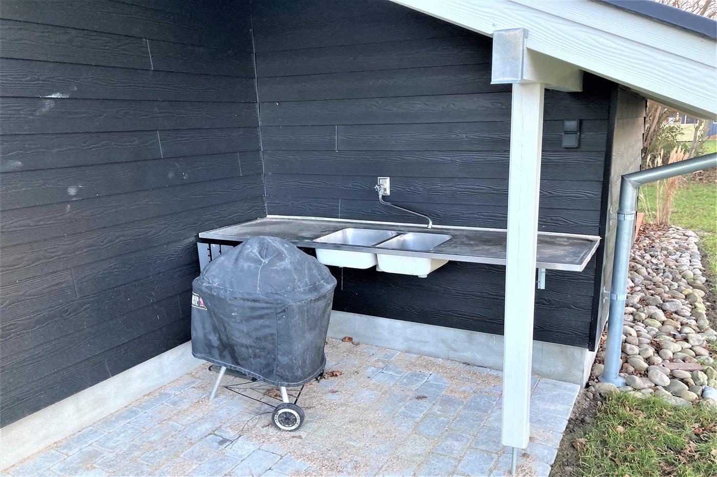 Die Ferienunterkunft liegt auf einem 1213 m² großen Gartengrundstück. Die Entfernung zum Meer beträgt 275 m. Die nächste Einkaufsmöglichkeit liegt 5000 m entfernt. Es steht ein 102 m² Terrassenareal zur Verfügung. Außerdem gibt es 28 m² überdachte Terrasse. Geräteraum. Die Entfernung zu einem Spielplatz beträgt 250 m. Es steht ein Grill zur Verfügung. Parkplatz auf dem Grundstück.