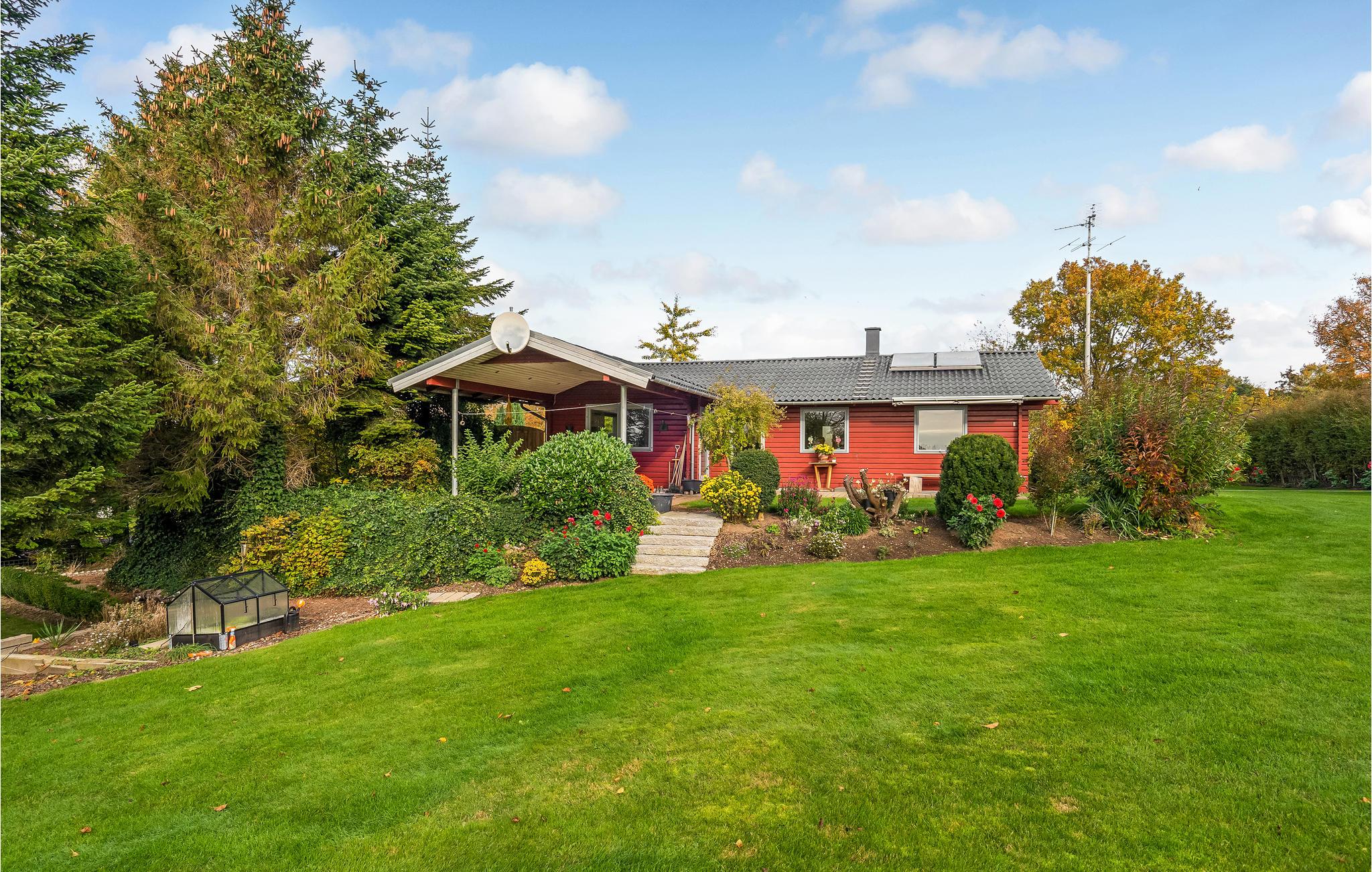 Gemütliches Holzferienhaus in Spodsbjerg mit Garten, Kaminofen und Nähe zum kinderfreundlichen Strand.