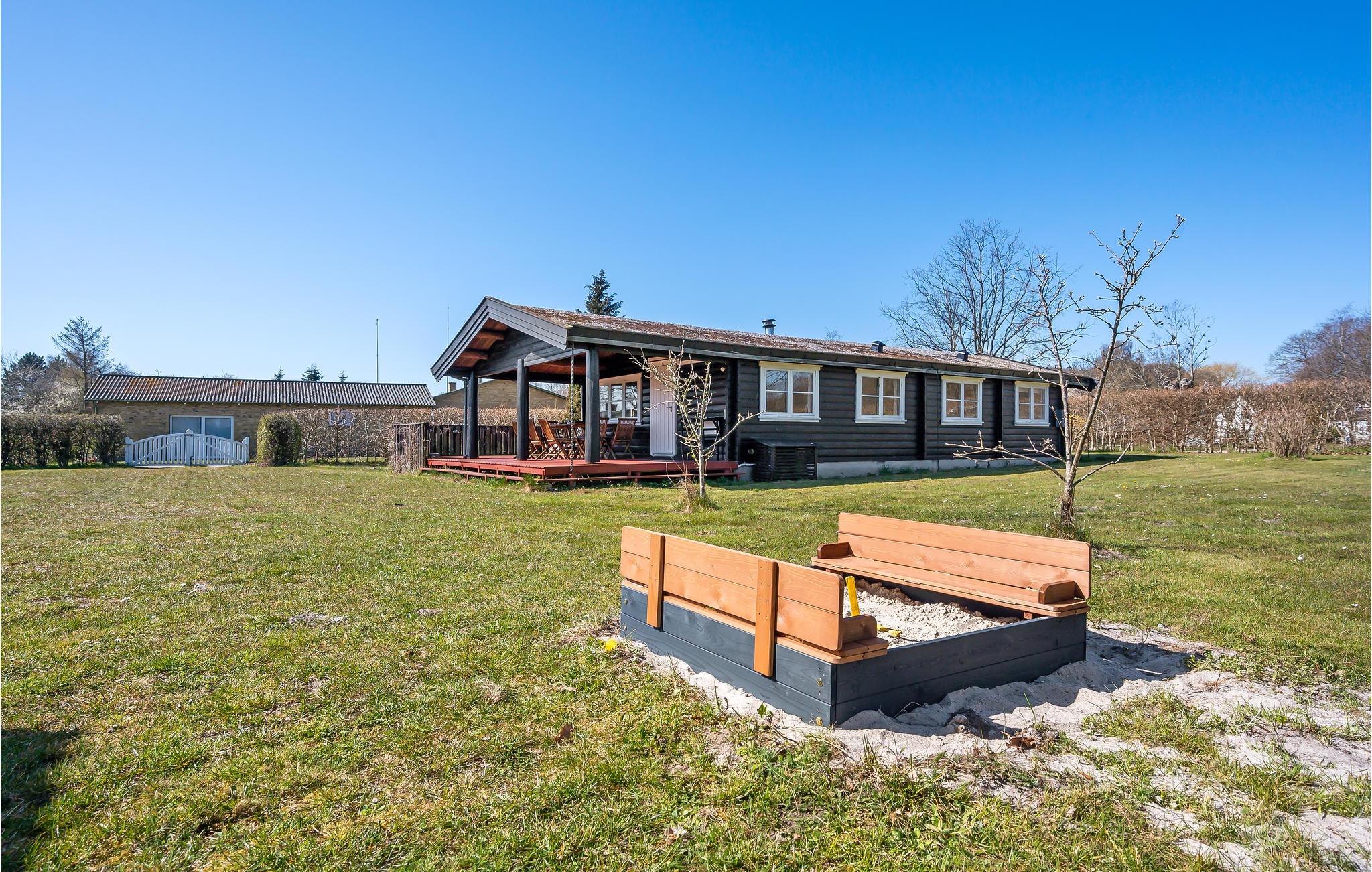 Charmantes dänisches Ferienhaus in Spodsbjerg mit Kamin, Terrasse und Spielplatz auf großem Rasengrundstück.
