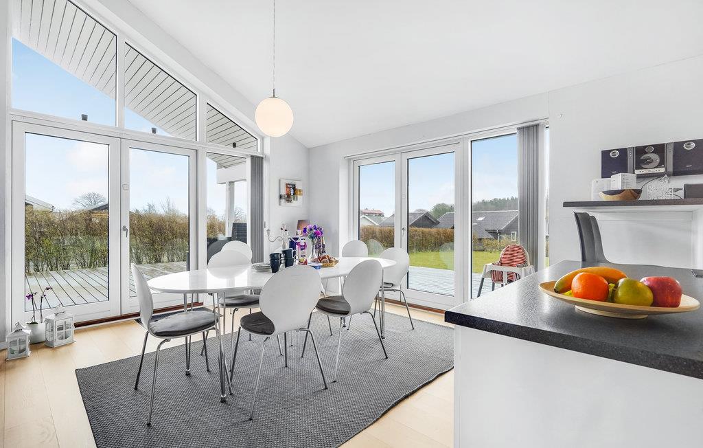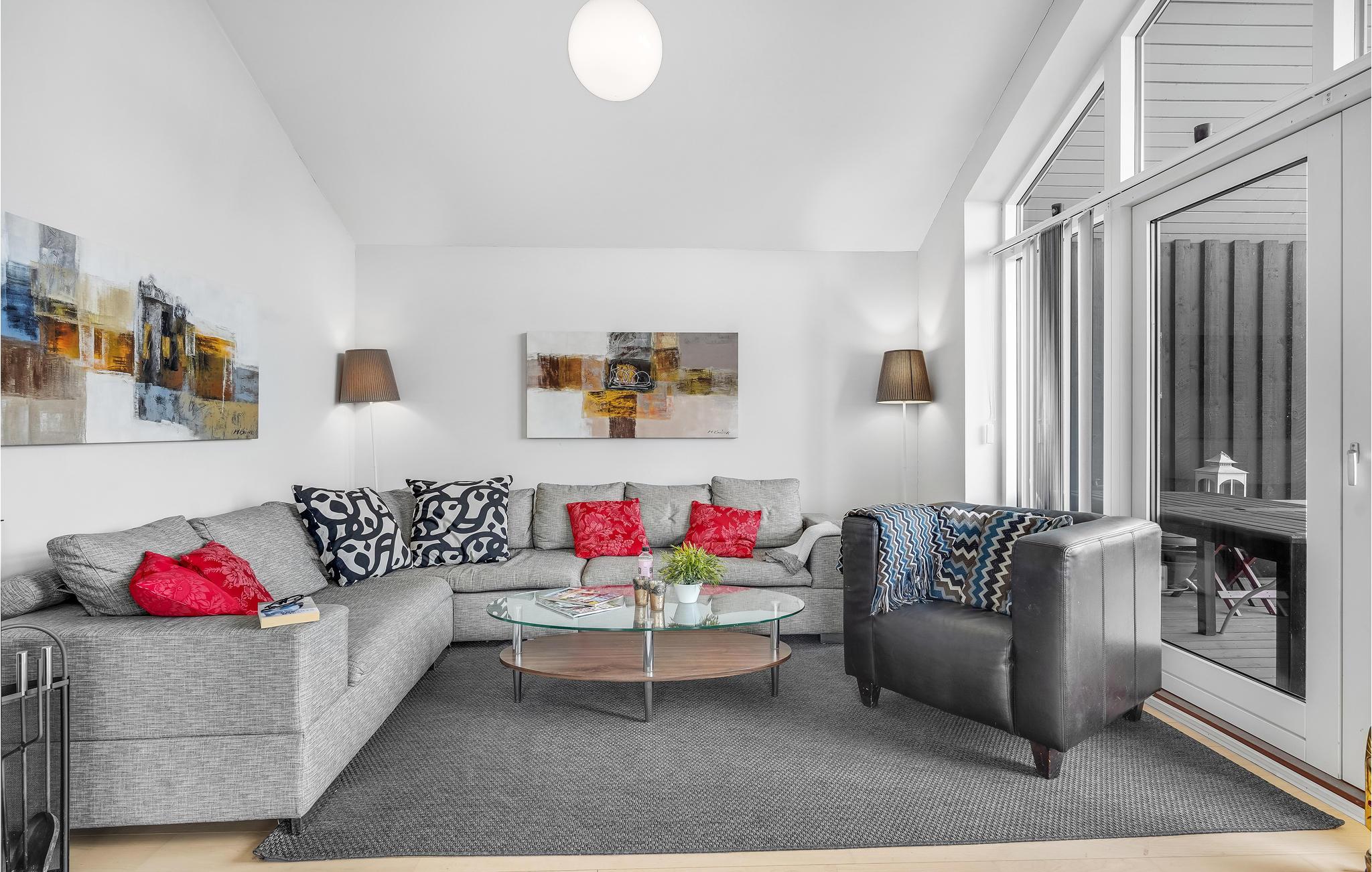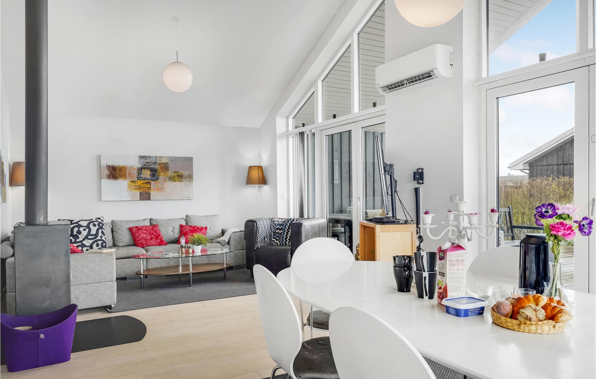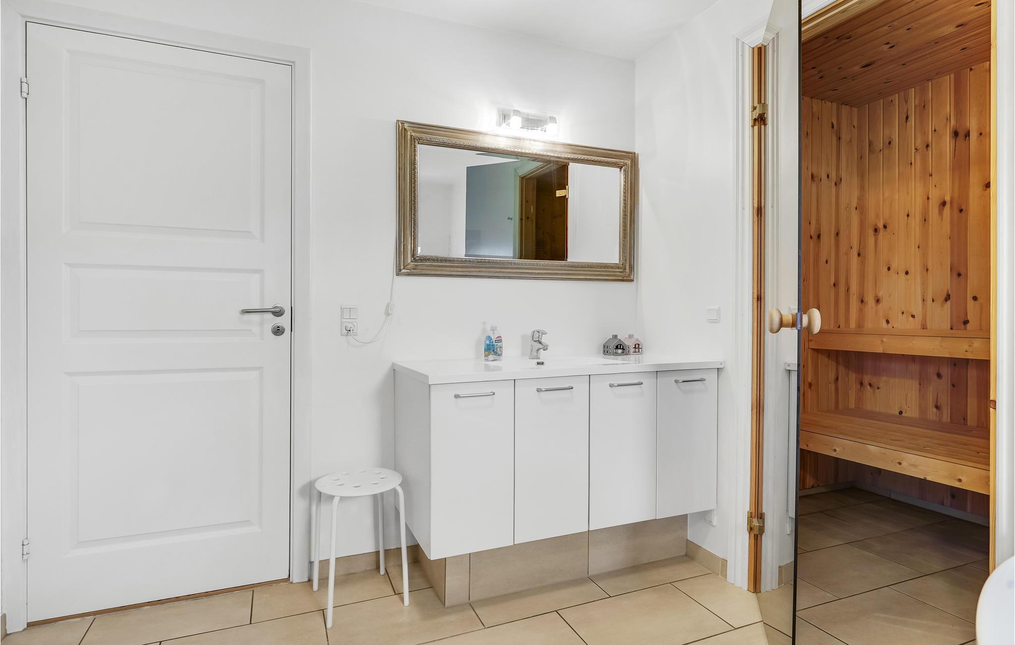 In diesem schönen Ferienhaus mit großem Garten können Sie es sich mit der ganzen Familie oder Ihren Freunden samt Haustieren gemütlich machen. Genießen Sie einen entspannten Aufenthalt mit viel Komfort. Nutzen Sie die außergewöhnlich große Terrasse, um tagsüber oder am Abend Ihre Mahlzeiten einzunehmen, oder einfach nur die frische Luft und die Sonne zu genießen. Die helle Einrichtung und die großen Fenster sorgen für eine angenehme Atmosphäre im Haus. Als Kirsche auf der Sahnehaube finden Sie eine Saune und einen Whirlpool im Bad, sodass Sie sich nach erlebnisreichen Tagen gebührend erholen können.