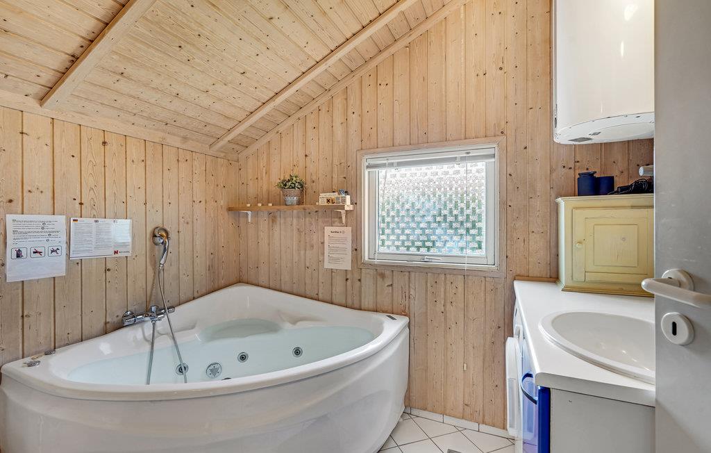 Nahe dem weißen Sandstrand von Spodsbjerg empfängt Sie dieses freundliche Ferienhaus mit Sauna und Whirlwanne.