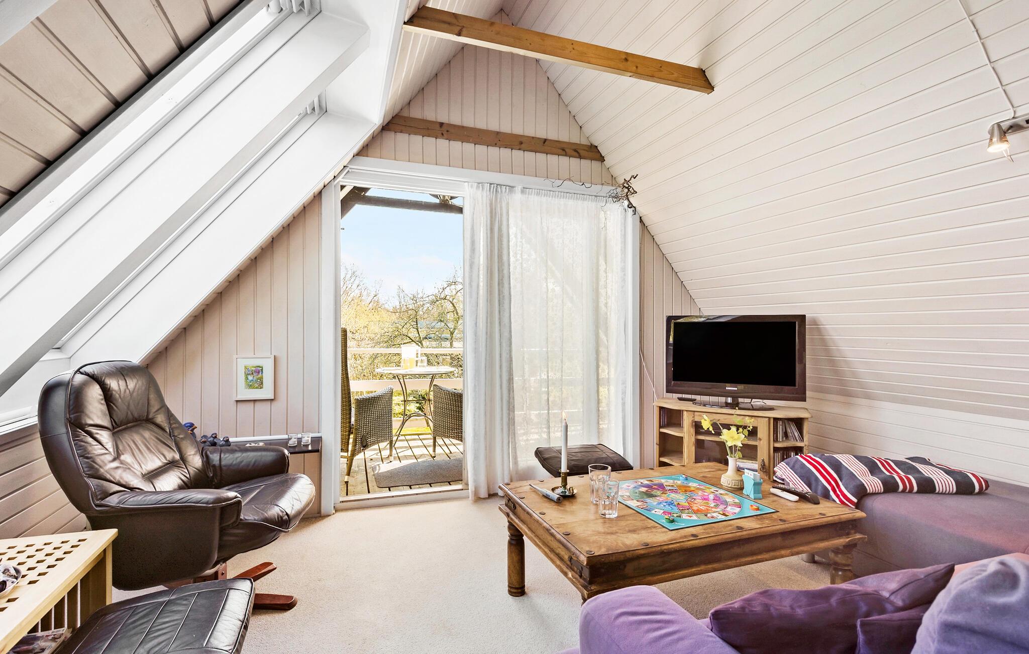 Die Insel Langeland empfängt Sie zu einem Ferienhausaufenthalt, der Ihnen Entspannung und eine fröhliche Urlaubszeit verspricht. Und das nahe gelegene Meer grüßt Sie mit seinem glitzernden Blau. Vom ersten Stock Ihres Ferienhauses haben Sie sogar Blick auf das Meer. Genießen Sie hier auf dem Balkon morgens die erste Tasse Kaffee des Tages. Frühstücken Sie danach in der gemütlichen Essküche oder nehmen Sie Ihr Frühstück mit hinaus auf die großzügige Terrasse. Wenn das Wetter nicht ganz mitspielen sollte, bietet der Wintergarten die Möglichkeit, sich zu entspannen und an dem schönen Blick auf den Garten zu erfreuen. Nutzen Sie auch den großen Garten, um mit Ihren Kindern zu spielen und die frische Luft zu genießen.