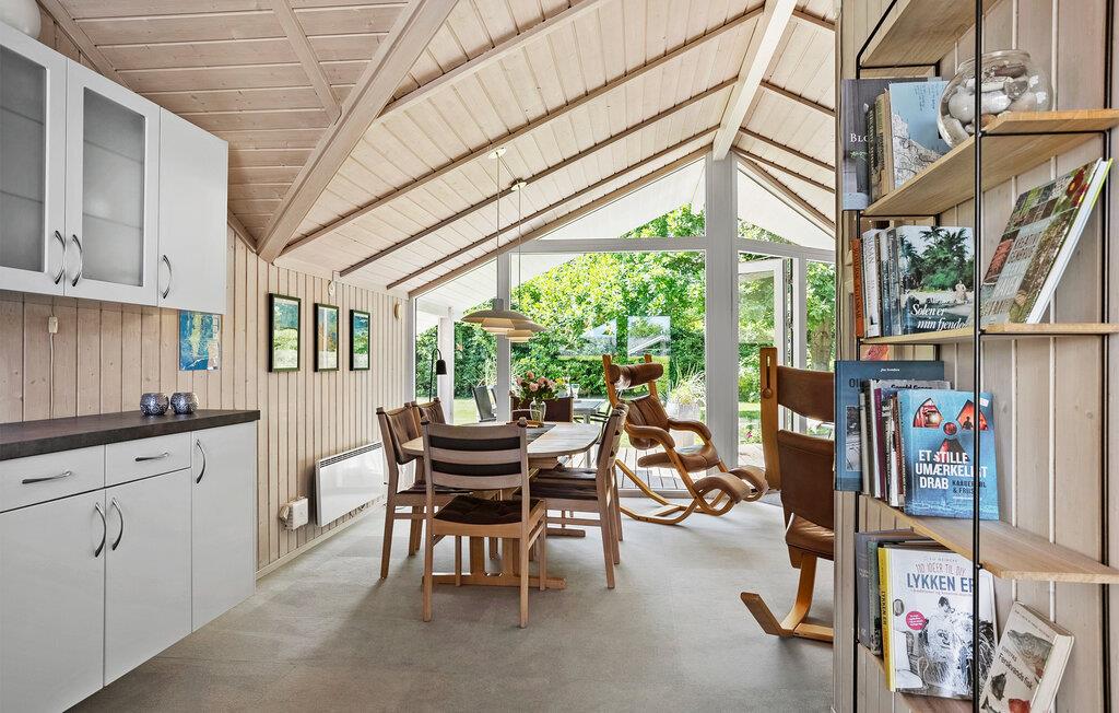 Dieses behagliche Ferienhaus bietet Ihnen den idealen Rahmen für eine entspannte Auszeit mit der Familie. Genießen Sie die freundliche Atmosphäre, das schöne Grundstück und den offenen Wohnbereich, der Küche, Essplatz und Sofaecke harmonisch miteinander verbindet. Kochen Sie gemeinsam in der großzügigen Küche mit Blick ins Grüne. Währenddessen können Ihre Kinder am Esstisch basteln oder auf dem Sofa entspannen. Für zusätzliche Erholung sorgt die private Sauna. Kommen Sie hier nach einem langen, erfüllten Tag zur Ruhe.