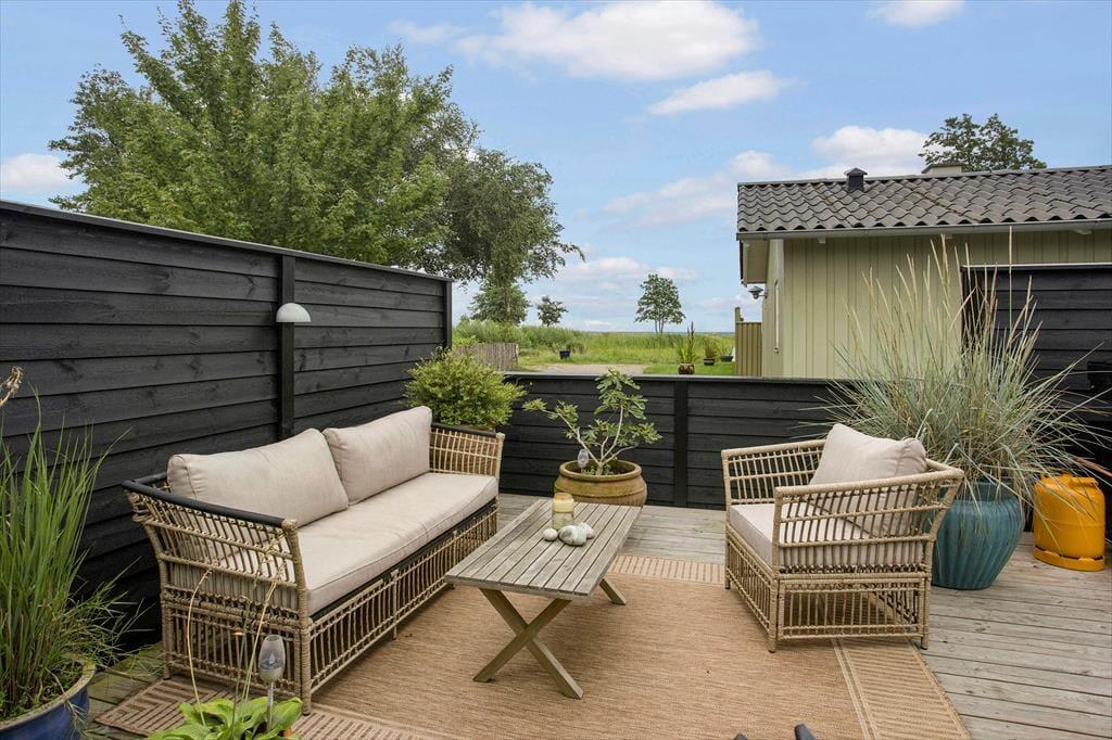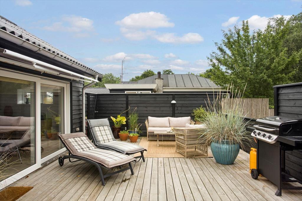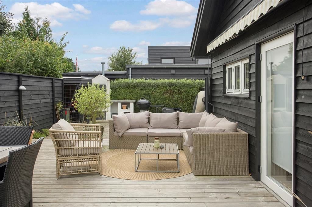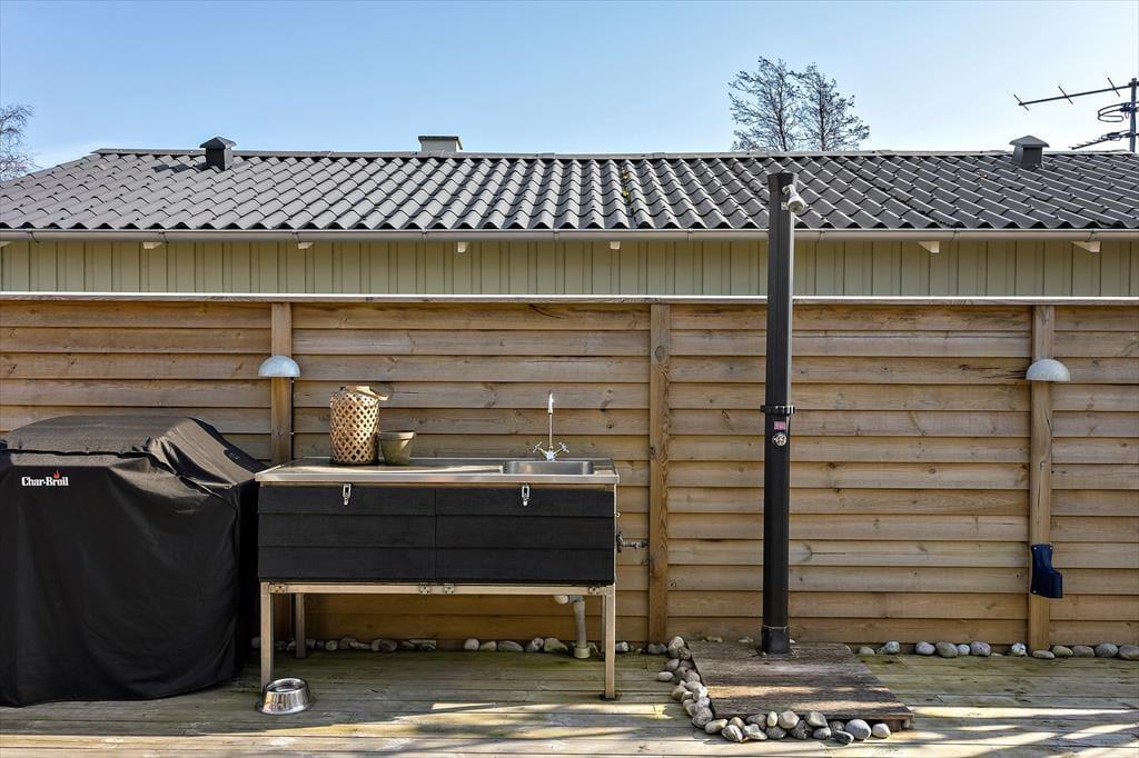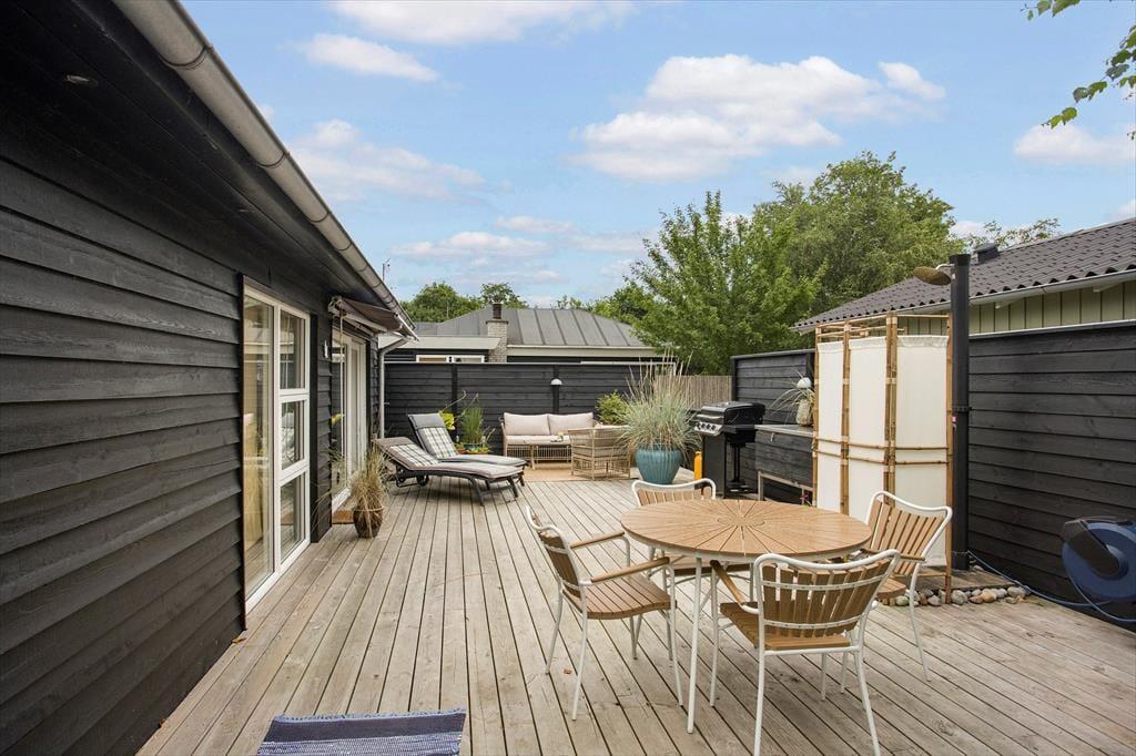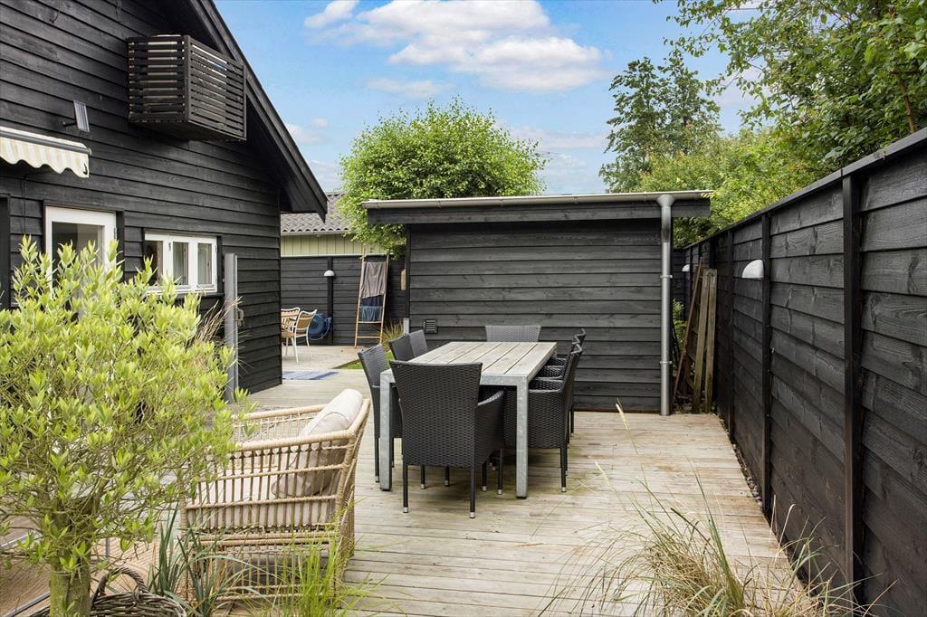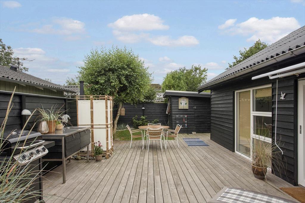 Das Ferienhaus verfügt über ein schönes, geschlossenes Grundstück, das ideal für Outdoor-Aktivitäten ist. Hier können die Kinder spielen, während die Erwachsenen sich in der Sonne entspannen oder eine Mahlzeit im Freien auf der Terrasse genießen. Die teilweise überdachte Terrasse bietet die Möglichkeit, sowohl bei Sonnenschein zu frühstücken als auch lange Sommerabende mit Grillgerichten und gemütlichem Beisammensein zu verbringen. Die Lage in der Nähe des Strandes bedeutet, dass Sie problemlos im klaren Wasser schwimmen gehen oder einen langen Spaziergang entlang der Küste unternehmen können. Der kinderfreundliche Strand macht es zu einem perfekten Ziel für Familien, in dem sowohl Klein als auch Groß die Natur und die Gesellschaft der anderen genießen können.