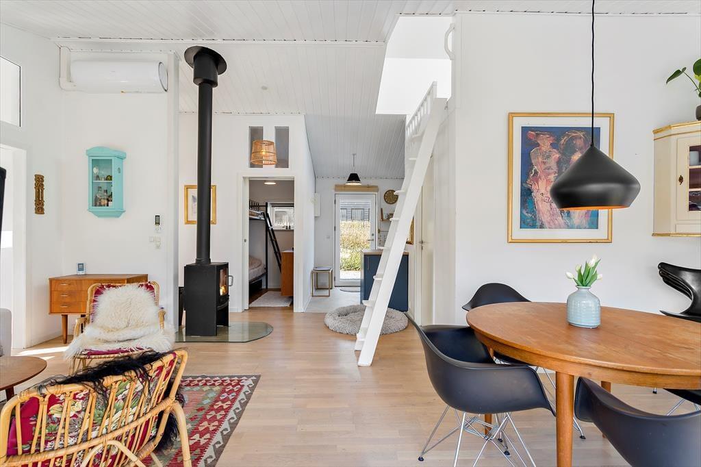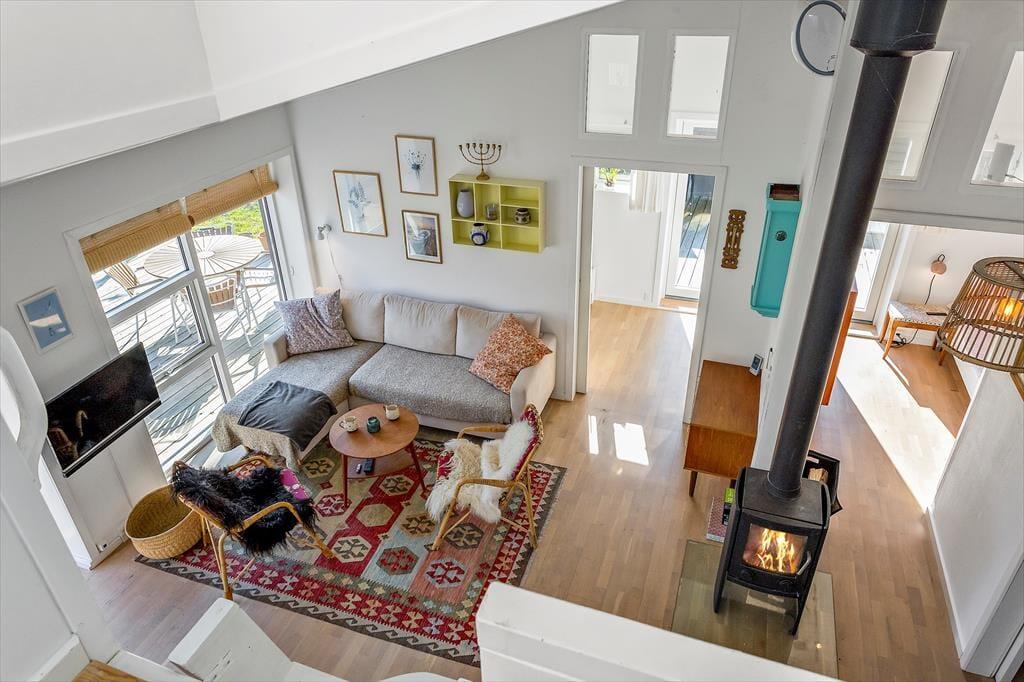Wenn Sie dieses einladende Ferienhaus betreten, werden Sie von einem gemütlichen und geräumigen Wohnzimmer empfangen, das eine warme und entspannende Atmosphäre schafft. Das Wohnzimmer ist mit komfortablen Möbeln und einem Kaminofen eingerichtet, der es ideal macht, kalte Abende mit einem guten Buch oder einem Spiel mit der Familie zu verbringen. Die offene Küche / das Esszimmer macht es einfach, sich zu Mahlzeiten und gemeinsamen Momenten zu versammeln, und es gibt viel Platz sowohl zum Kochen als auch zum Entspannen. Vom Wohnzimmer aus gelangen Sie auf eine schöne Terrasse, auf der Sie die warmen Sonnenstrahlen und die frische Meeresluft genießen können. Auf der Galerie, auf der Matratzen bereitliegen, können Sie die fantastische Aussicht auf das Wasser und die Umgebung genießen. Die drei Schlafzimmer sind komfortabel eingerichtet und bieten Ihnen die Möglichkeit, eine erholsame Nachtruhe zu genießen, damit Sie erfrischt in einen neuen Tag voller Urlaubsabenteuer starten können.