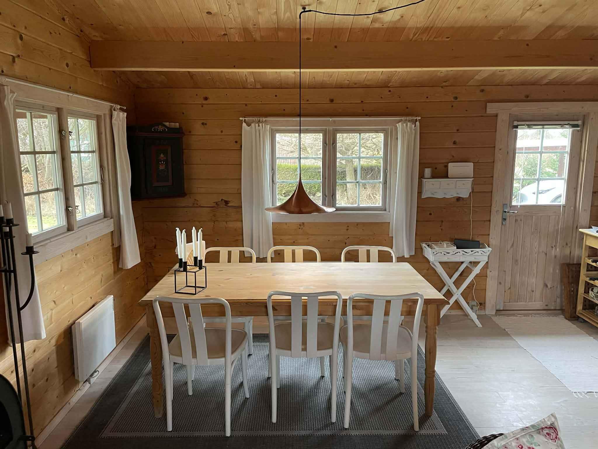 Dieses charmante Blockhaus aus dem Jahr 2002 bietet 75 m² Wohnfläche mit drei Schlafzimmern und insgesamt sechs Schlafplätzen. Es verfügt über ein Badezimmer mit Sauna sowie einen hellen Wohn- und Küchenbereich in offener Verbindung. Eine neue Küche wird installiert. Vom Wohnzimmer aus gelangt man direkt auf die Veranda, wo Ruhe und Natur genossen werden können. Das Haus liegt ruhig am Ende einer Sackgasse auf einem stillen Grundstück. Nur 300 Meter entfernt befindet sich der Ulvshale Strand, ideal zum Baden, für Spaziergänge am Wasser und erholsame Stunden. Die Umgebung von Ulvshale ist bekannt für ihre besondere Natur mit offenen Landschaften, Wäldern und Küstenabschnitten und eignet sich hervorragend zum Wandern und Radfahren. In kurzer Entfernung liegt Stege, eine gemütliche Stadt mit Cafés, Spezialgeschäften und lebendiger Atmosphäre – eine perfekte Kombination aus Natur und Inselleben auf Møn. Achtung: Wird nicht für gewerbliche Nutzung vermietet.