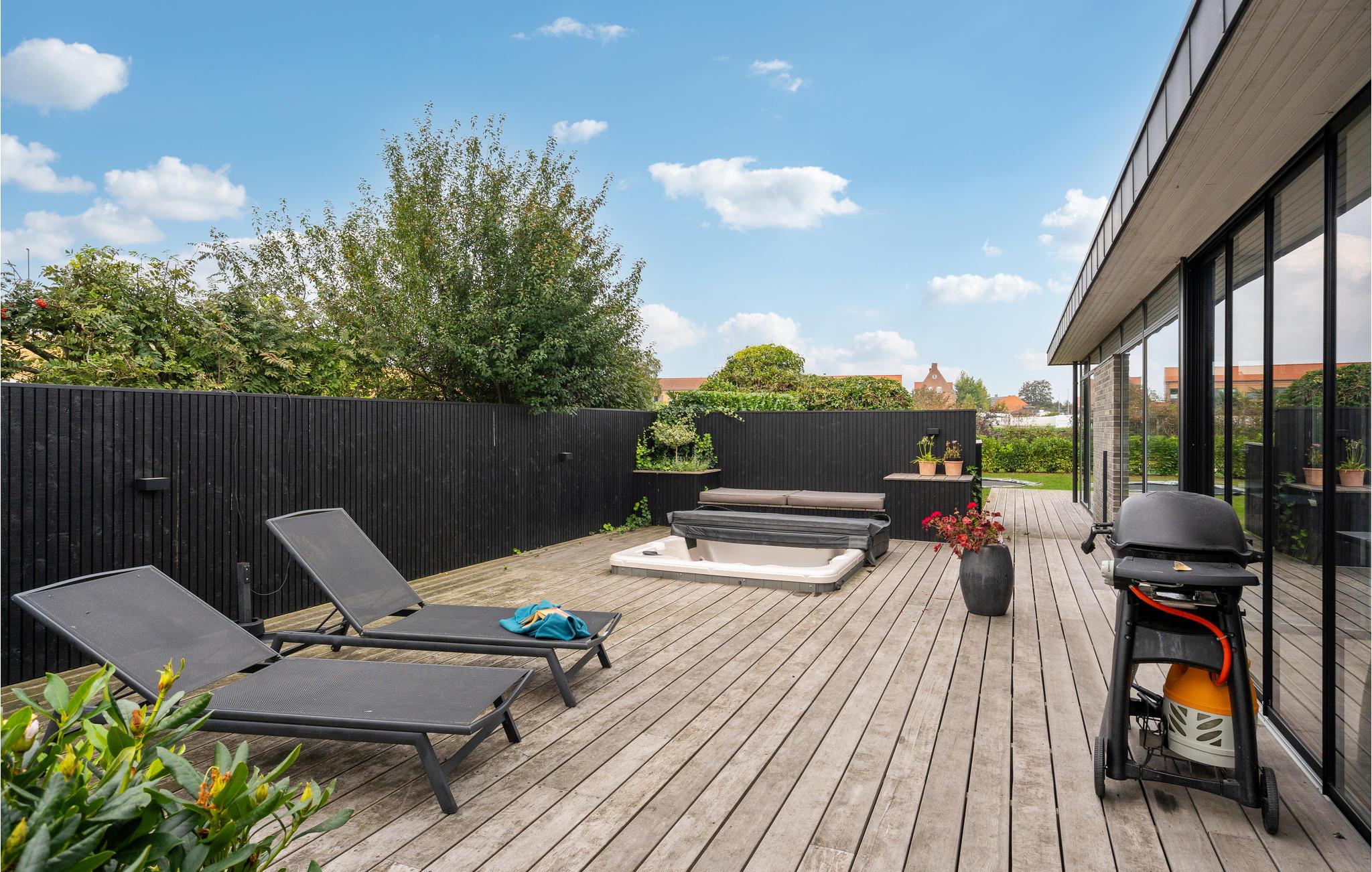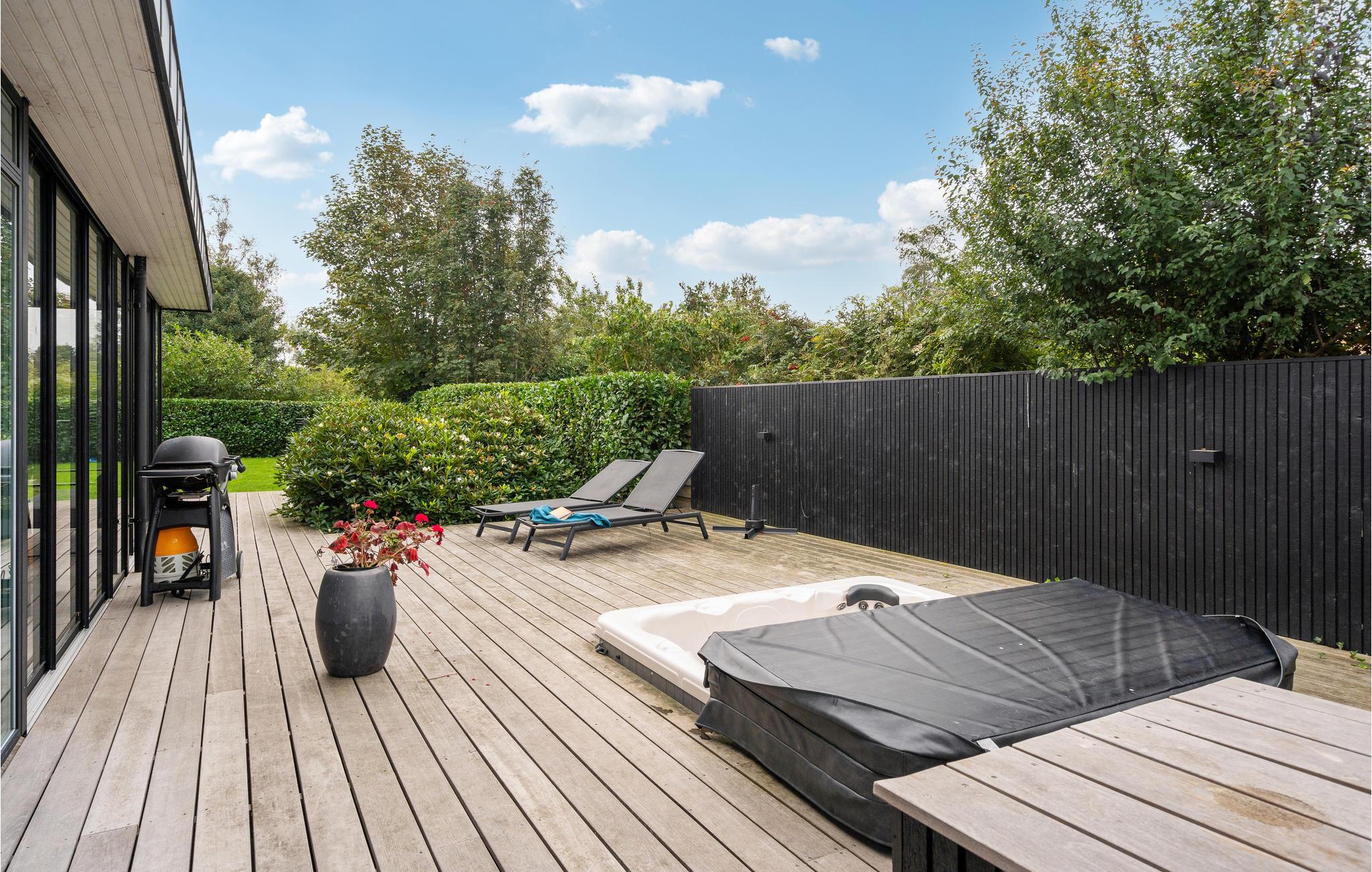 Modernes Ferienhaus in Juelsminde mit Whirlpool, Spielzimmer und großer Terrasse für entspannte Familienurlaube.