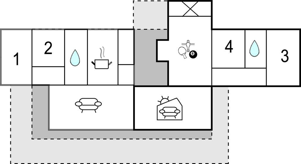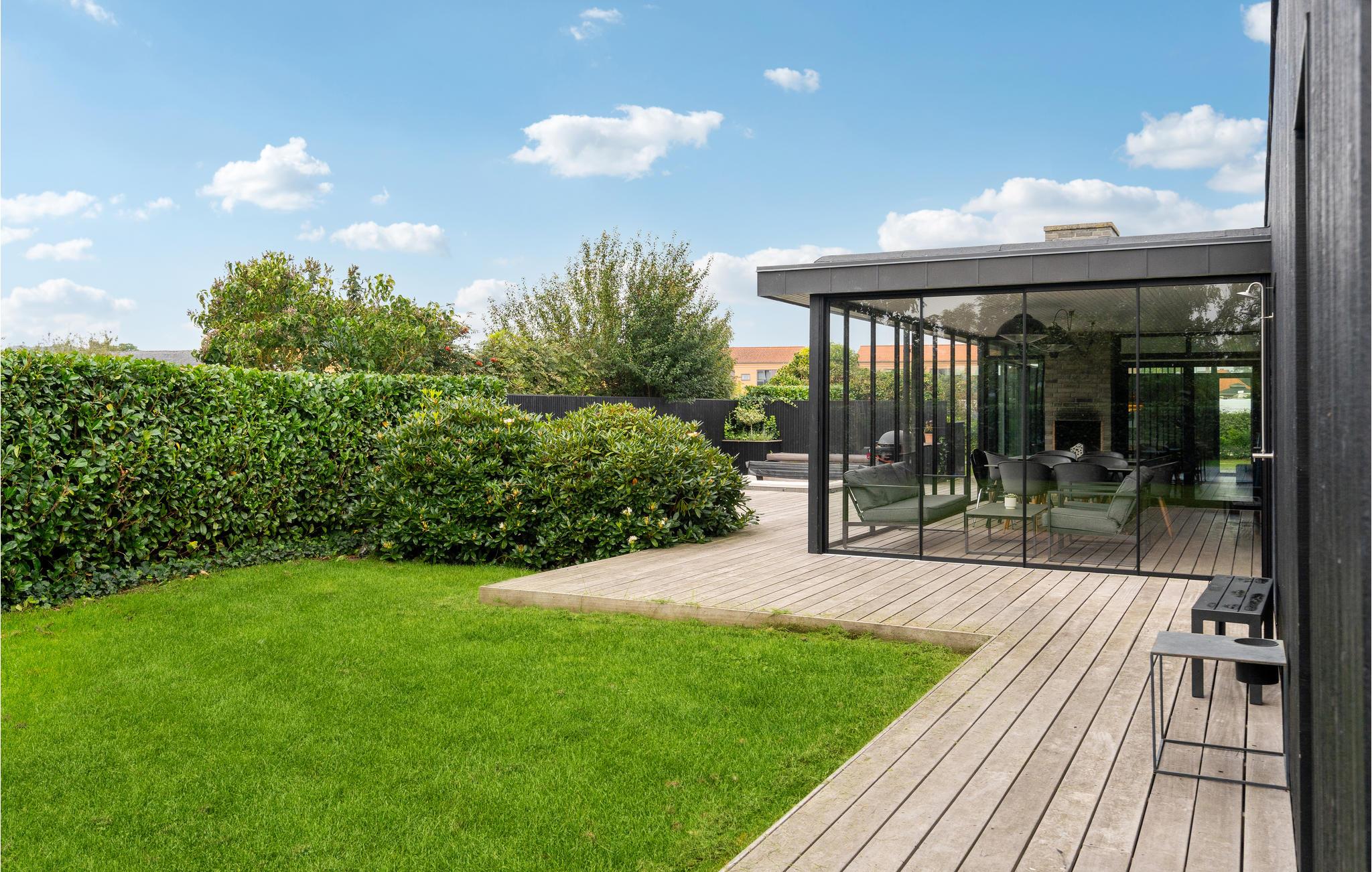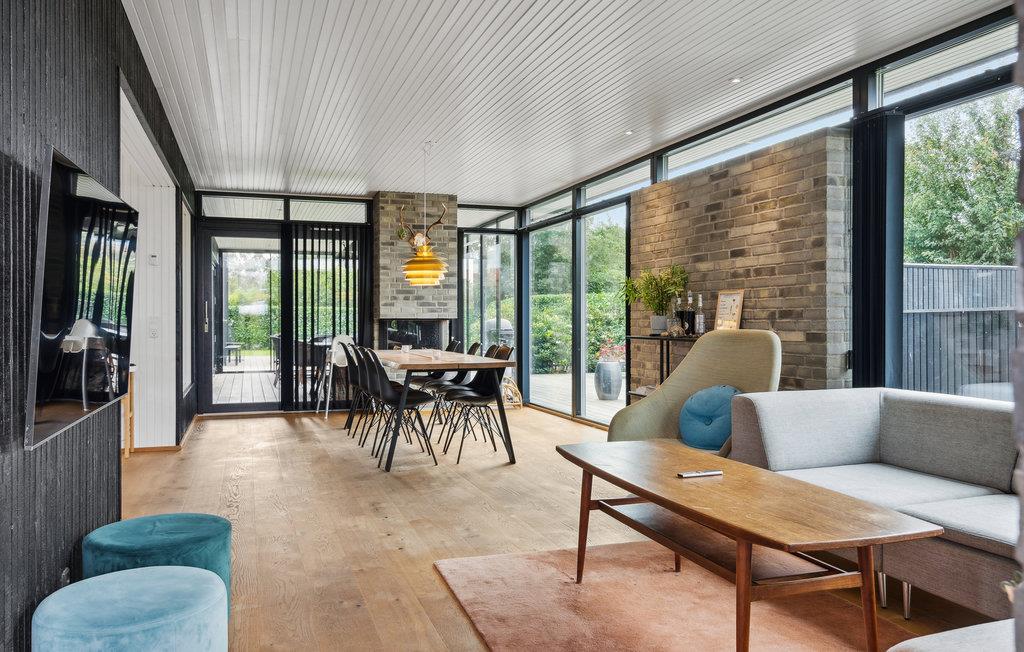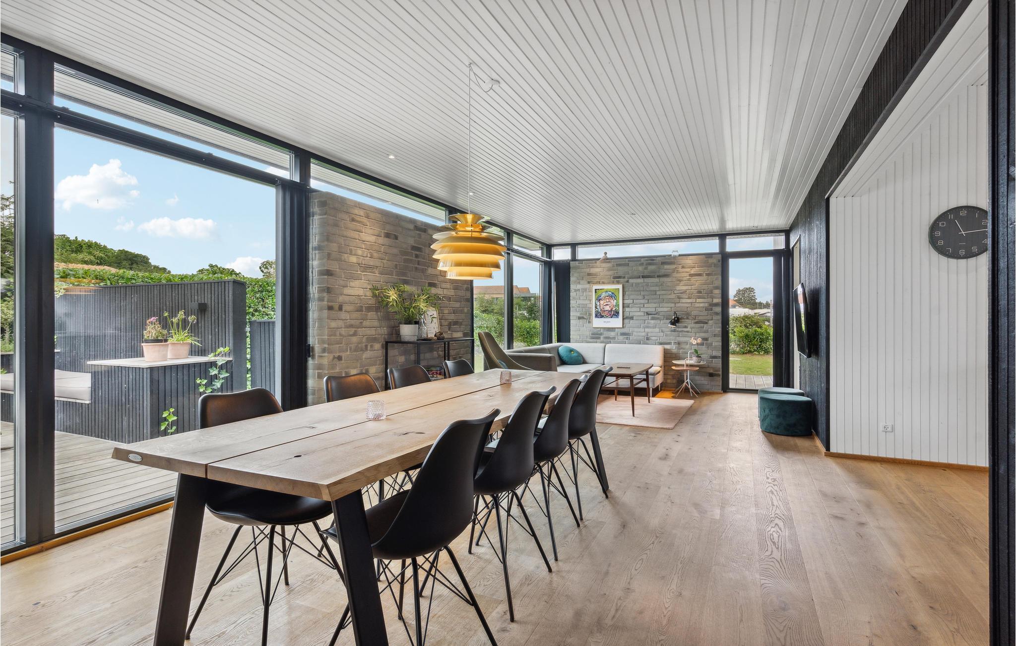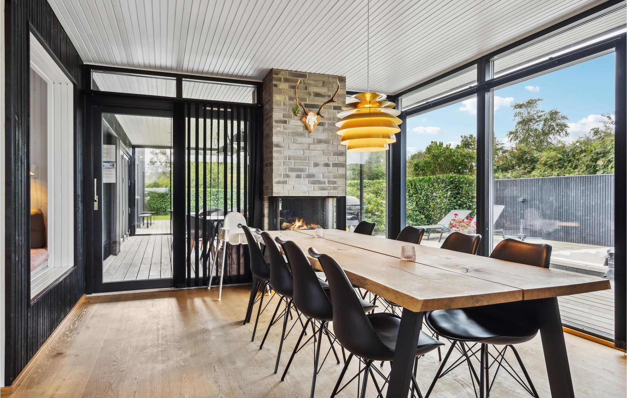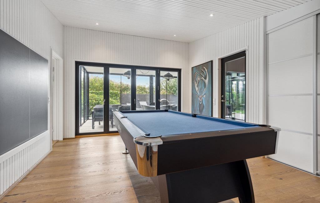 Das durchdacht gestaltete Ferienhaus empfängt Sie mit hochwertiger Einrichtung und einer behaglichen Atmosphäre. Das großzügige und lichtdurchfluetet Wohn- und Esszimmer lädt Sie zu entspannten Stunden ein, während das Spielzimmer mit Billard für Unterhaltung sorgt. Die gut ausgestattete Küche bietet Ihnen alles, was Sie für gemeinsame Mahlzeiten brauchen. Besonders praktisch: Die Außenküche, in der Sie frisch gefangene Fische aus dem nahen Angelsee oder dem Meer zubereiten können. Mehrere gemütliche Schlafzimmer, darunter ein Kinderzimmer für vier mit zwei Stockbetten, bieten Platz für die ganze Familie. Die Unterkunft besteht aus zwei stilvollen Gebäudeeinheiten, die durch eine überdachte Terrasse verbunden sind. Genießen Sie die Sonne und schauen Ihren Kindern beim Spielen und Trampolinspringen im Garten zu.