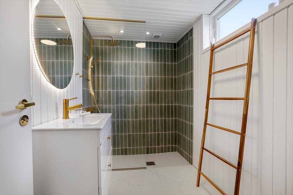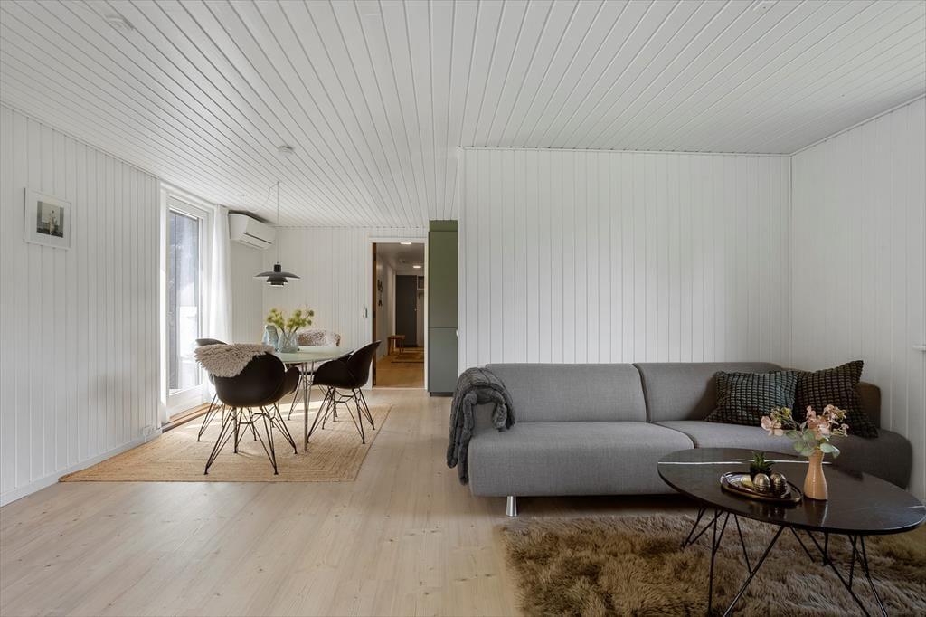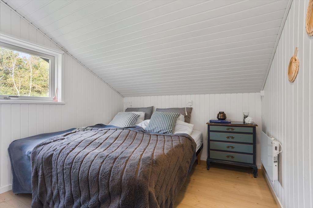 Wenn du dieses wunderbare Ferienhaus betrittst, wirst du sofort von einer hellen und einladenden Atmosphäre empfangen. Das Haus wurde mit viel Liebe zum klassischen Ferienhausleben renoviert. Helle Oberflächen, große Fenster und freundliche Farben schaffen ein Gefühl von Luftigkeit, Weite und Nähe zur Natur. Im offenen Wohnzimmer erwartet dich eine gemütliche Sofaecke, in der du dich mit einer Decke und einem guten Buch einkuscheln kannst, während der Kaminofen leise knistert und den Raum wohlig erwärmt. Die Küche ist offen in den Wohnraum integriert, sodass die ganze Familie zusammen sein kann – auch beim Kochen. Am Esstisch ist reichlich Platz für lange Mahlzeiten und gute Gespräche. Die Schlafplätze verteilen sich auf einladende Schlafzimmer, die zum Entspannen und Ausschlafen nach einem erlebnisreichen Urlaubstag einladen. Das Badezimmer ist funktional und schlicht eingerichtet – mit allem, was ihr im Alltag benötigt.