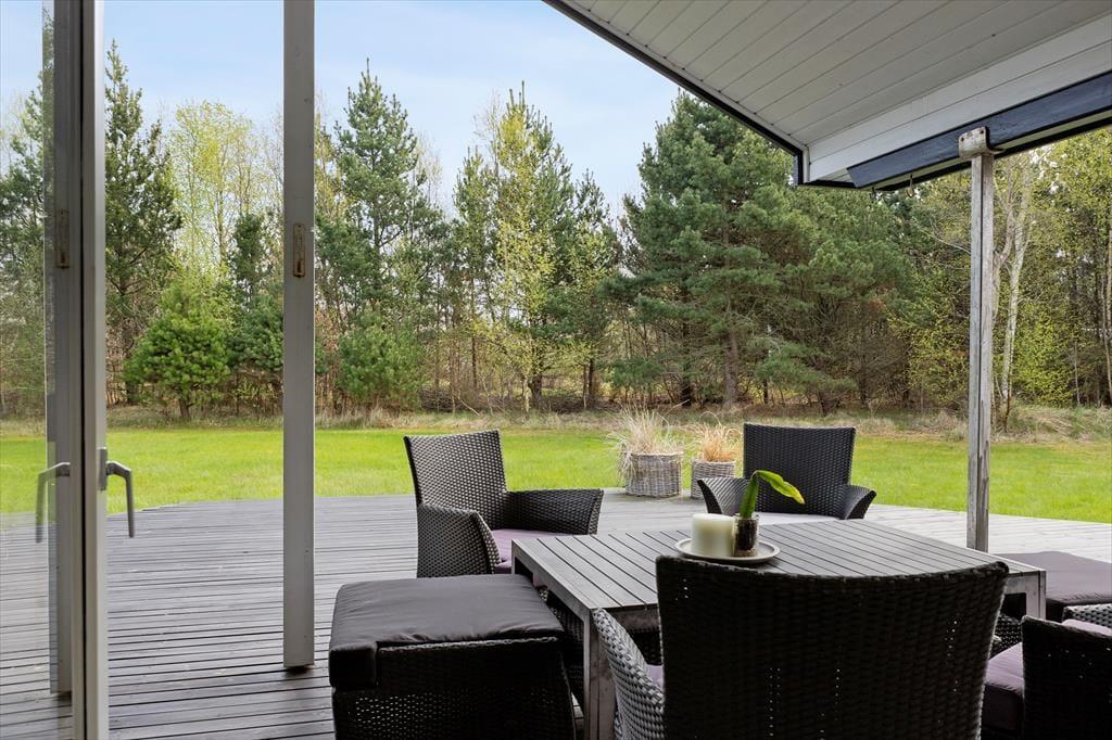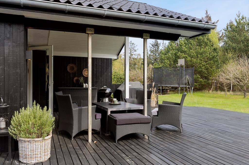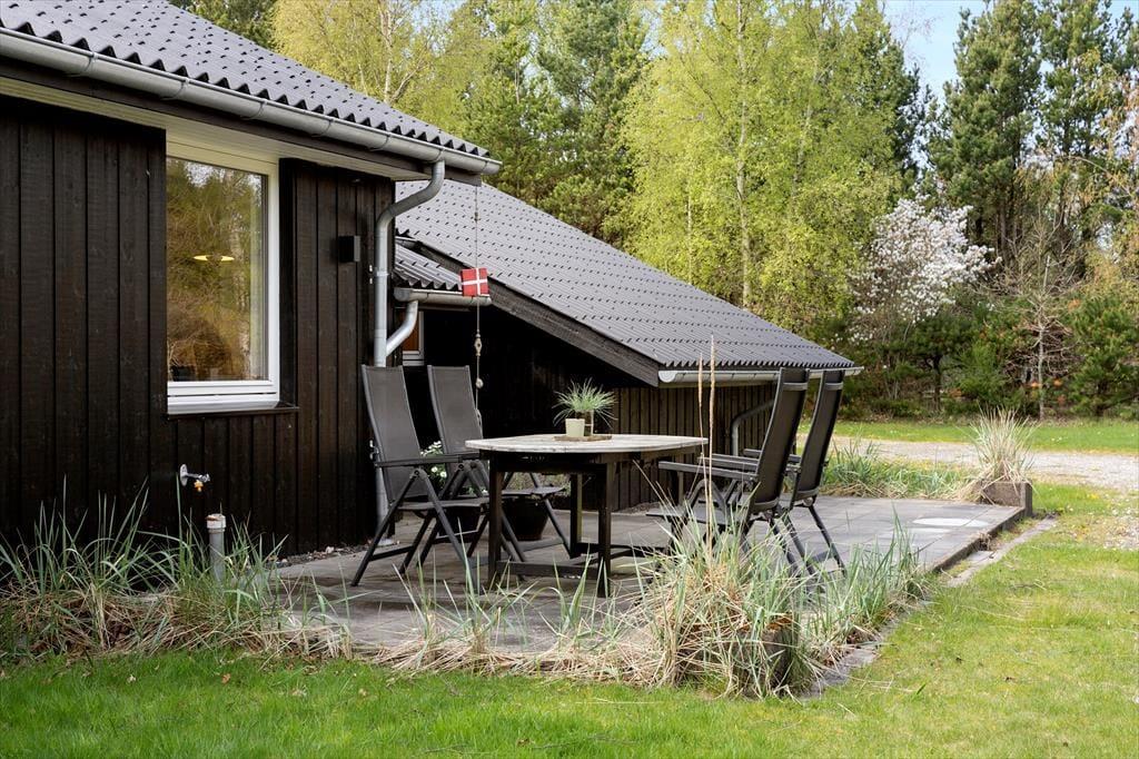 Auf dem großen, abgeschirmten Naturgrundstück kannst du deinen Urlaub in vollen Zügen genießen. Hier ist genug Platz und Ruhe, um tief durchzuatmen und die Urlaubsstimmung aufkommen zu lassen. Die Terrasse zieht sich rund ums Haus, sodass du zu jeder Tageszeit einen Sonnen- oder Schattenplatz findest. Auf dem gepflegten Rasen ist reichlich Platz zum Spielen und Ballspielen. Und wenn die Dunkelheit hereinbricht, könnt ihr euch an der gemütlichen Feuerstelle versammeln – mit Stockbrot, warmen Decken und dem Sternenhimmel über euch. Für die Kinder – und alle, die gerne draußen schlafen – gibt es im Garten auch ein Shelter, in dem ihr unter freiem Himmel übernachten und den Geräuschen des Waldes und der Küste lauschen könnt. Mit anderen Worten: Hier erwartet euch nicht nur ein Ferienhaus, sondern eine kleine Ferienoase inmitten der Natur.