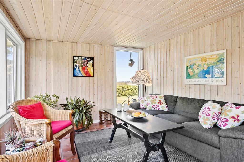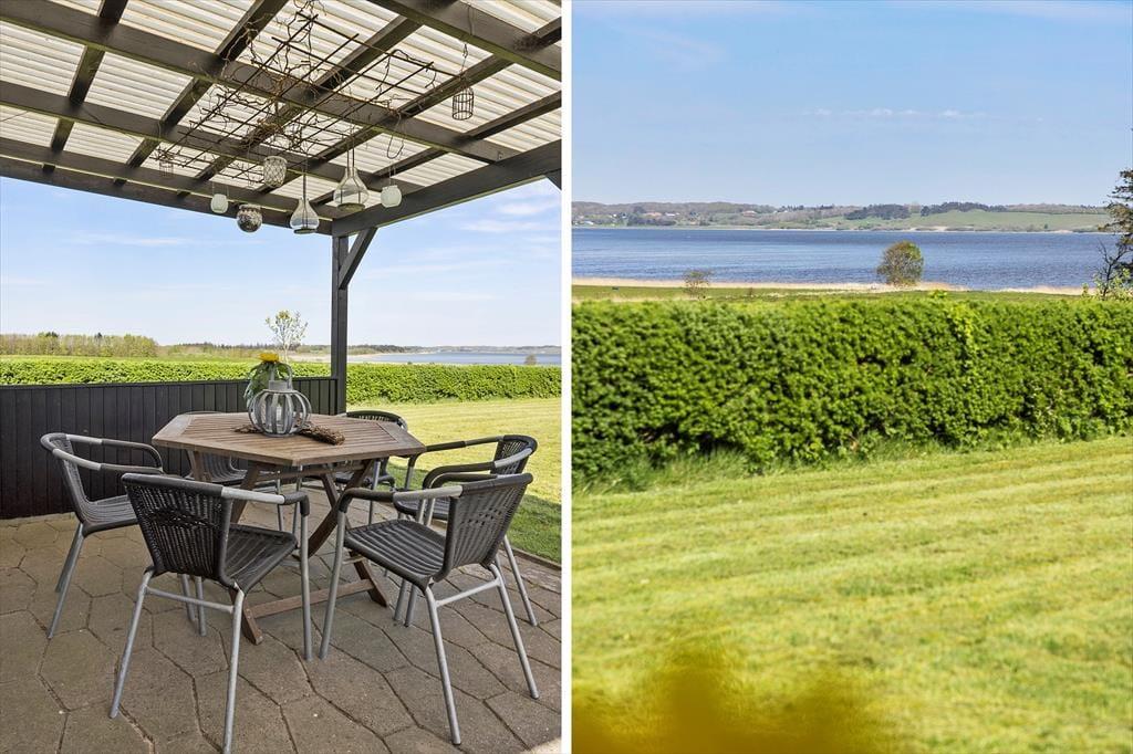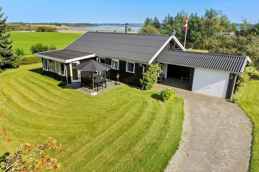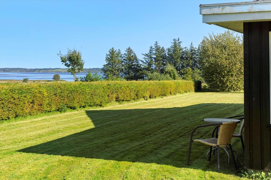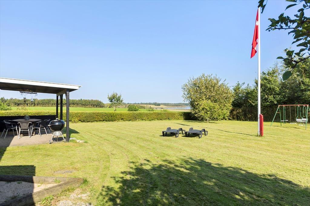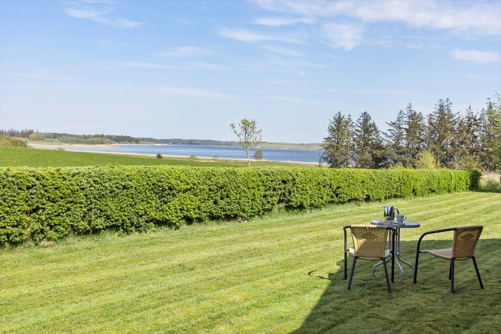 Das 1399 m² große Grundstück liegt am nördlichen Ende der Ferienhaussiedlung. Wenn du also über die Hecke blickst, kannst du die offenen Felder und die schöne Küstenlinie sehen, die sich am Hjarbæk Fjord entlang schlängelt. Die überdachte Terrasse ist ein großartiger Ort, um die Aussicht auf den Fjord zu genießen, aber du kannst dich auch in einen Liegestuhl oder direkt auf den Rasen setzen - es ist toll, den Blick auf die vorbeiziehenden Wolken schweifen zu lassen, während die Vögel zwitschern oder eine Biene in der Nähe summt. Auf dem Rasen haben du und deine Familie viel Platz zum Spielen und für andere Aktivitäten im Freien, oder ihr könnt Abenteuer in der Umgebung erleben.