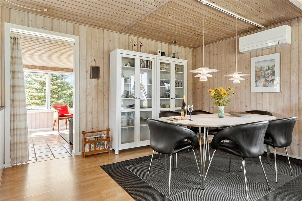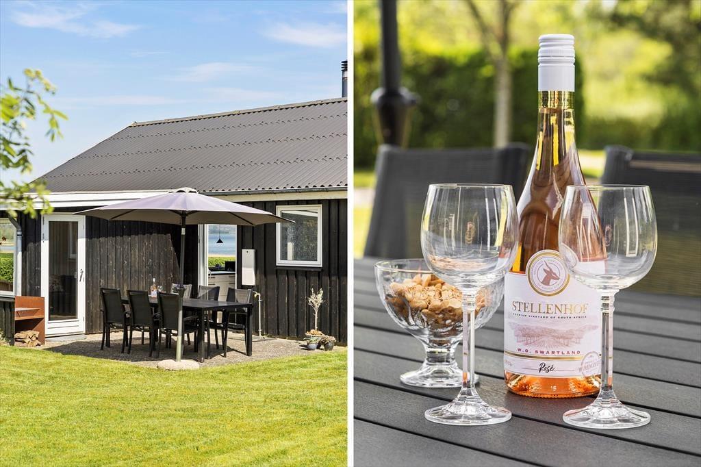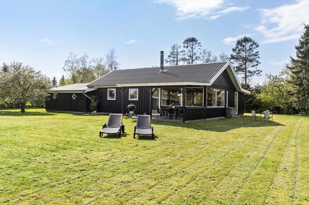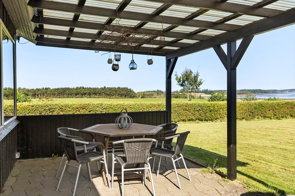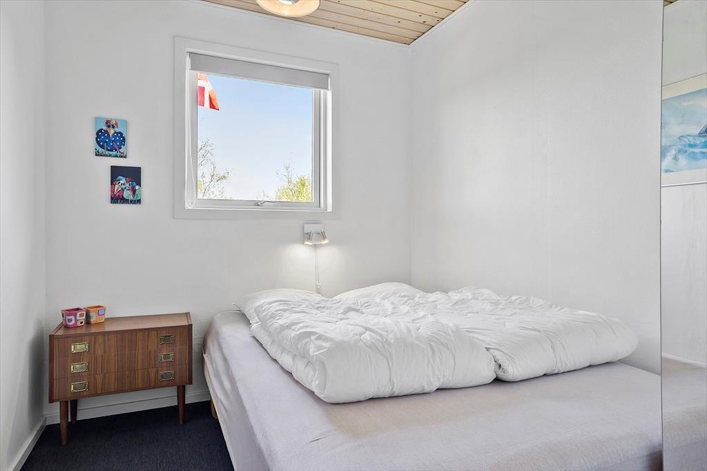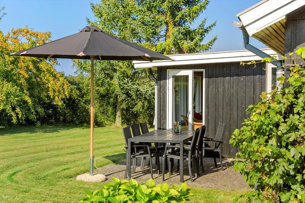 Das 1399 m² große Grundstück liegt am nördlichen Ende der Ferienhaussiedlung. Wenn du also über die Hecke blickst, kannst du die offenen Felder und die schöne Küstenlinie sehen, die sich am Hjarbæk Fjord entlang schlängelt. Die überdachte Terrasse ist ein großartiger Ort, um die Aussicht auf den Fjord zu genießen, aber du kannst dich auch in einen Liegestuhl oder direkt auf den Rasen setzen - es ist toll, den Blick auf die vorbeiziehenden Wolken schweifen zu lassen, während die Vögel zwitschern oder eine Biene in der Nähe summt. Auf dem Rasen haben du und deine Familie viel Platz zum Spielen und für andere Aktivitäten im Freien, oder ihr könnt Abenteuer in der Umgebung erleben.